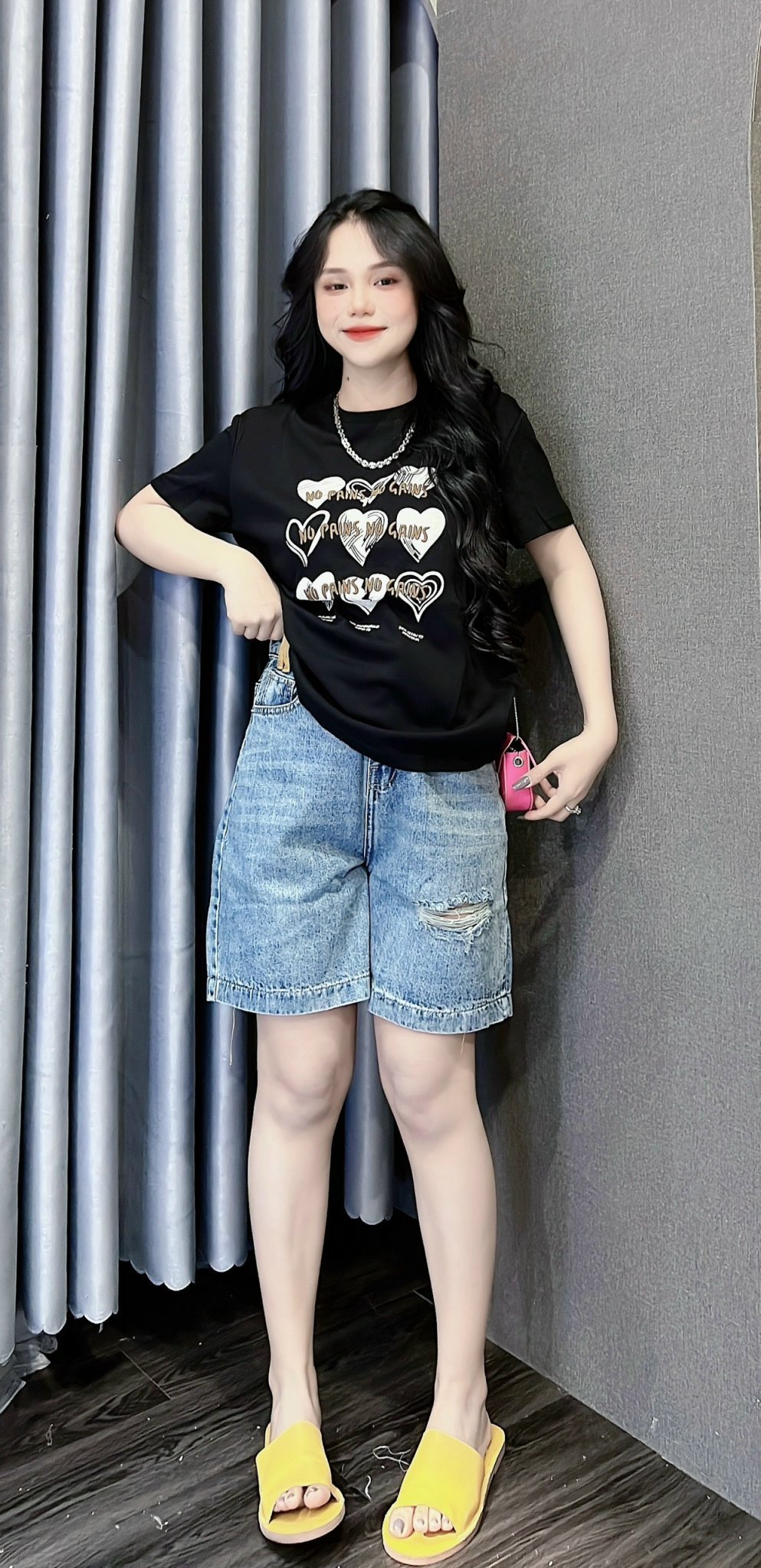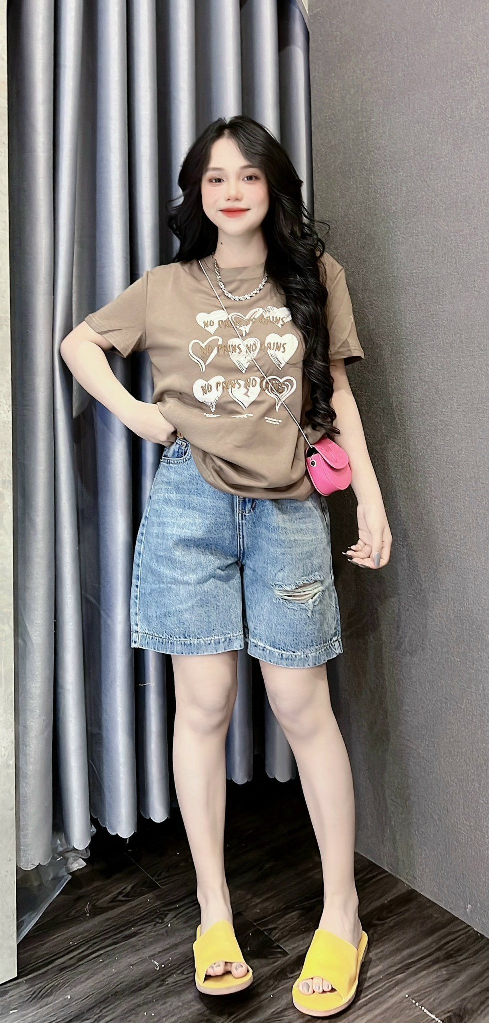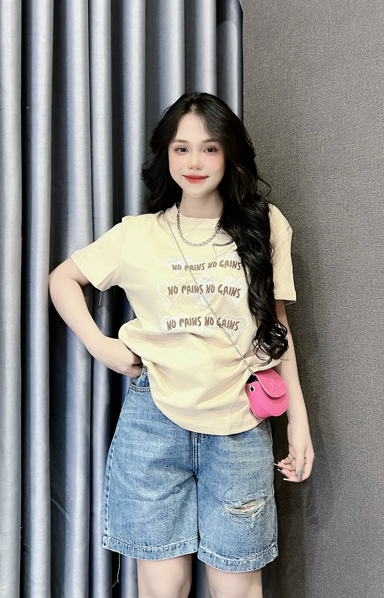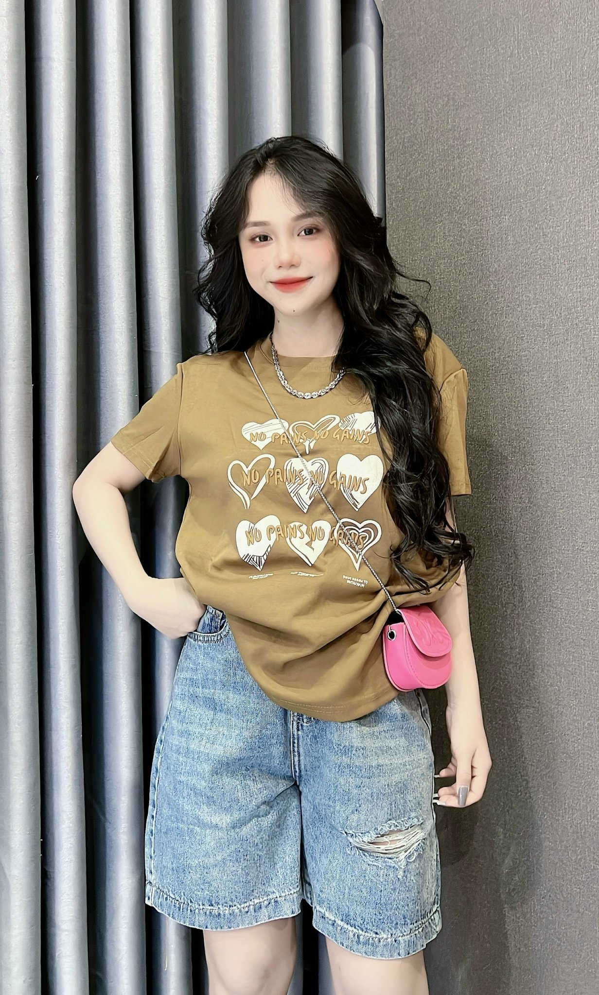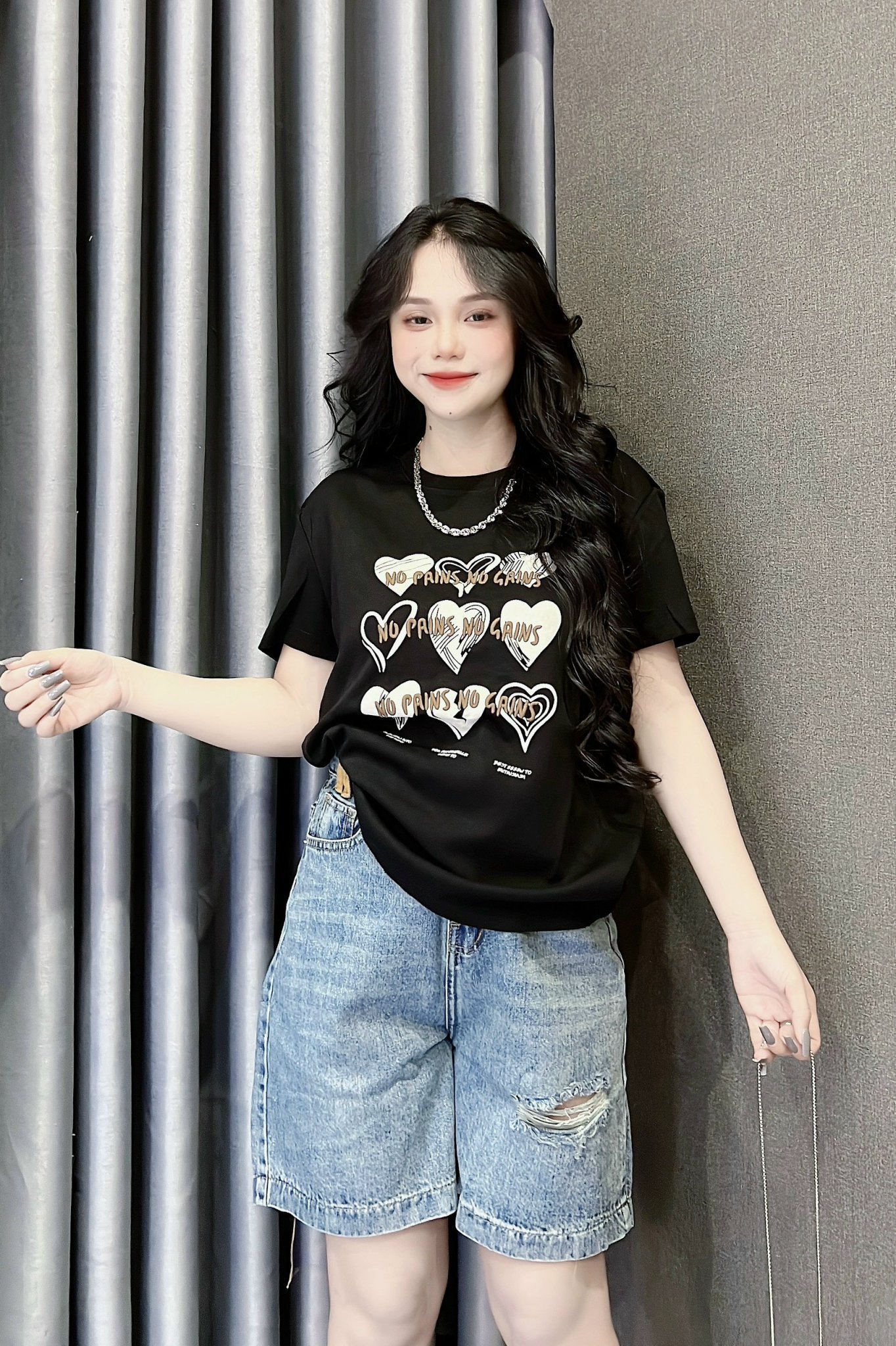 Kho sỉ áo Thun Nữ Cổ Tròn In Nhiều Hình Trái Tim Với Chữ form vừa size M(40-60kg)