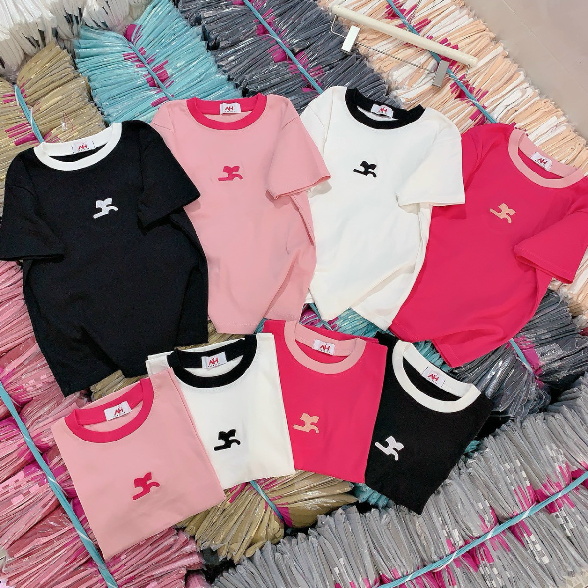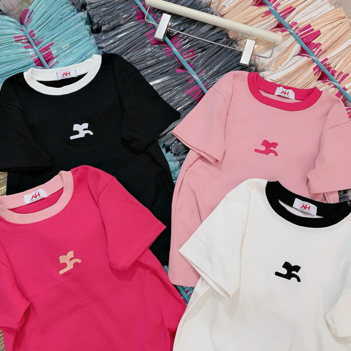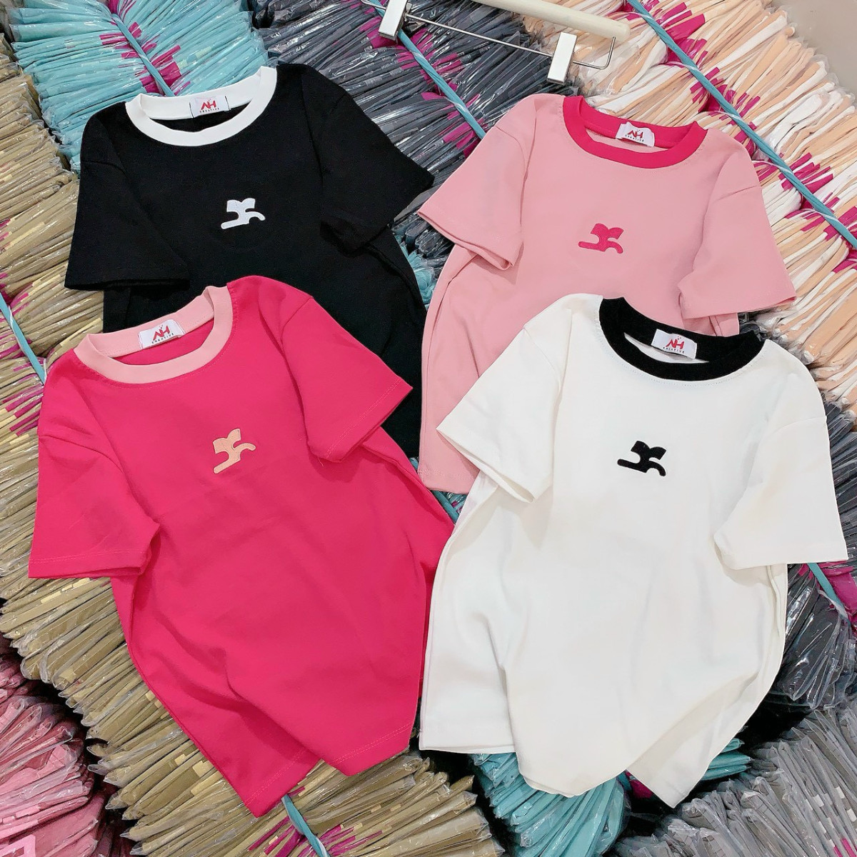 Kho sỉ áo thun nữ thuê logo trước ngực Baby Tee ôm body từ 35kg – 55kg