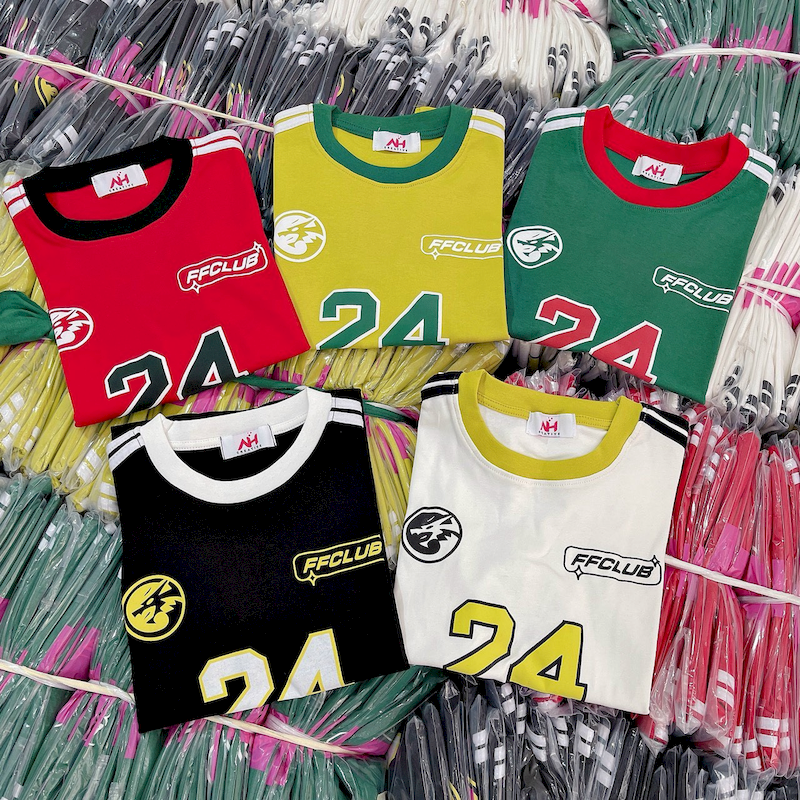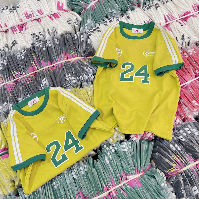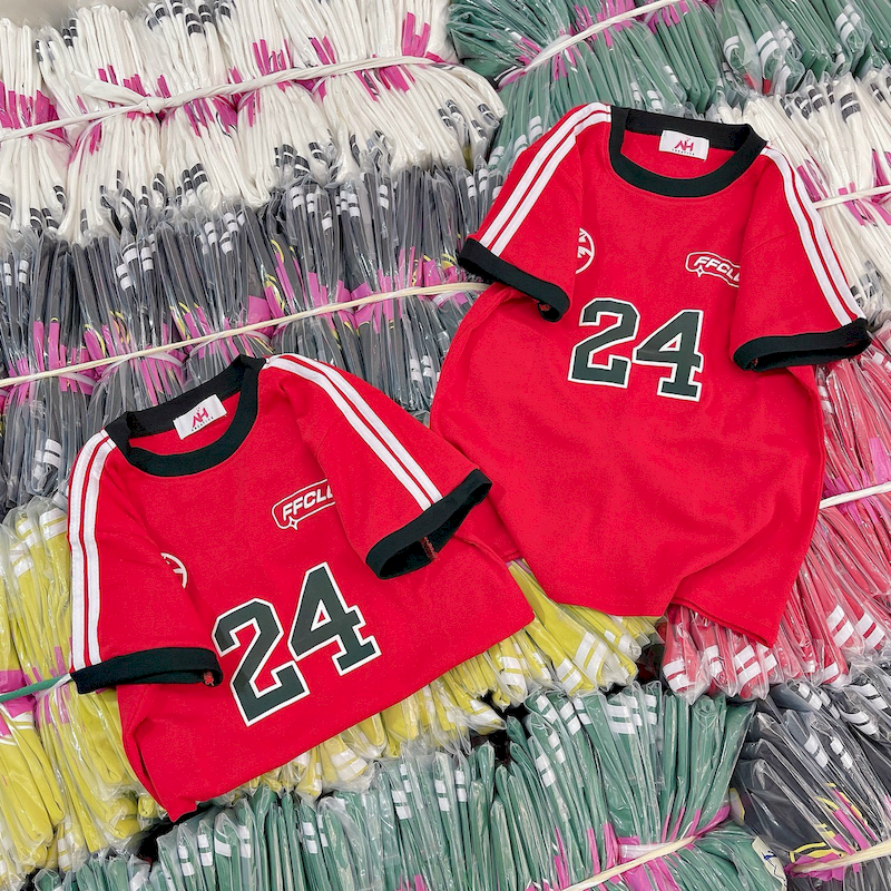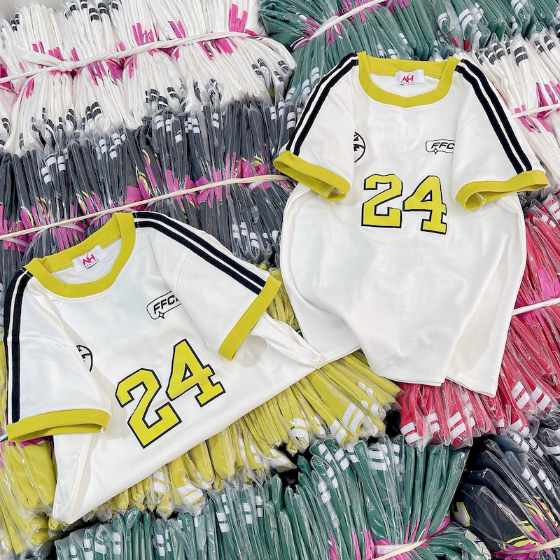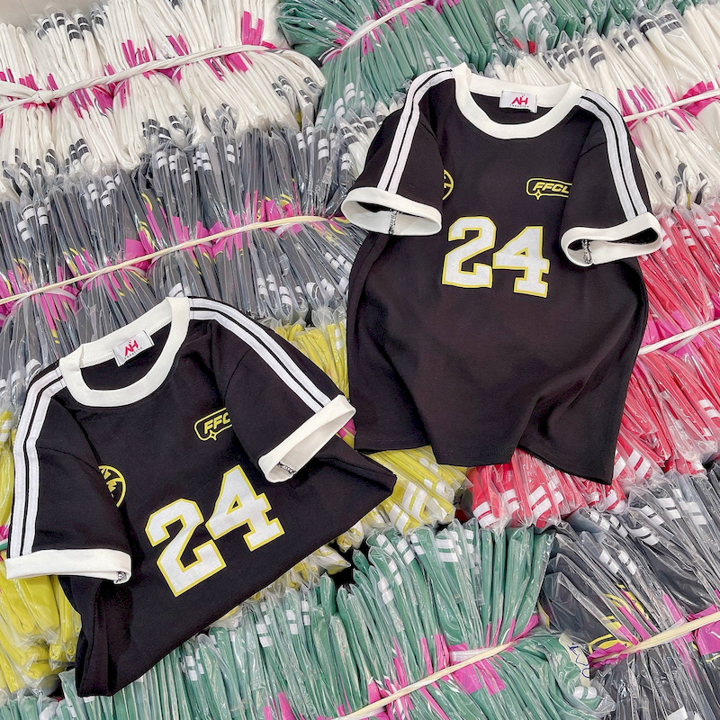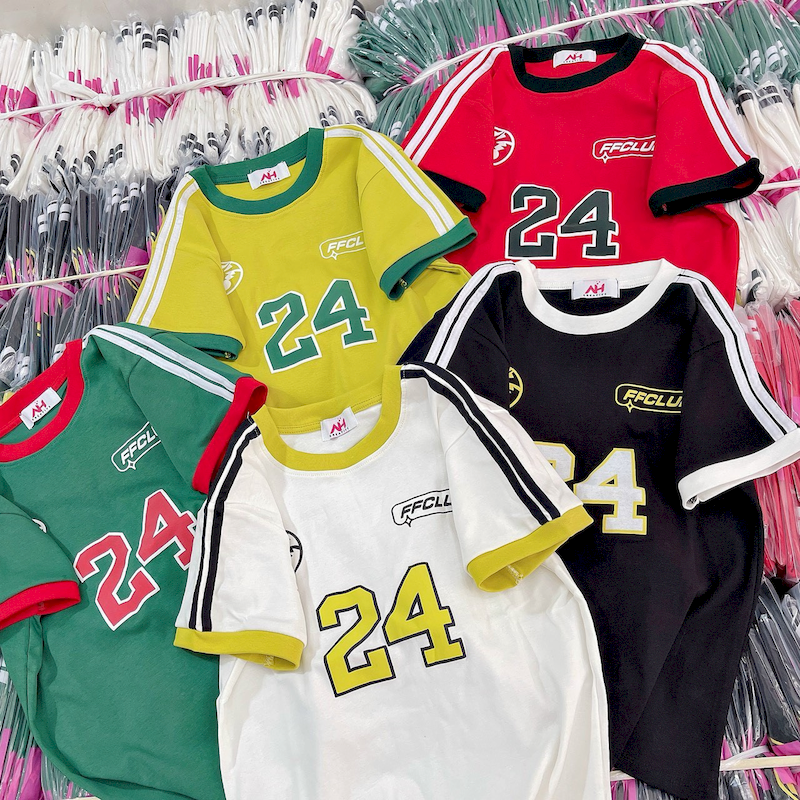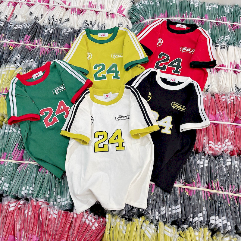 Kho sỉ áo Thun Nữ Trơn Cổ Tròn Baby Tee Tay Viền Sọc In Số 24 Mạc AH787
