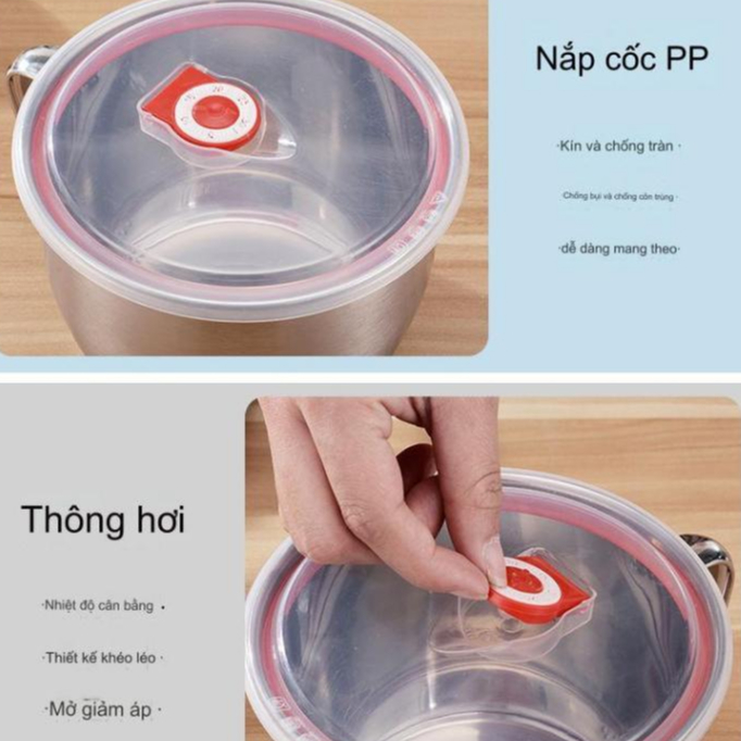 + Chất liệu nắp: Nhựa PP chuyên dùng trong thực phẩm, có viền giữ nhiệt, chịu nhiệt âm 30 độ c đến 130 độ c