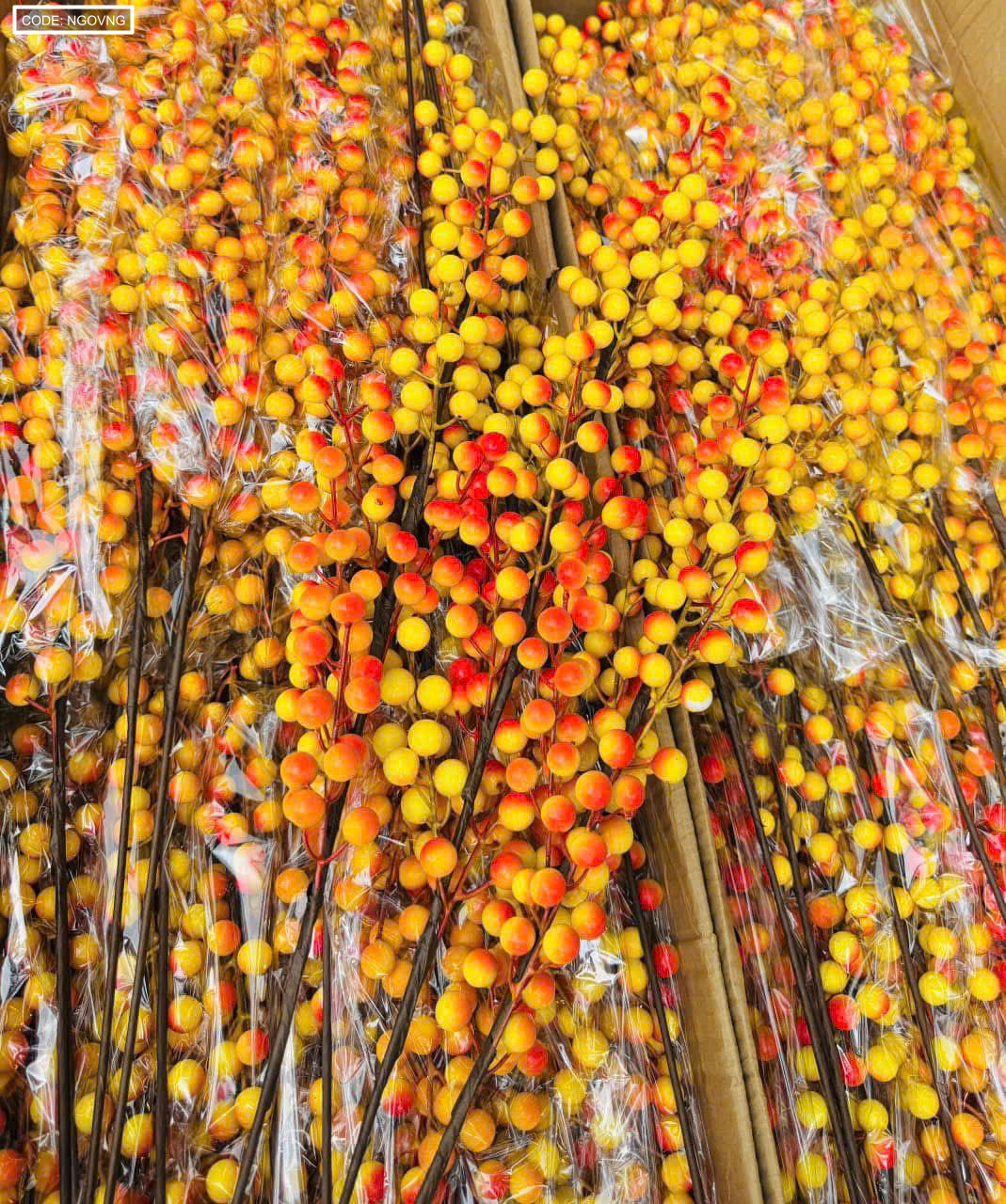 Kho sỉ cành Đông Đào 12 Nhánh Trái Mọng Vàng Dài 90cm