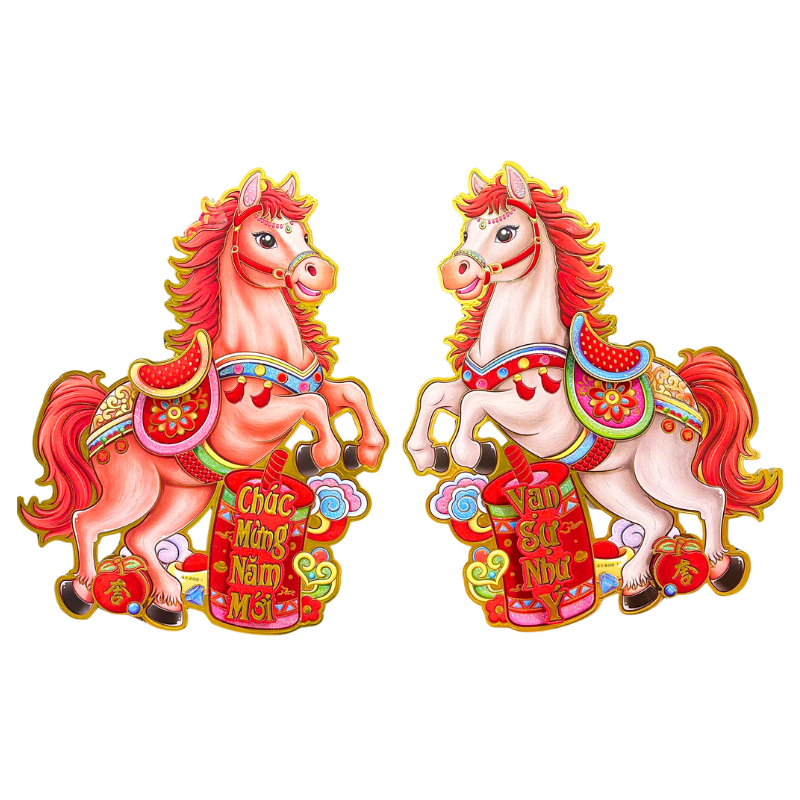 🎊 CẶP TRANH DÁN CỬA HÌNH NGỰA – TRANG TRÍ TẾT 2026 🎊