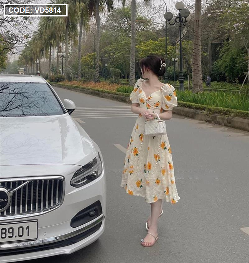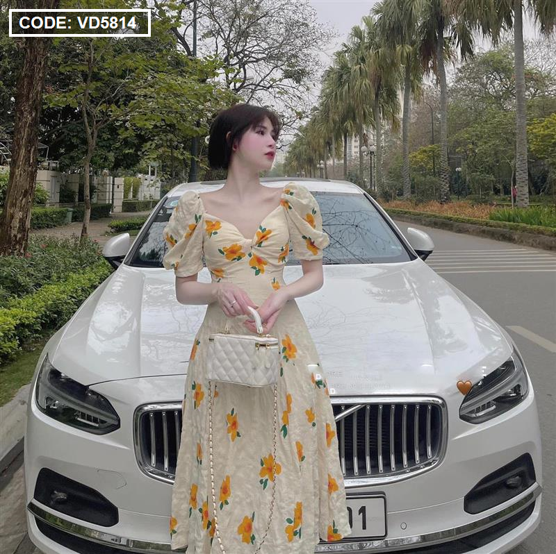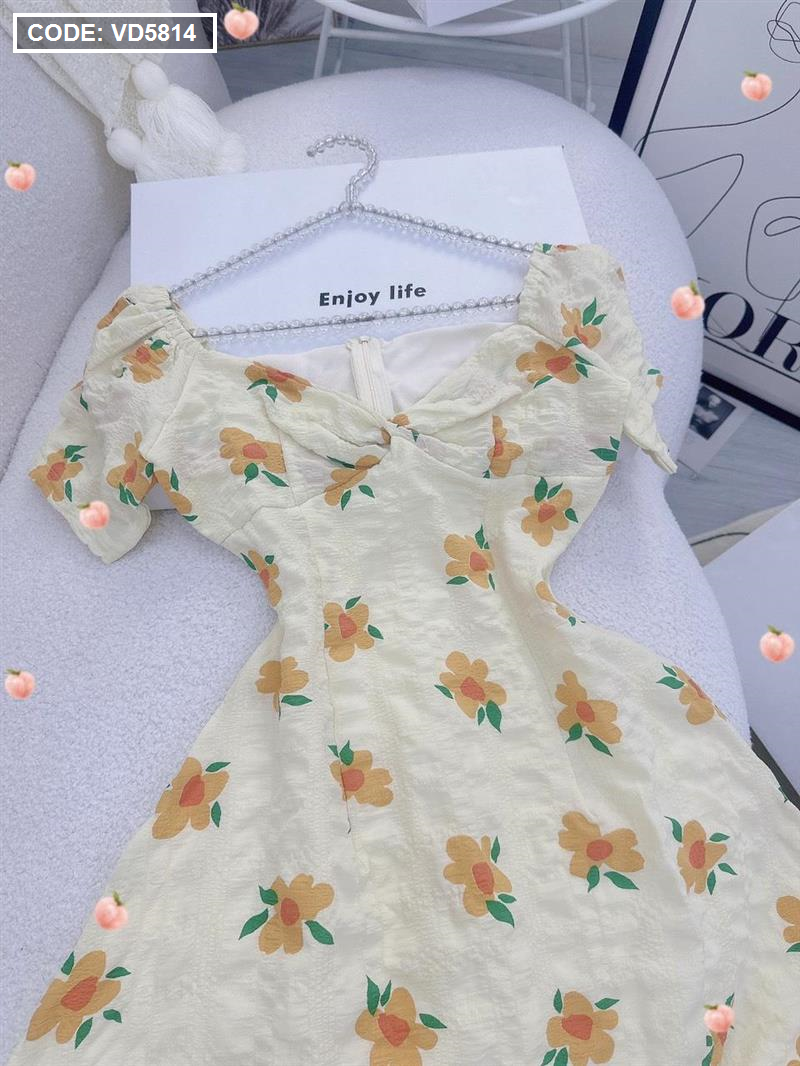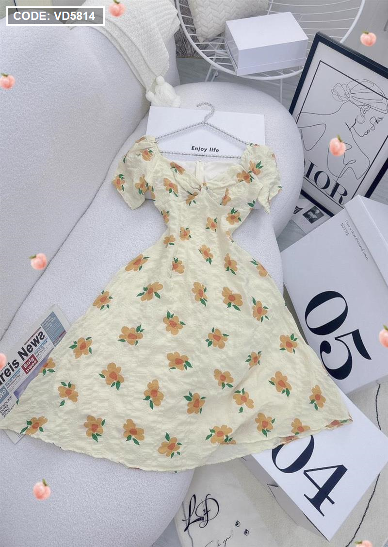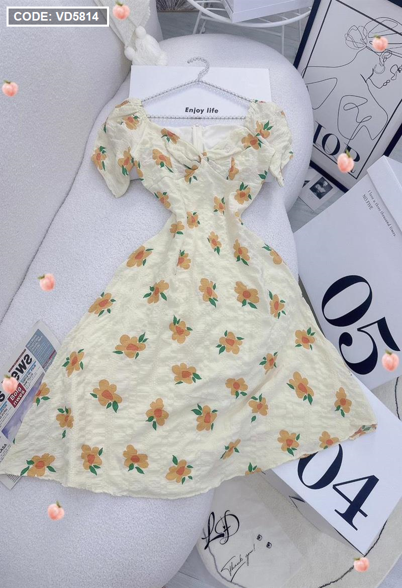 Kho sỉ đầm hoa xốp vàng xoắn ngực