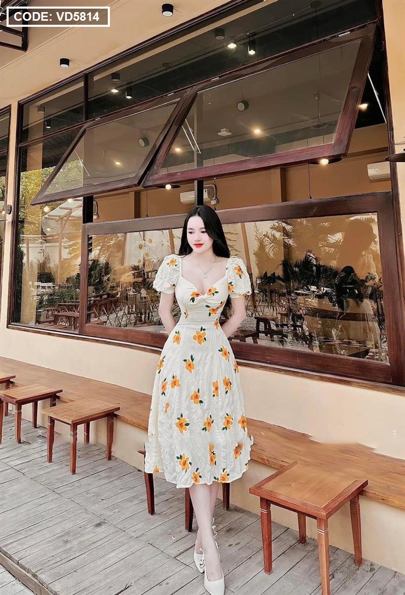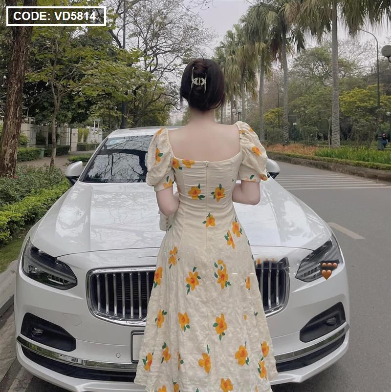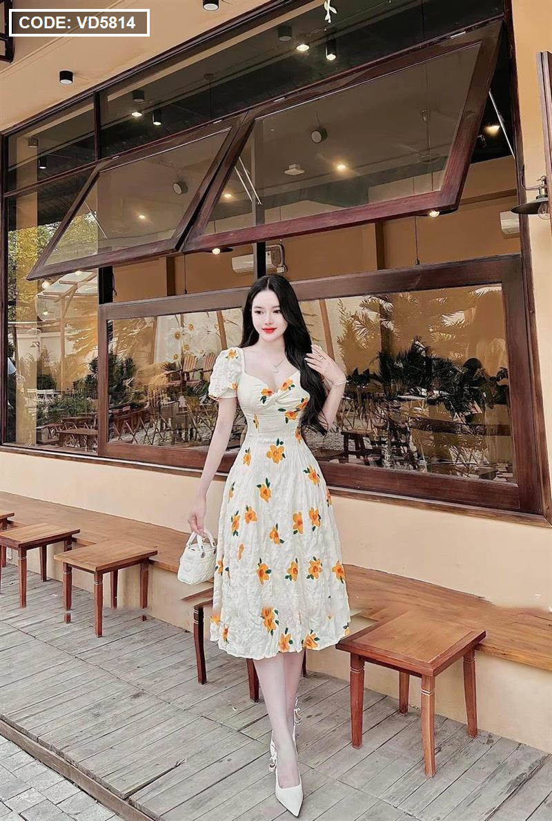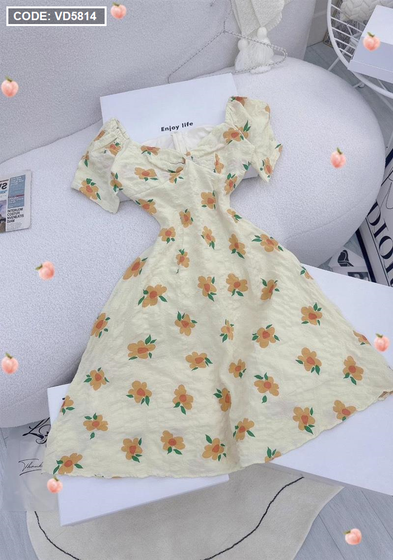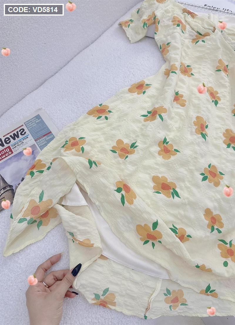 Kho sỉ đầm hoa xốp vàng xoắn ngực