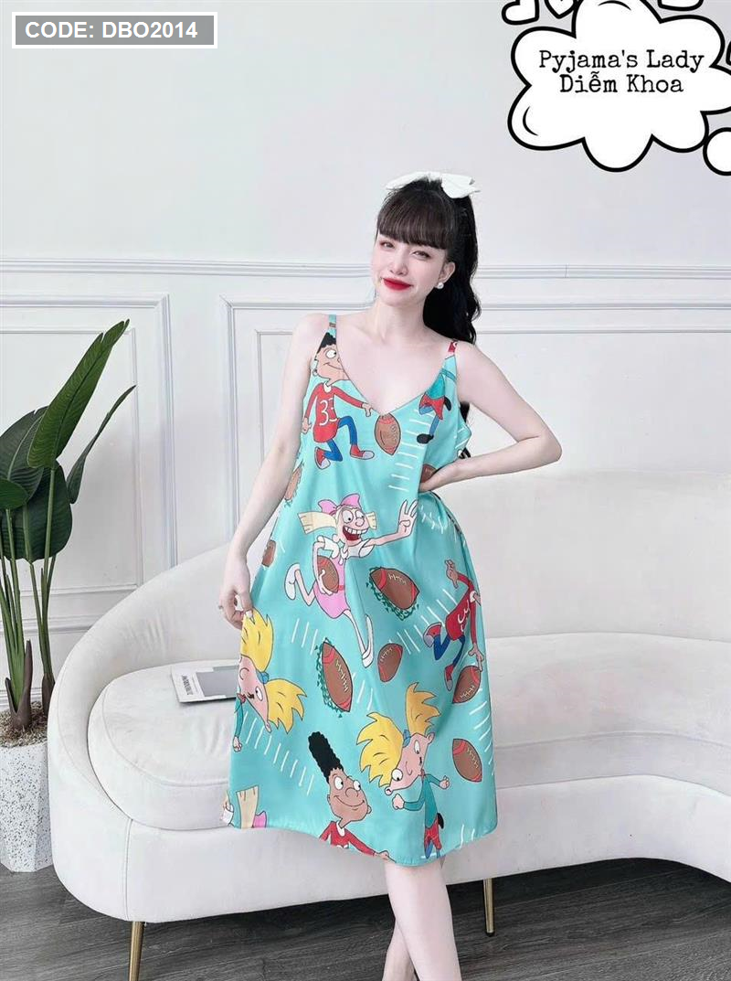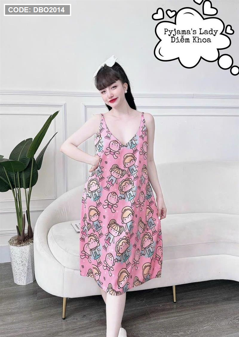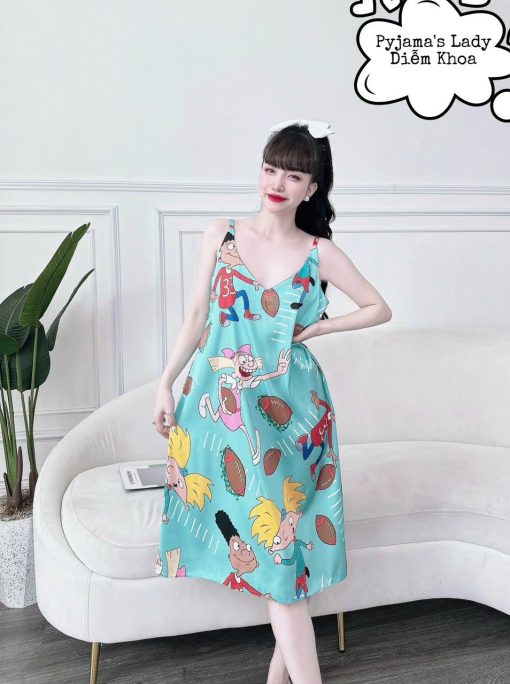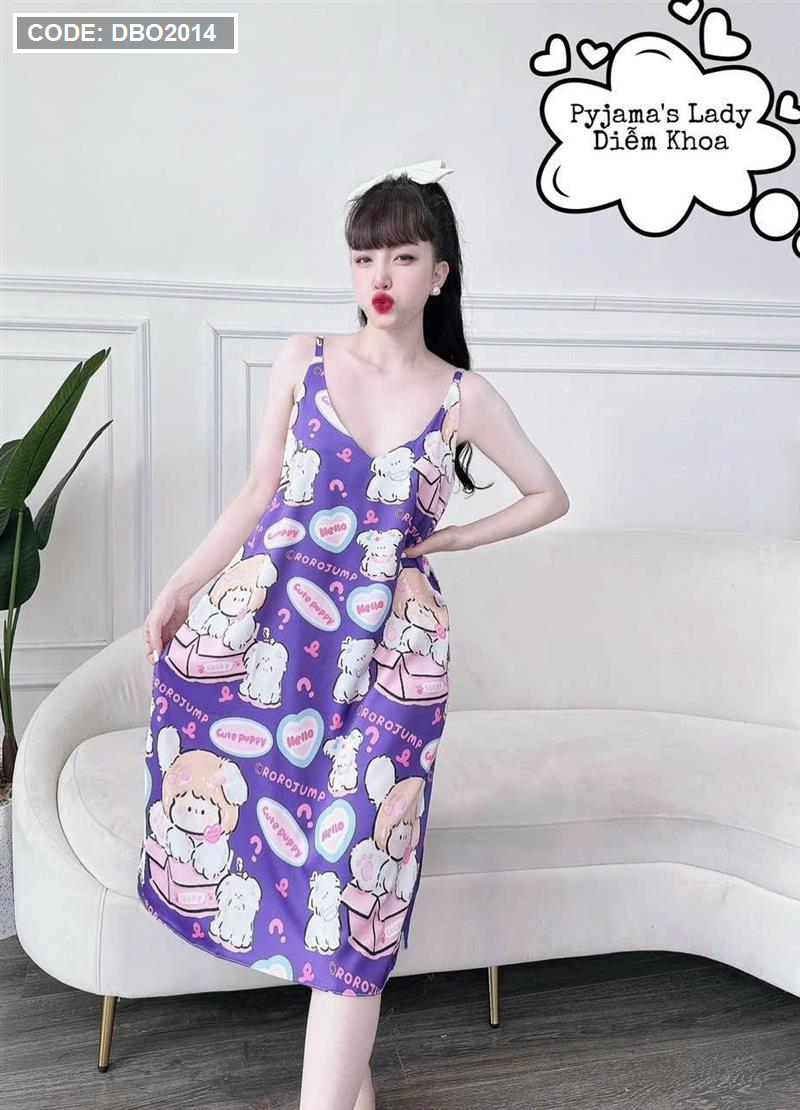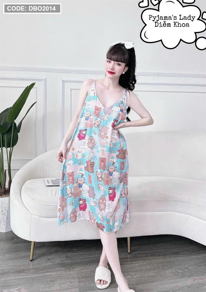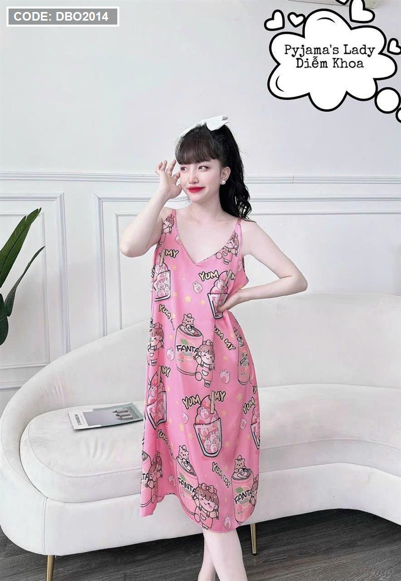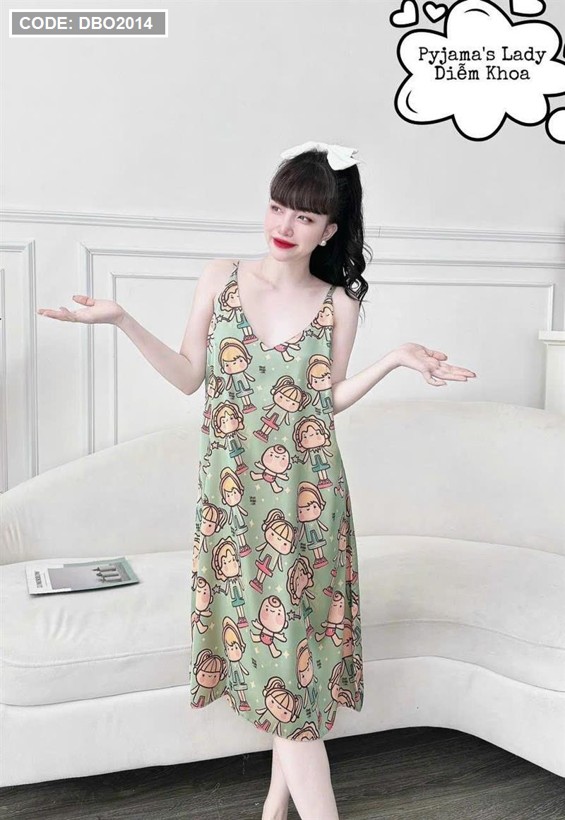 Đầm nữ áo 2 dây pijma mặc nhà siêu mát