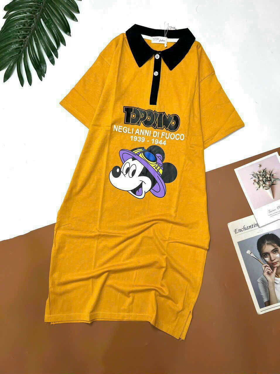 Đầm nữ form suông tay ngắn cổ bẻ in hình
