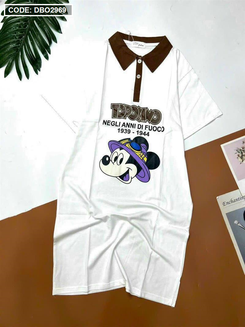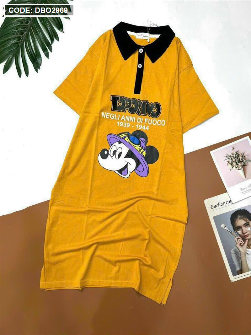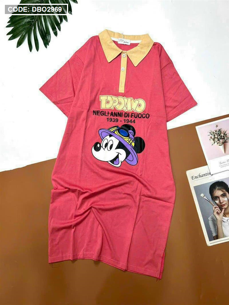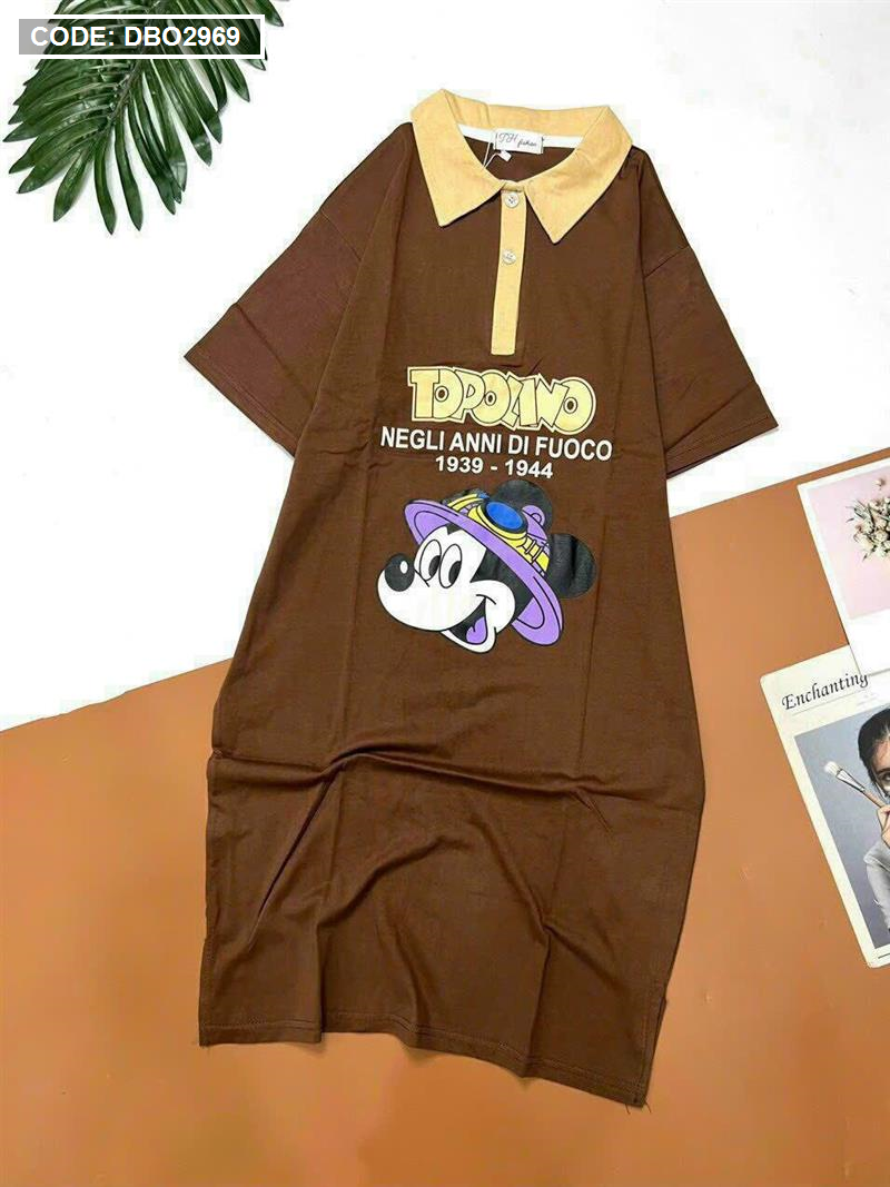 Kho sỉ đầm nữ form suông tay ngắn cổ bẻ in hình