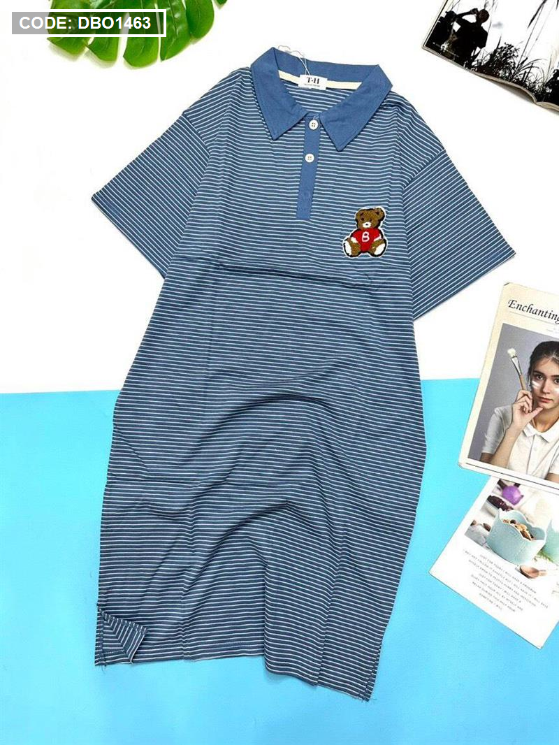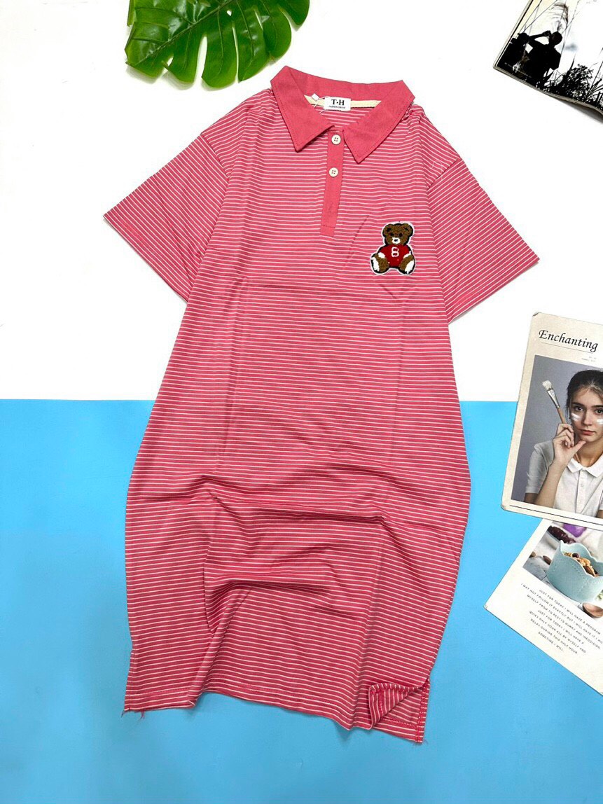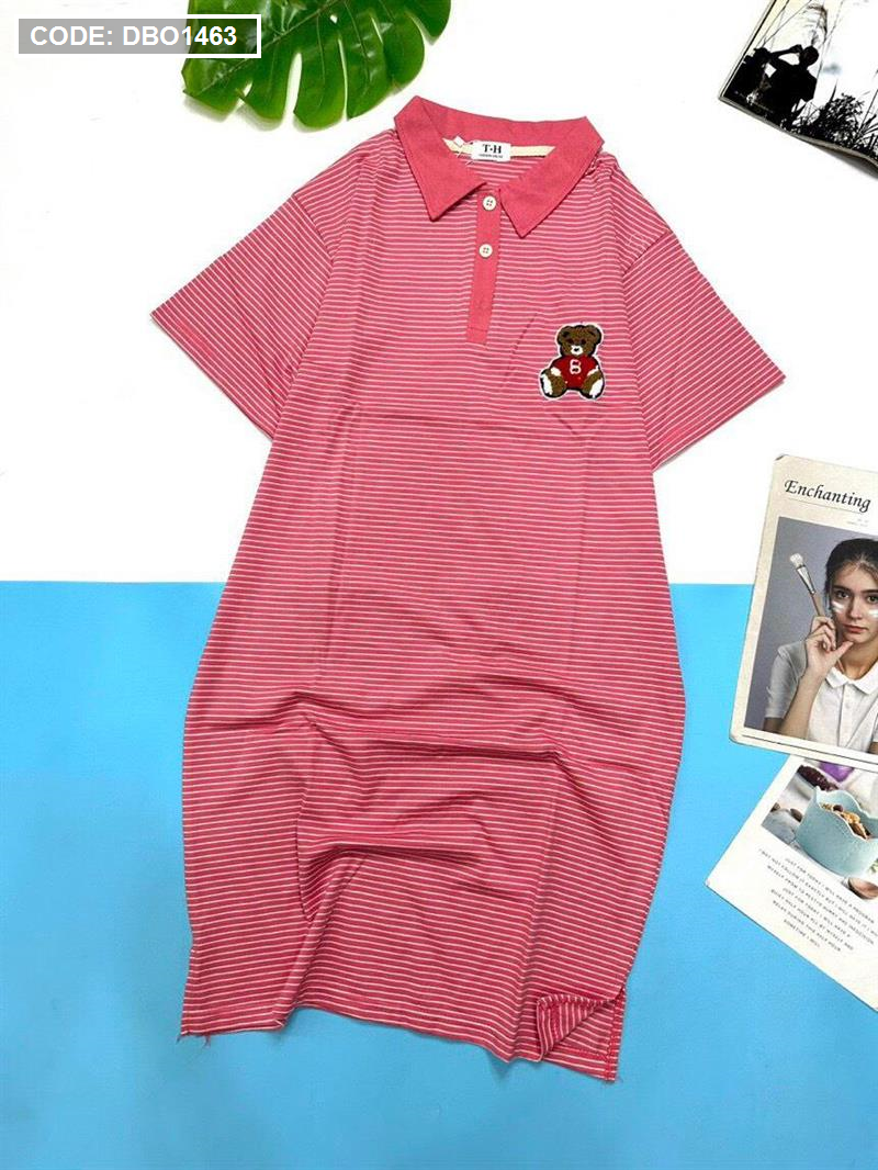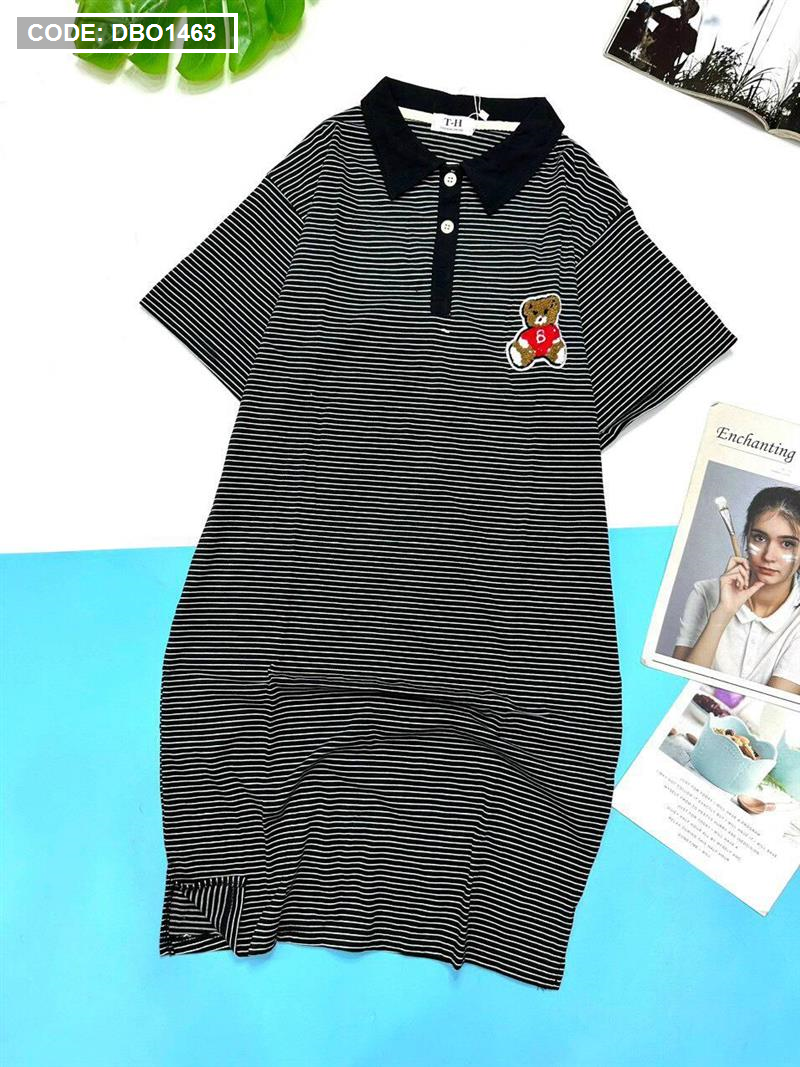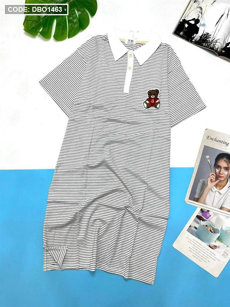 Kho sỉ đầm suông tay ngắn cổ bẻ sọc in hinh con gấu