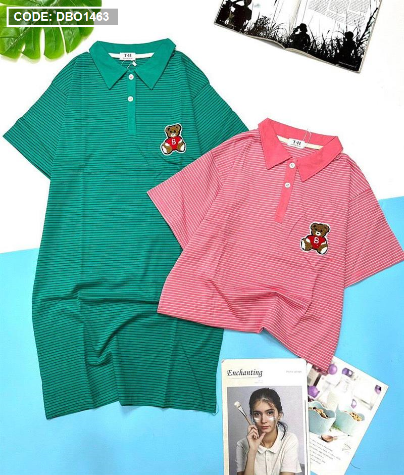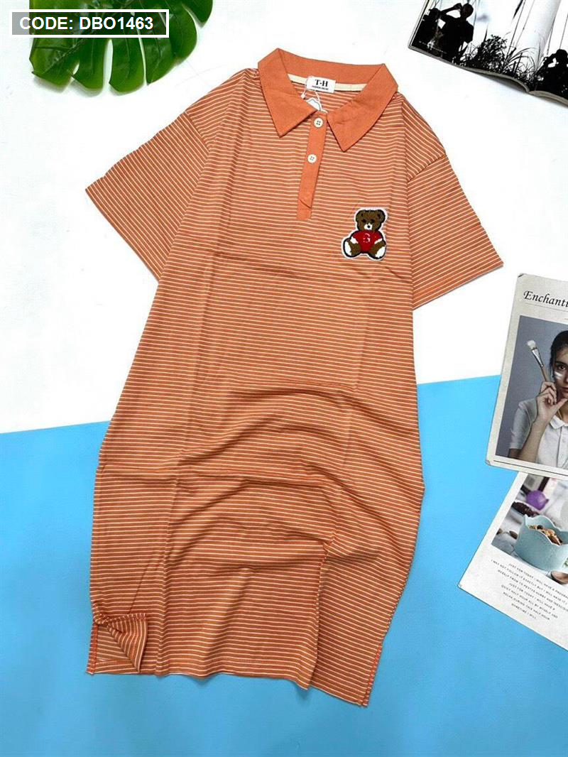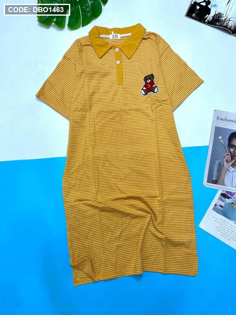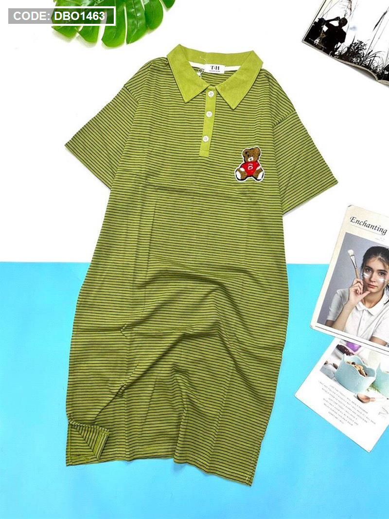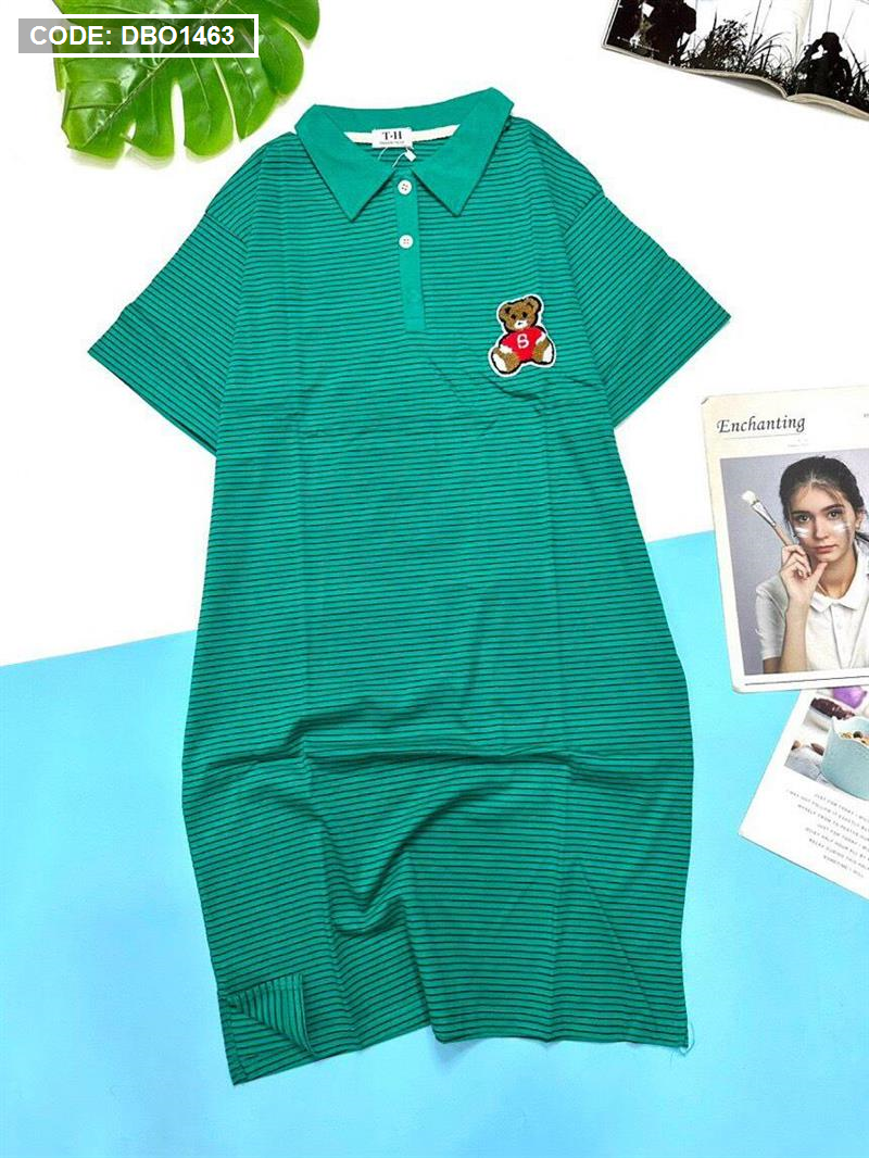 Kho sỉ đầm suông tay ngắn cổ bẻ sọc in hinh con gấu