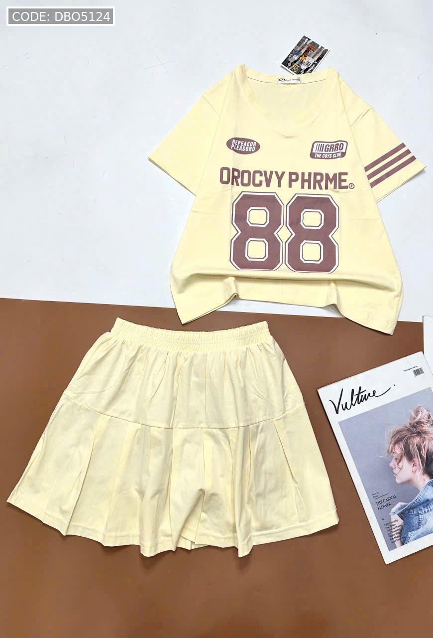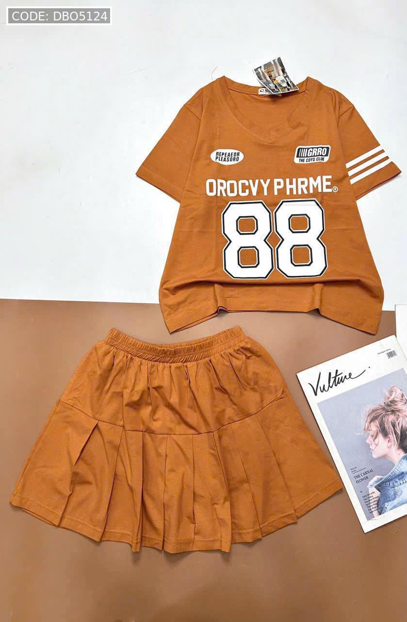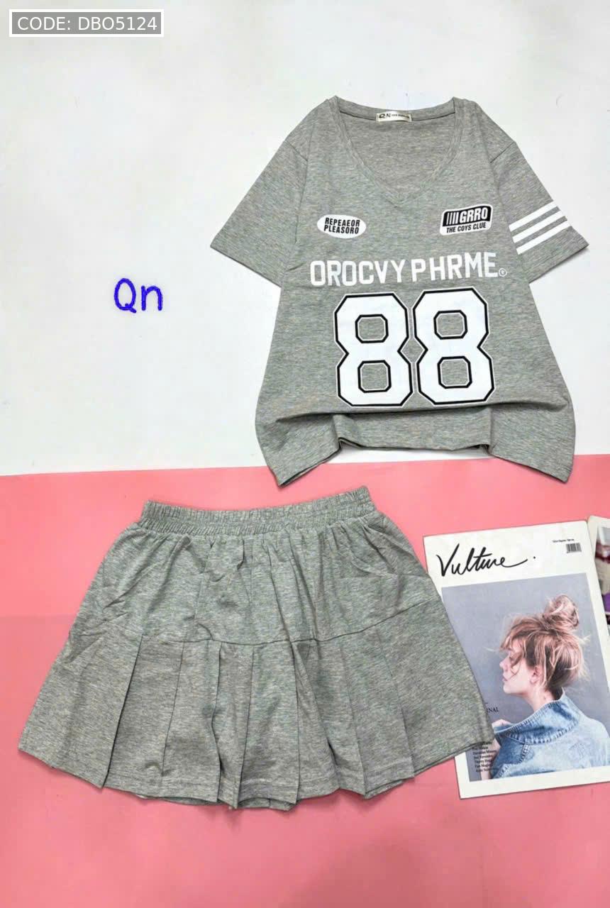 Kho sỉ đồ bộ áo thun chân váy xếp ly lớn in số 88
