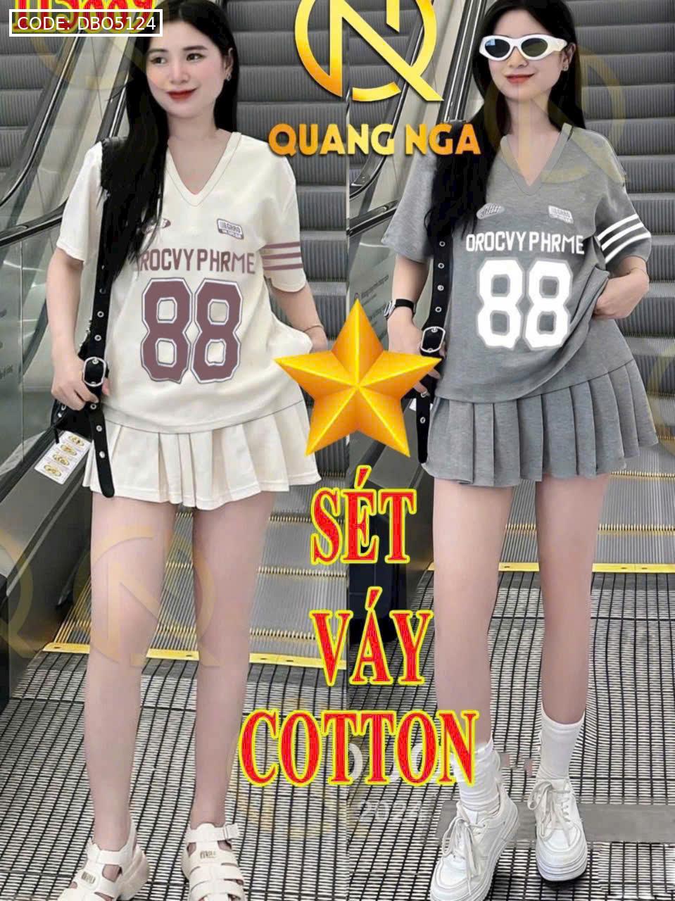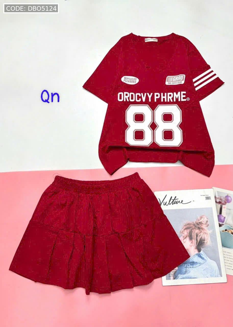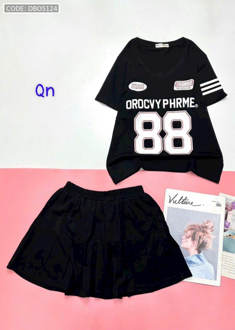 Kho sỉ đồ bộ áo thun chân váy xếp ly lớn in số 88