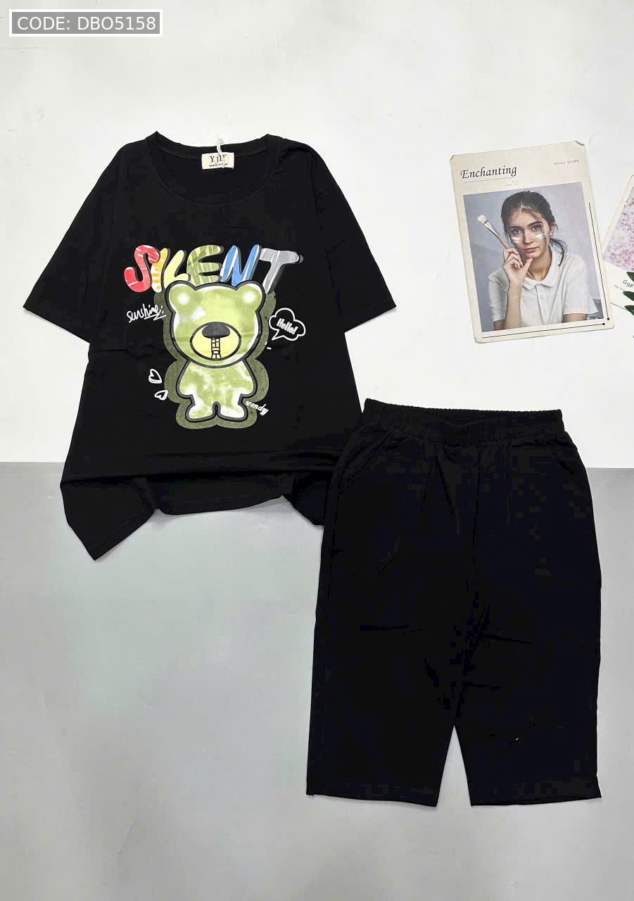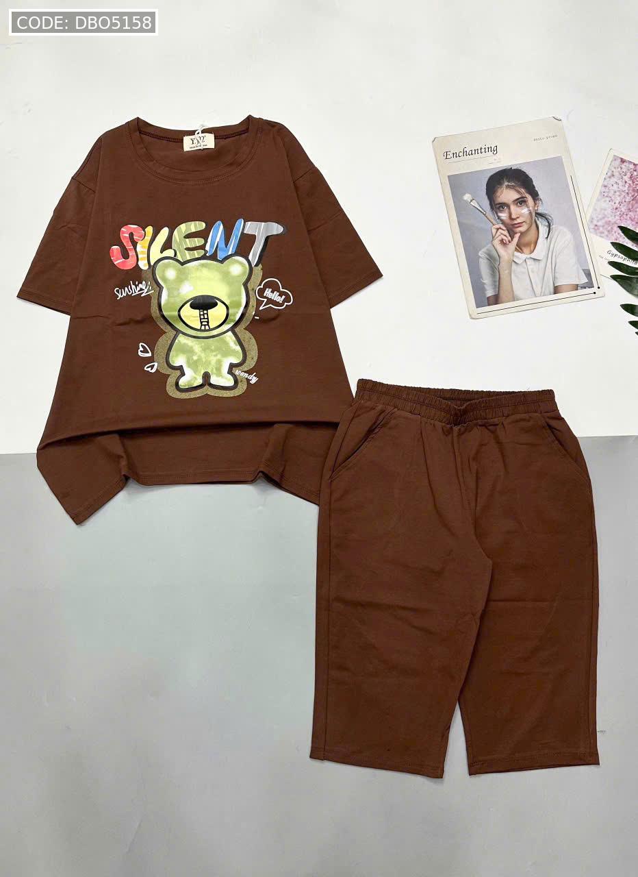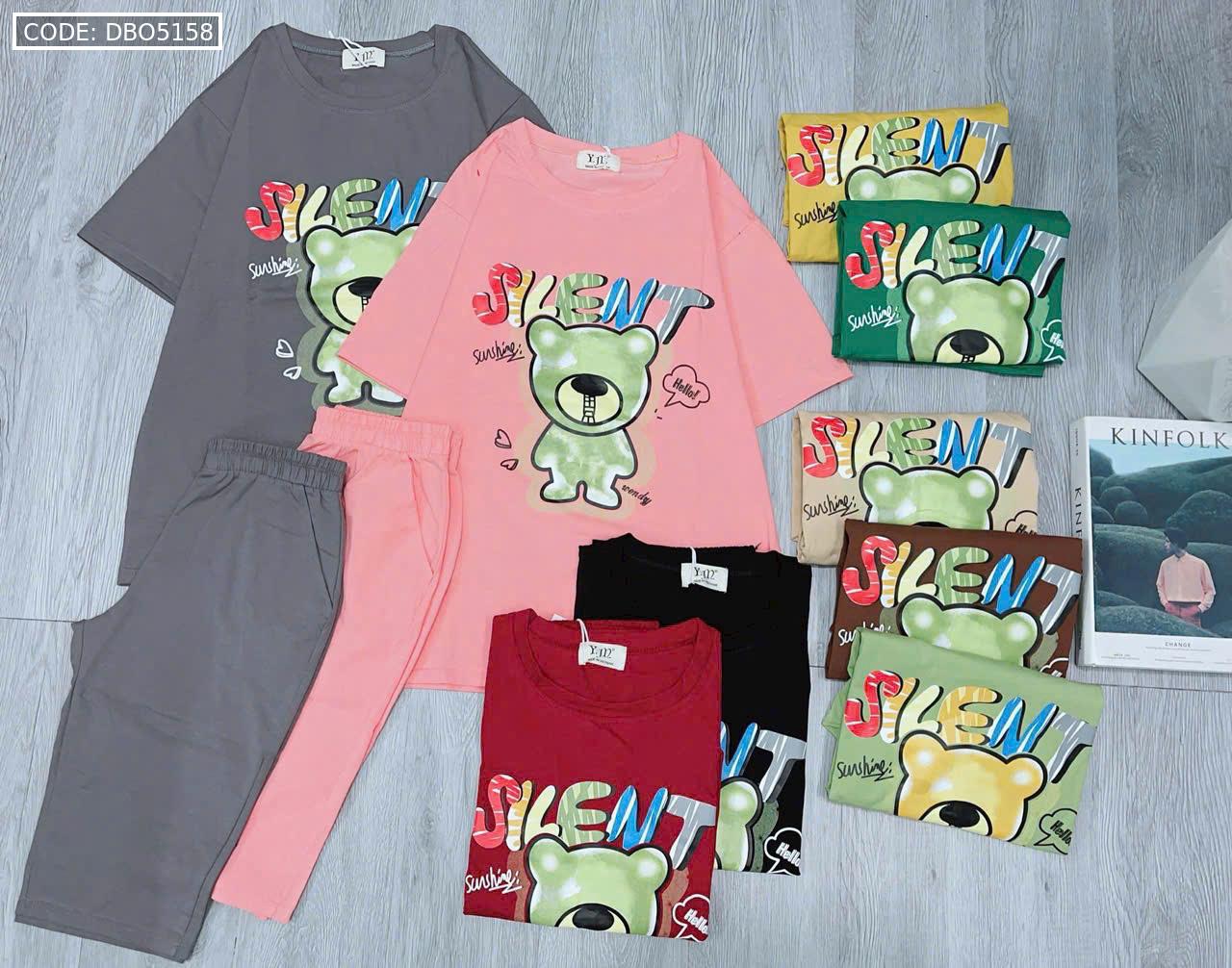 Kho sỉ đồ bộ áo thun quần lửng in chữ silent