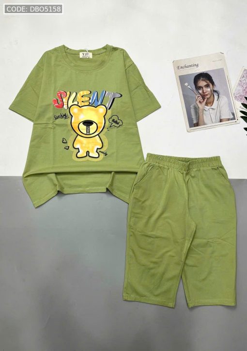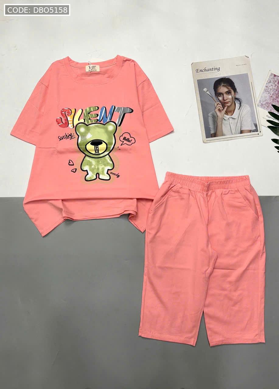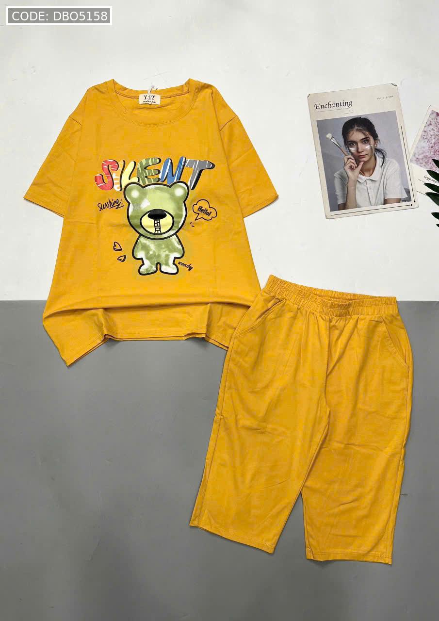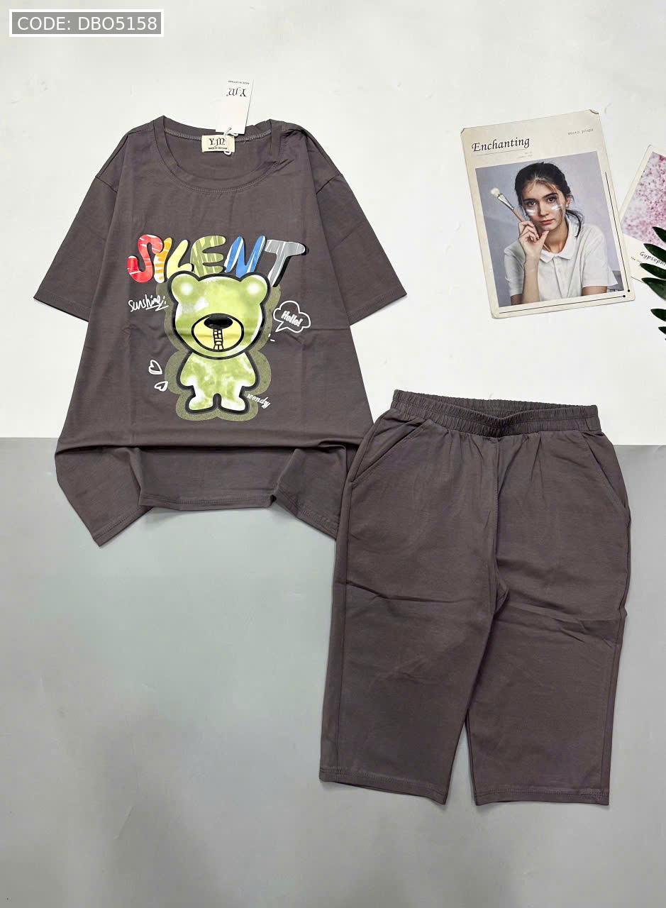 Kho sỉ đồ bộ áo thun quần lửng in chữ silent