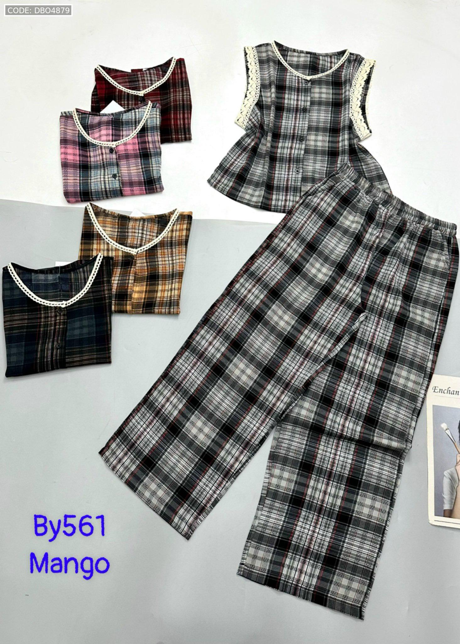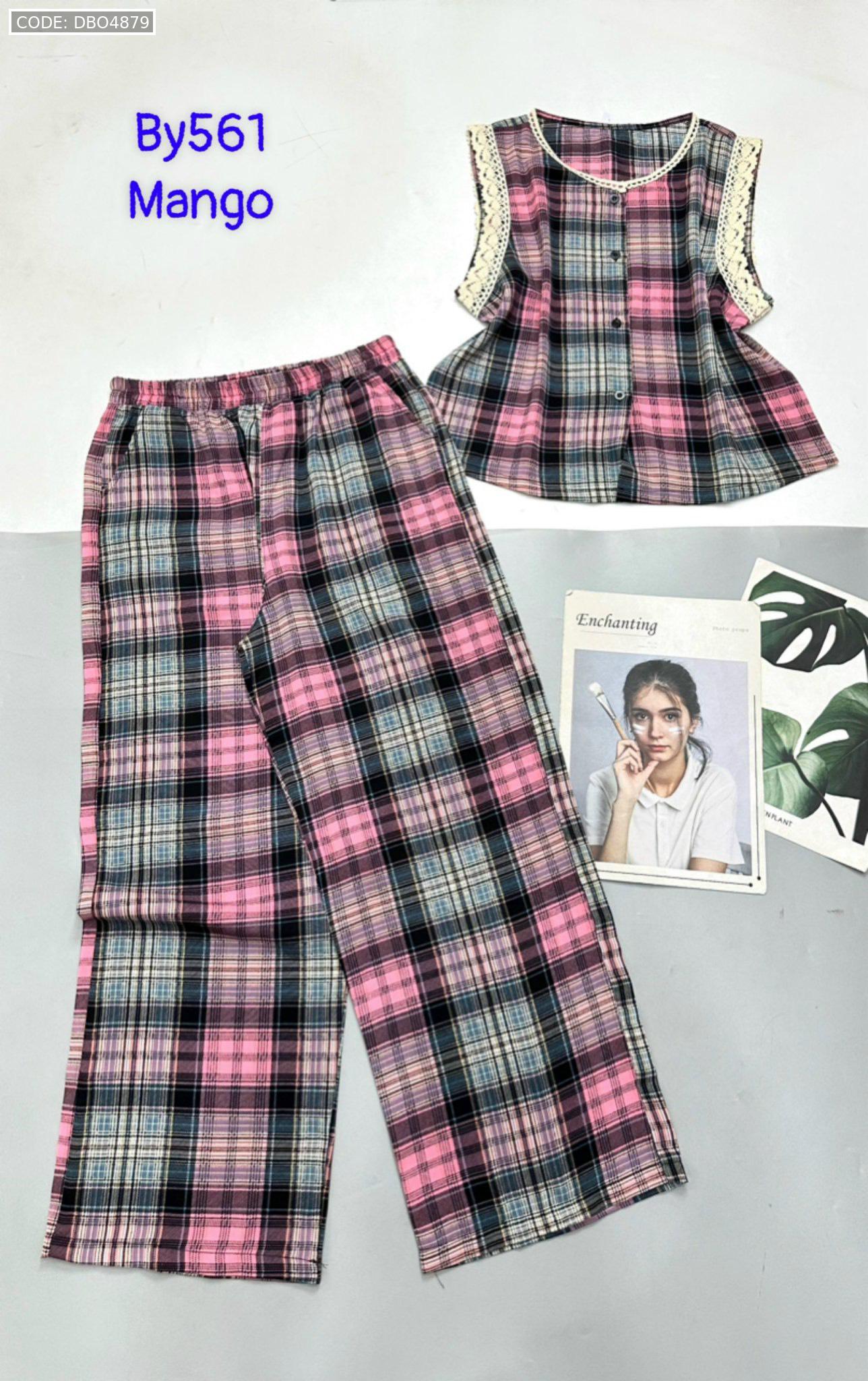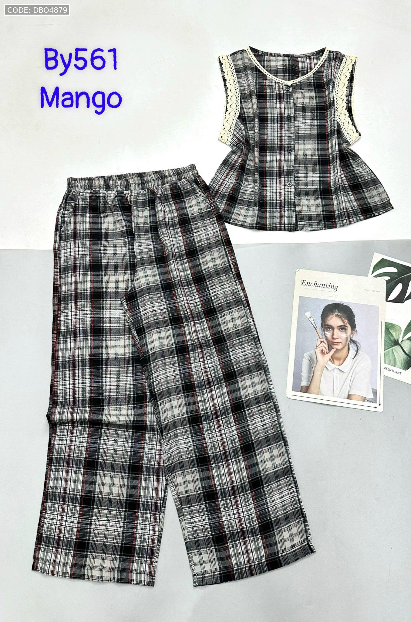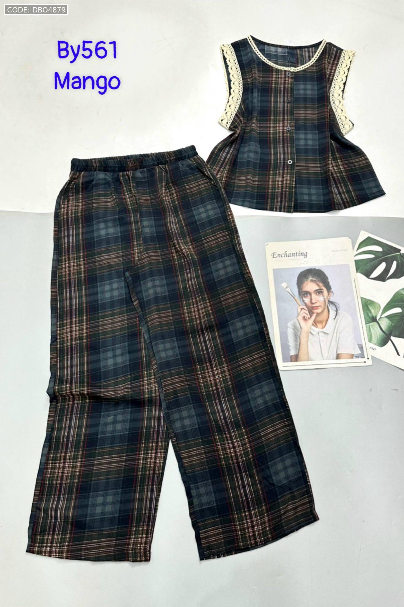 Kho sỉ đồ bộ caro mango quần dài áo sát nách ren