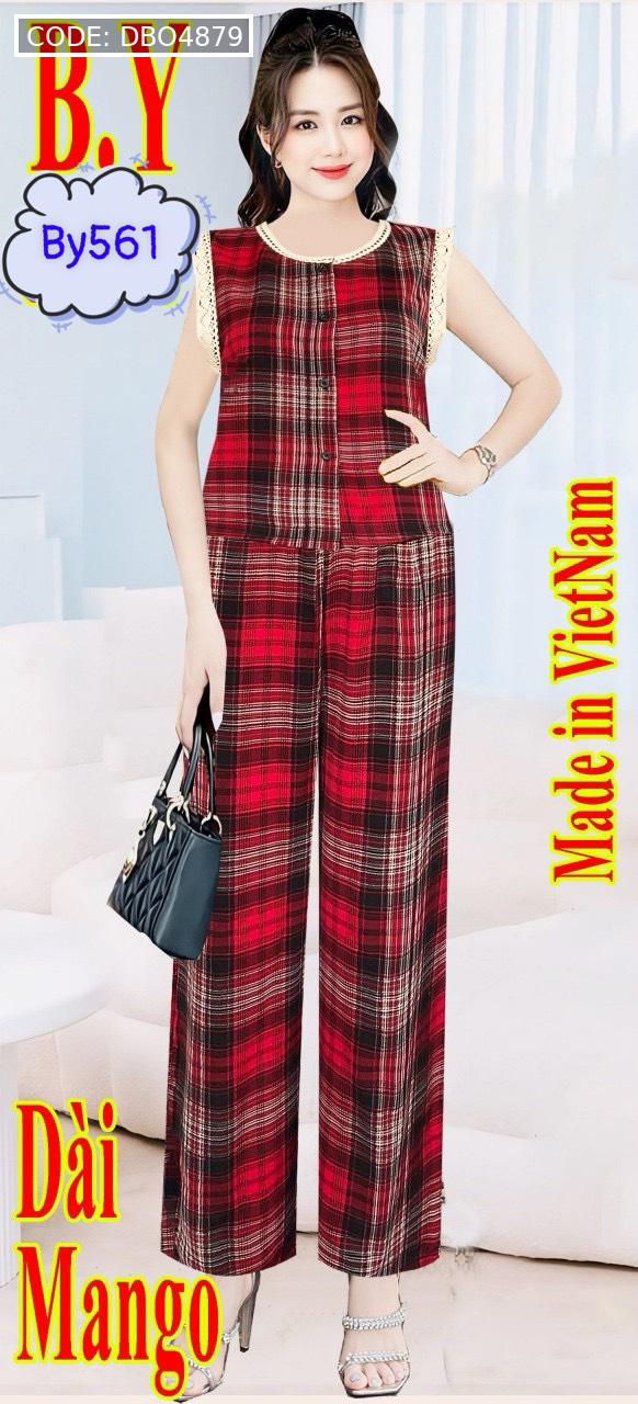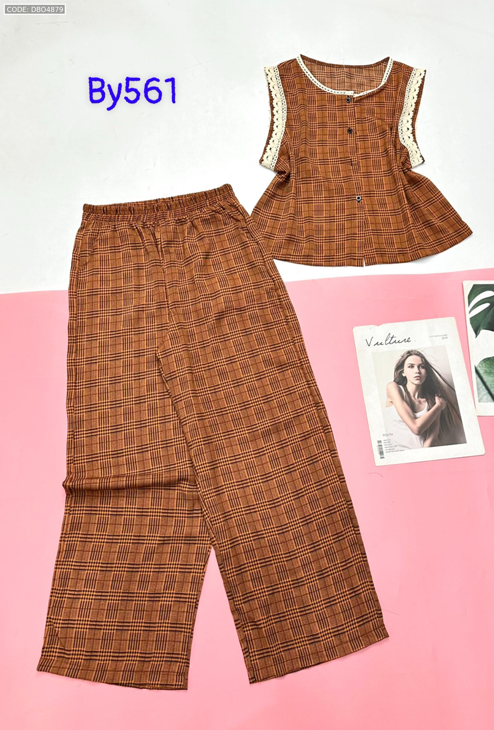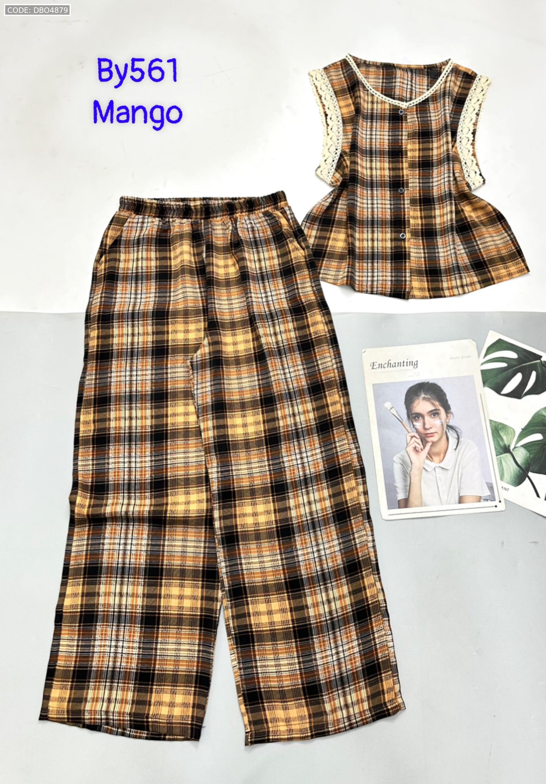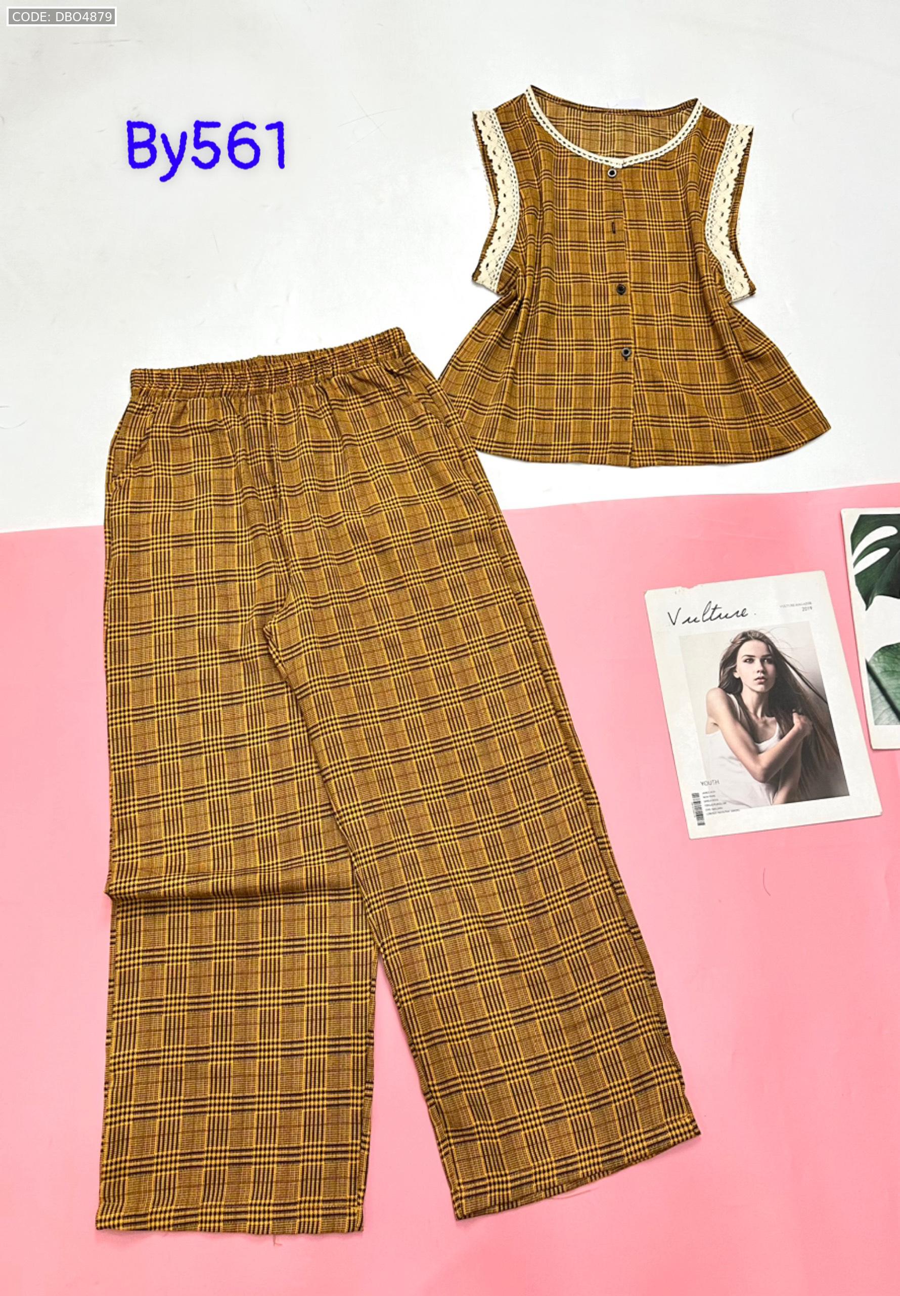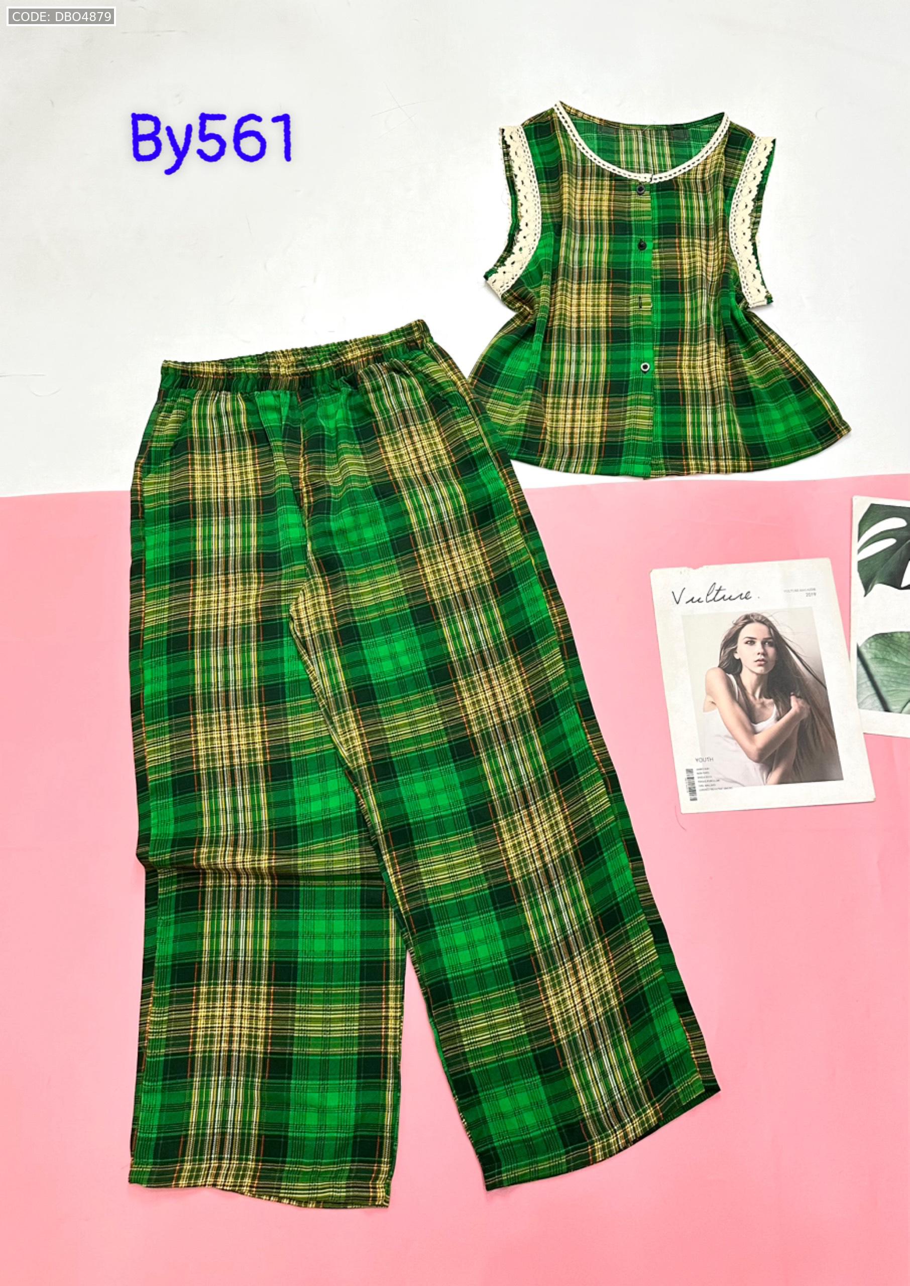 Kho sỉ đồ bộ caro mango quần dài áo sát nách ren