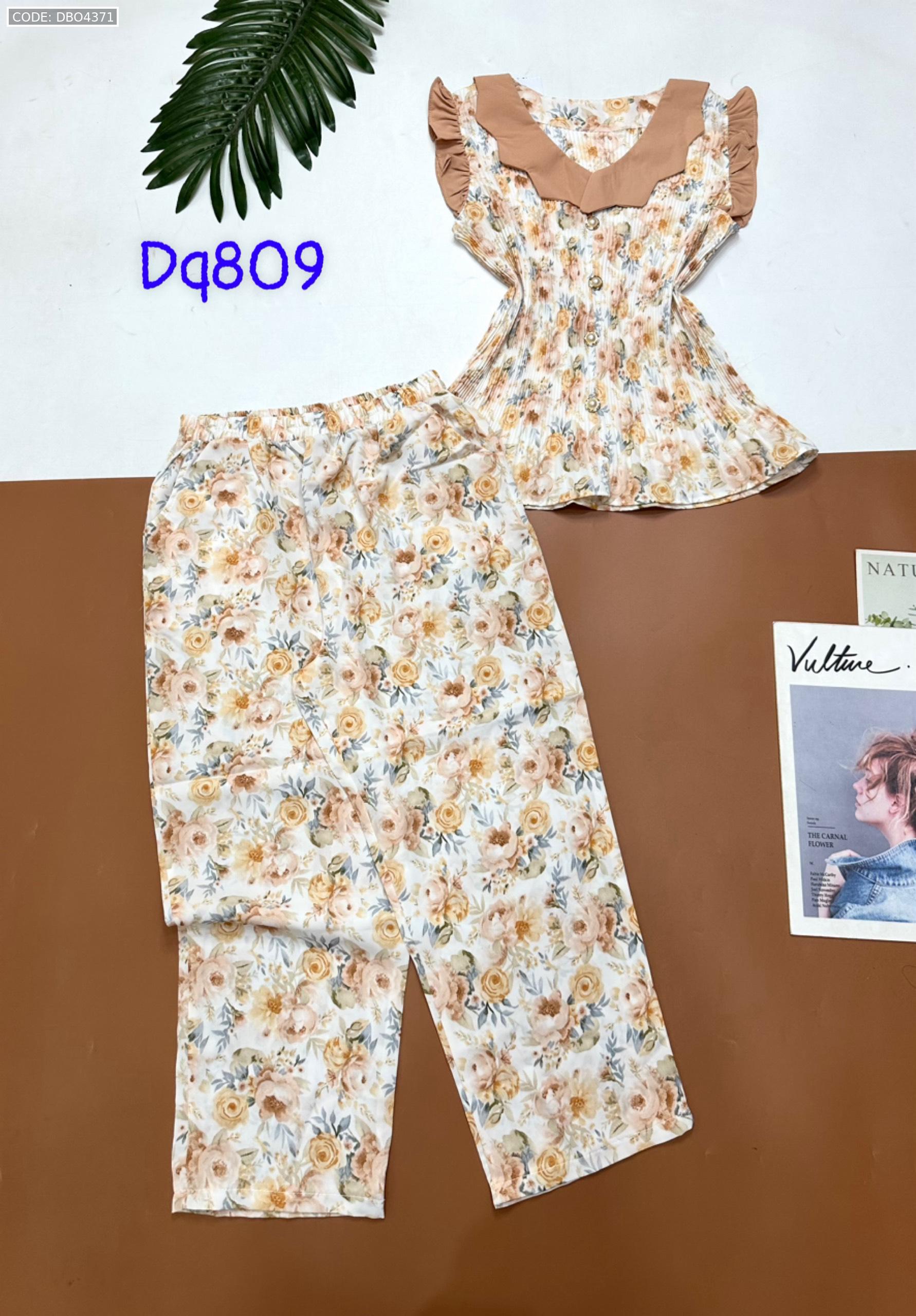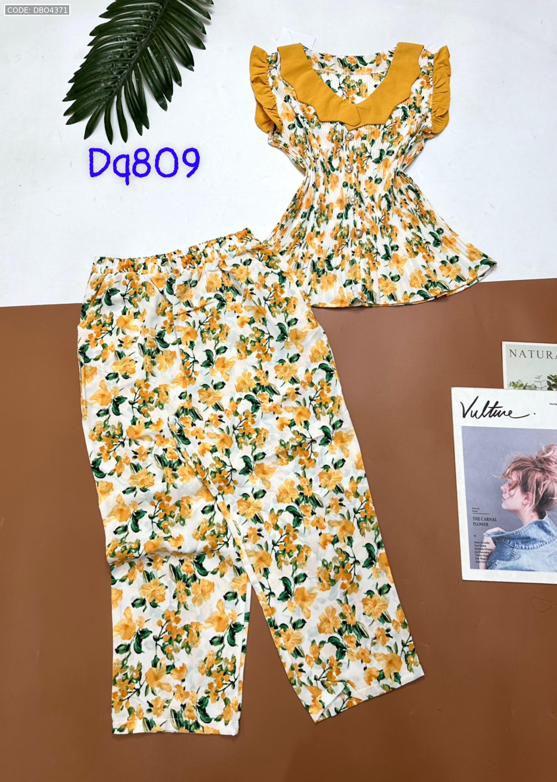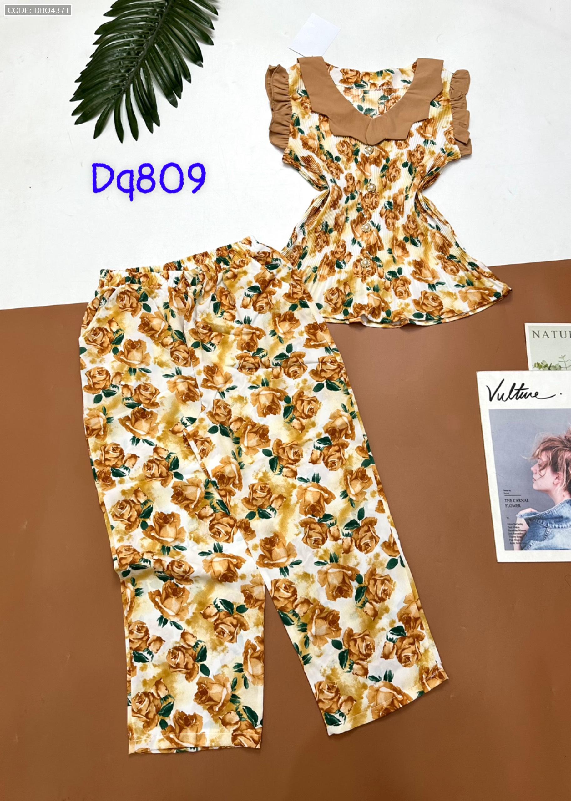 Kho sỉ đồ bộ mango áo sát nách bèo cổ kiểu in bông