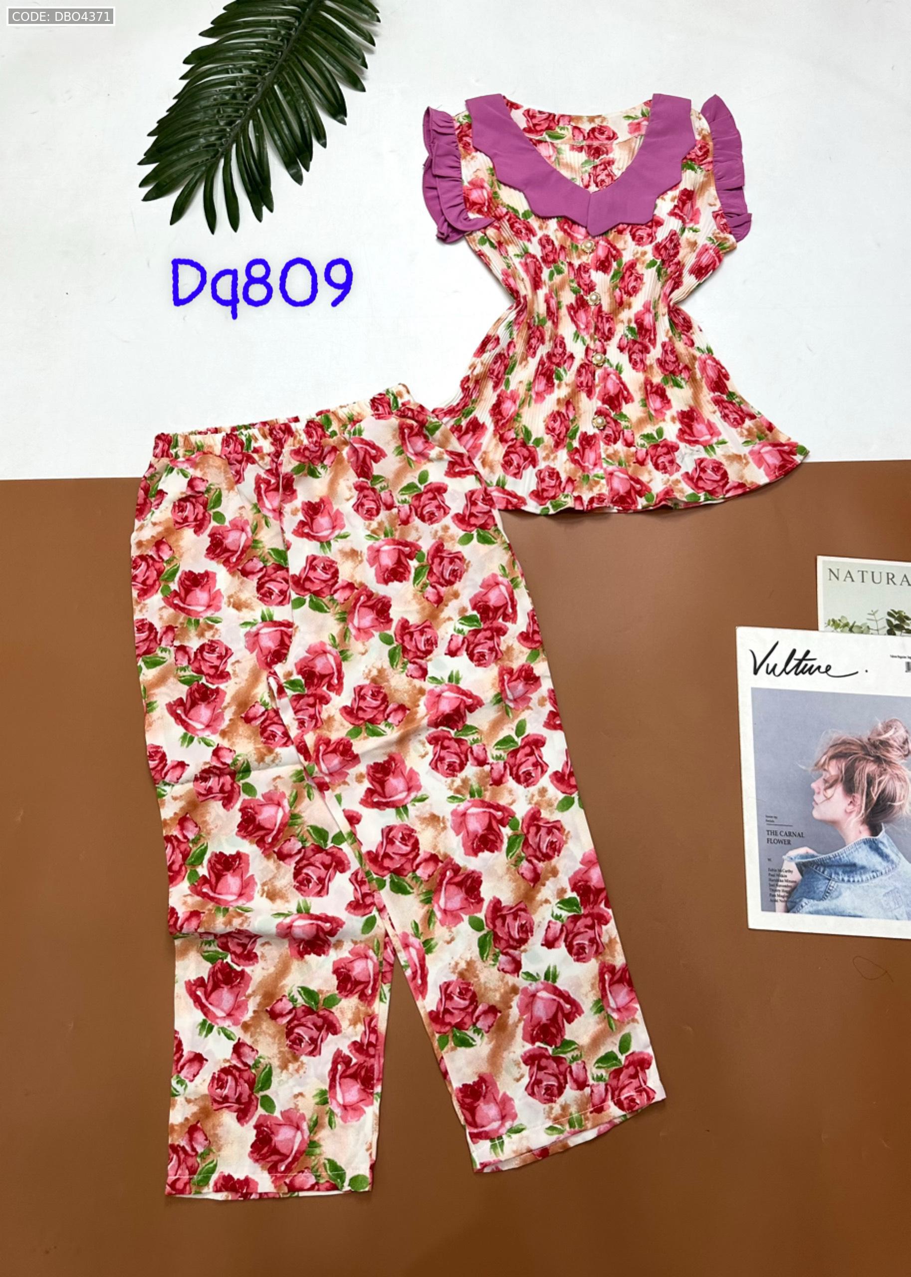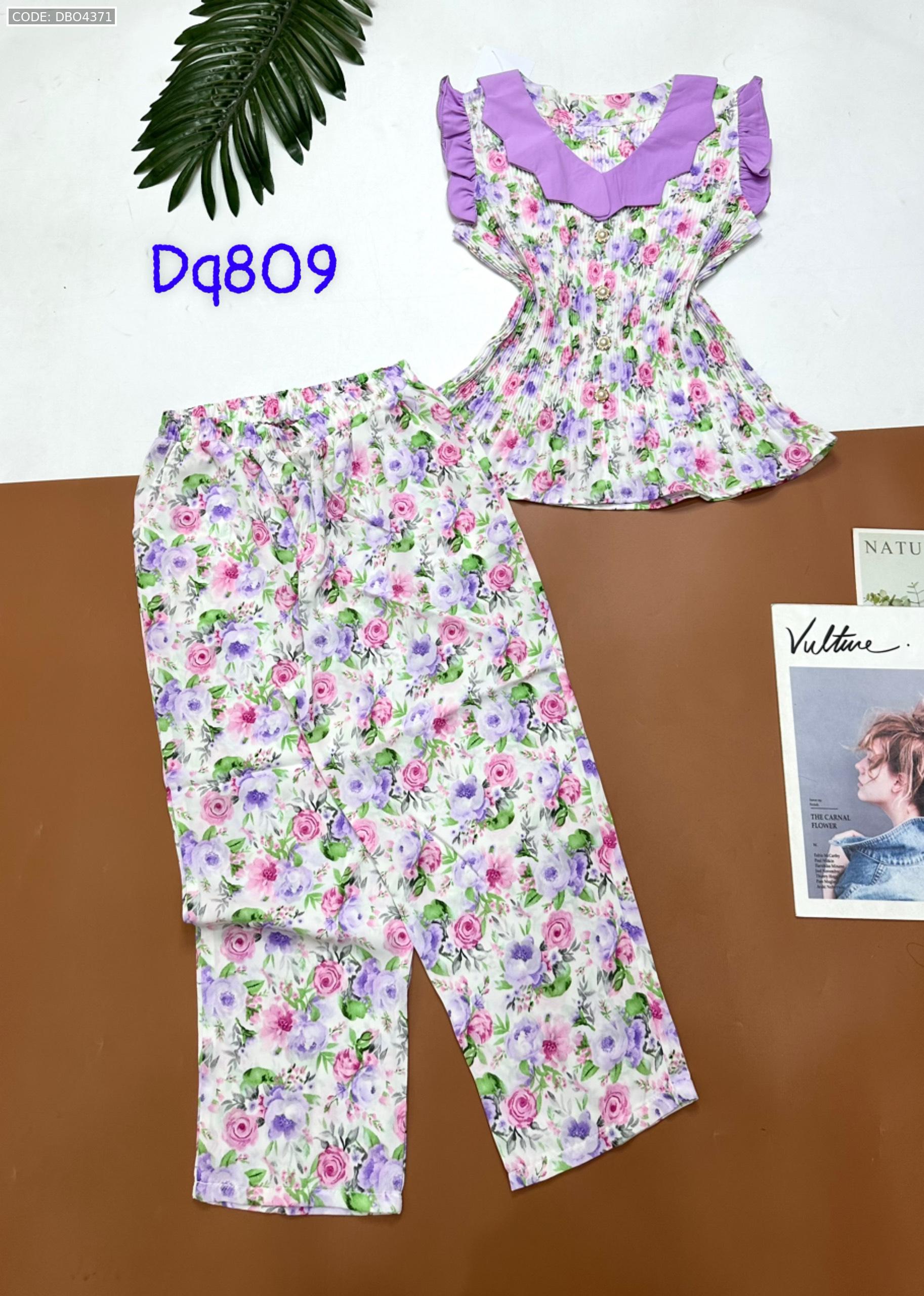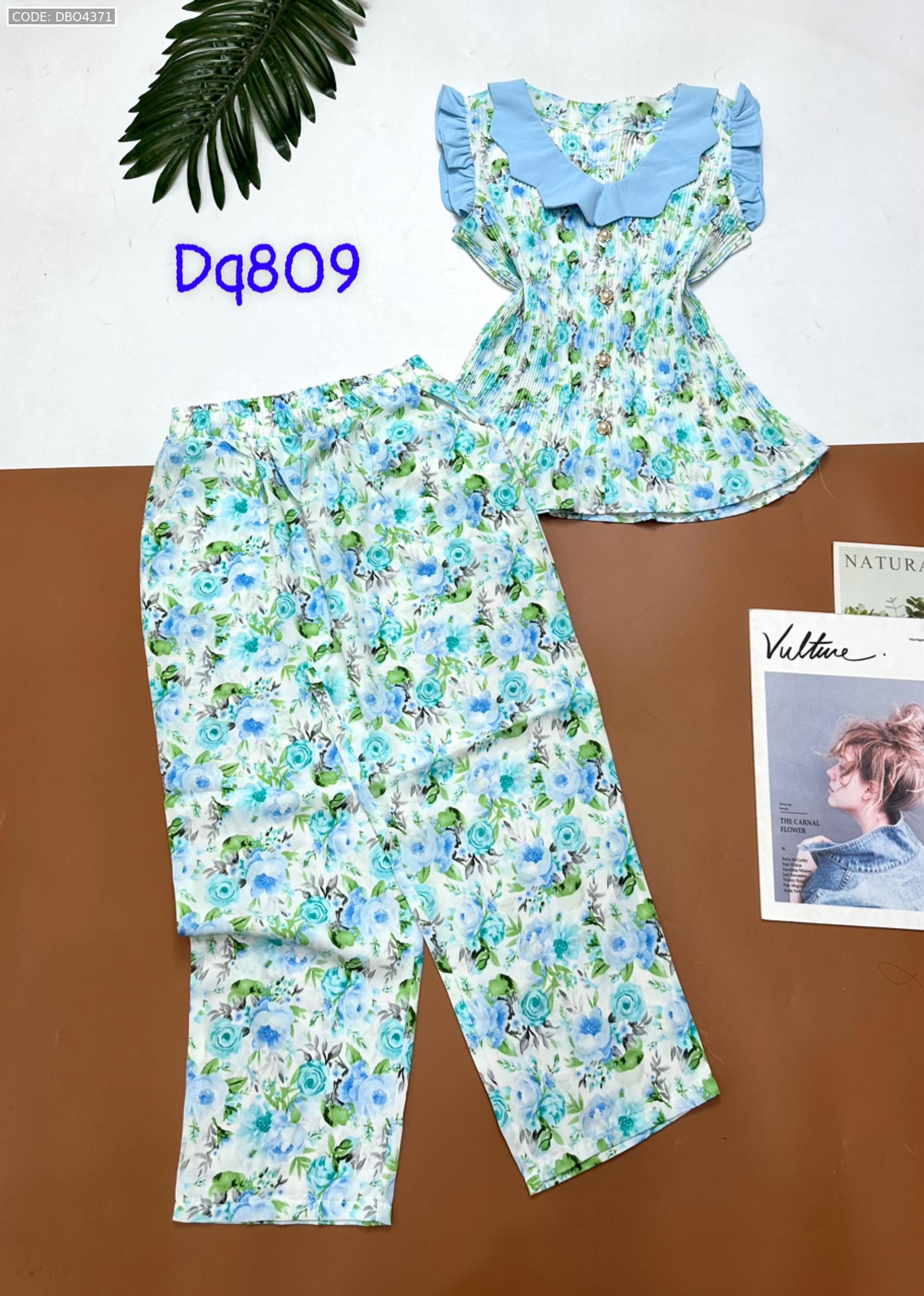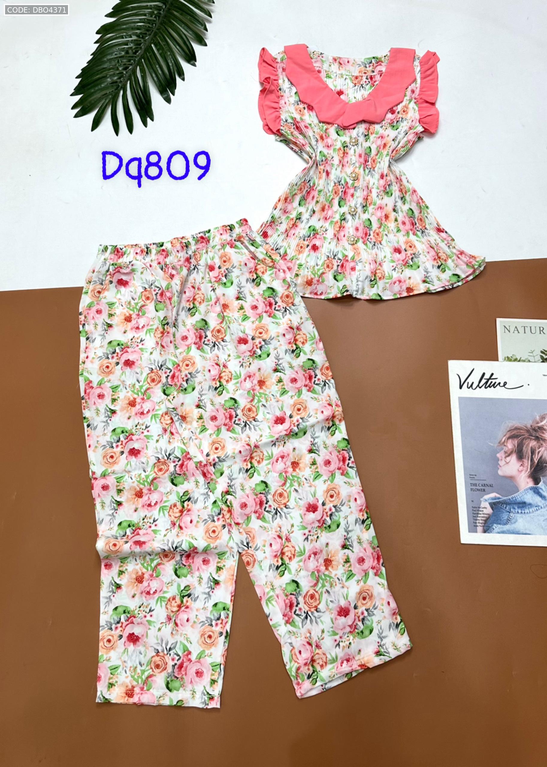 Kho sỉ đồ bộ mango áo sát nách bèo cổ kiểu in bông