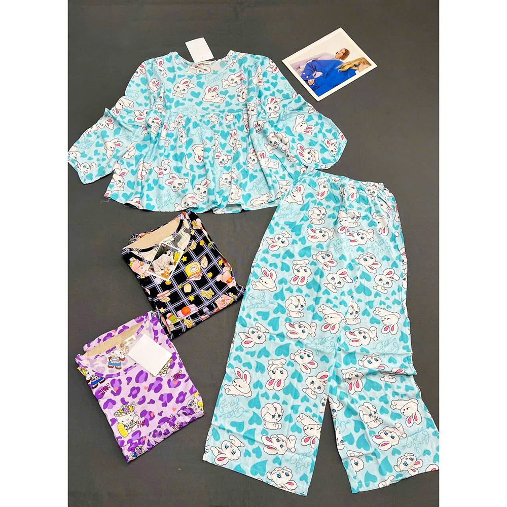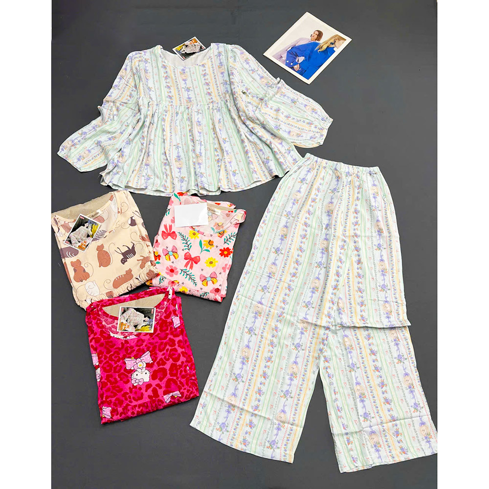 Kho sỉ đồ Bộ Nữ Áo Babydoll Tay Dài Quần Dài Họa Tiết Sang Trọng Vải Tole Mịn Mát Size 45-62kg