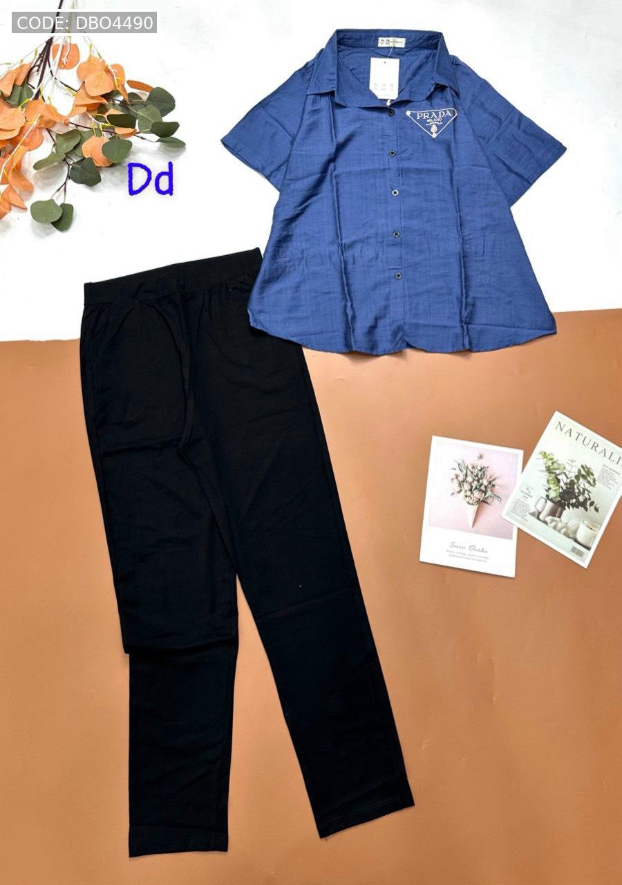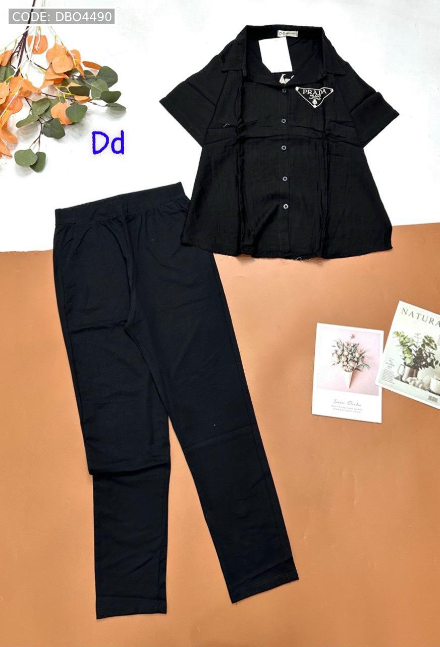 Kho sỉ đồ bộ nữ quần dài áo sơ mi in chữ PADAN