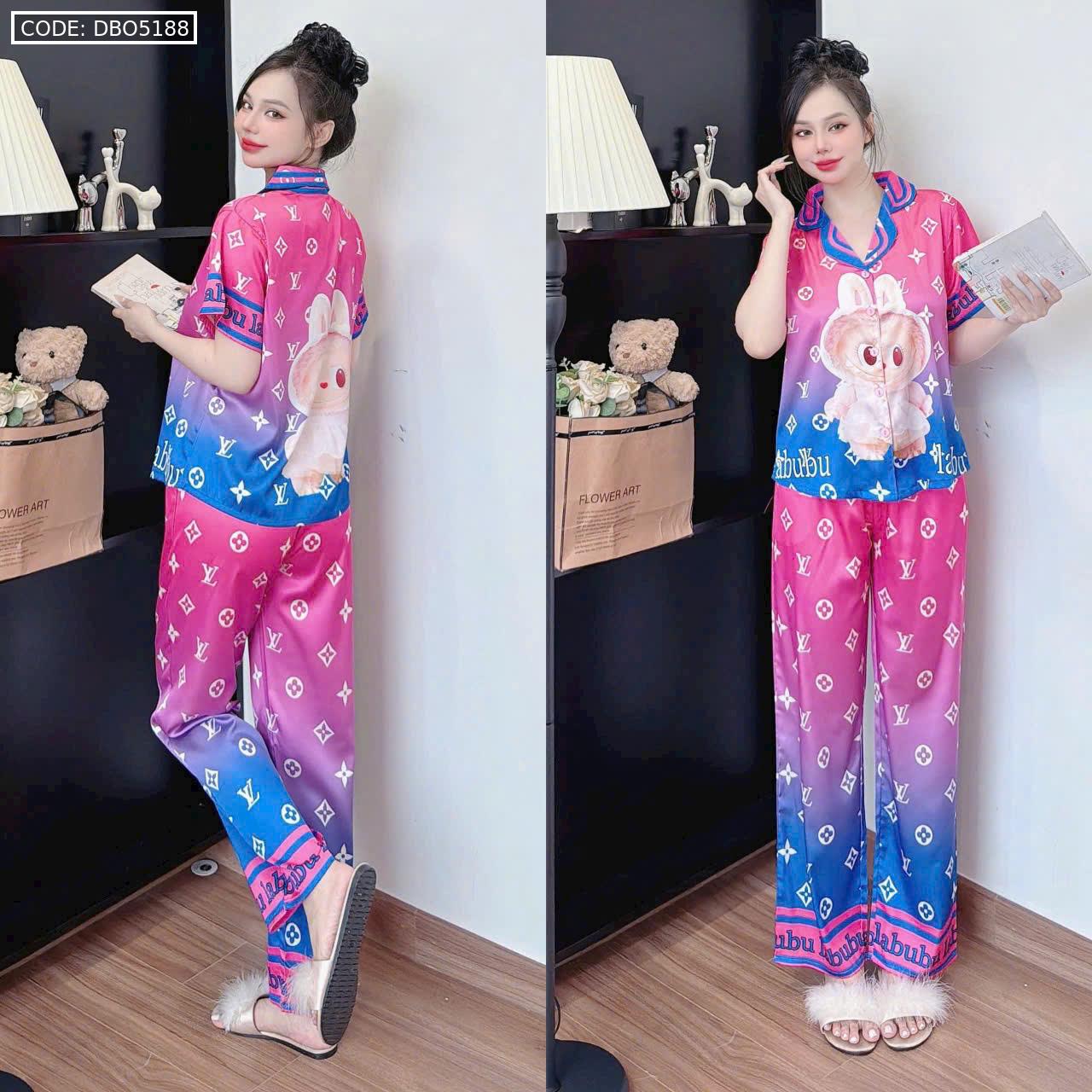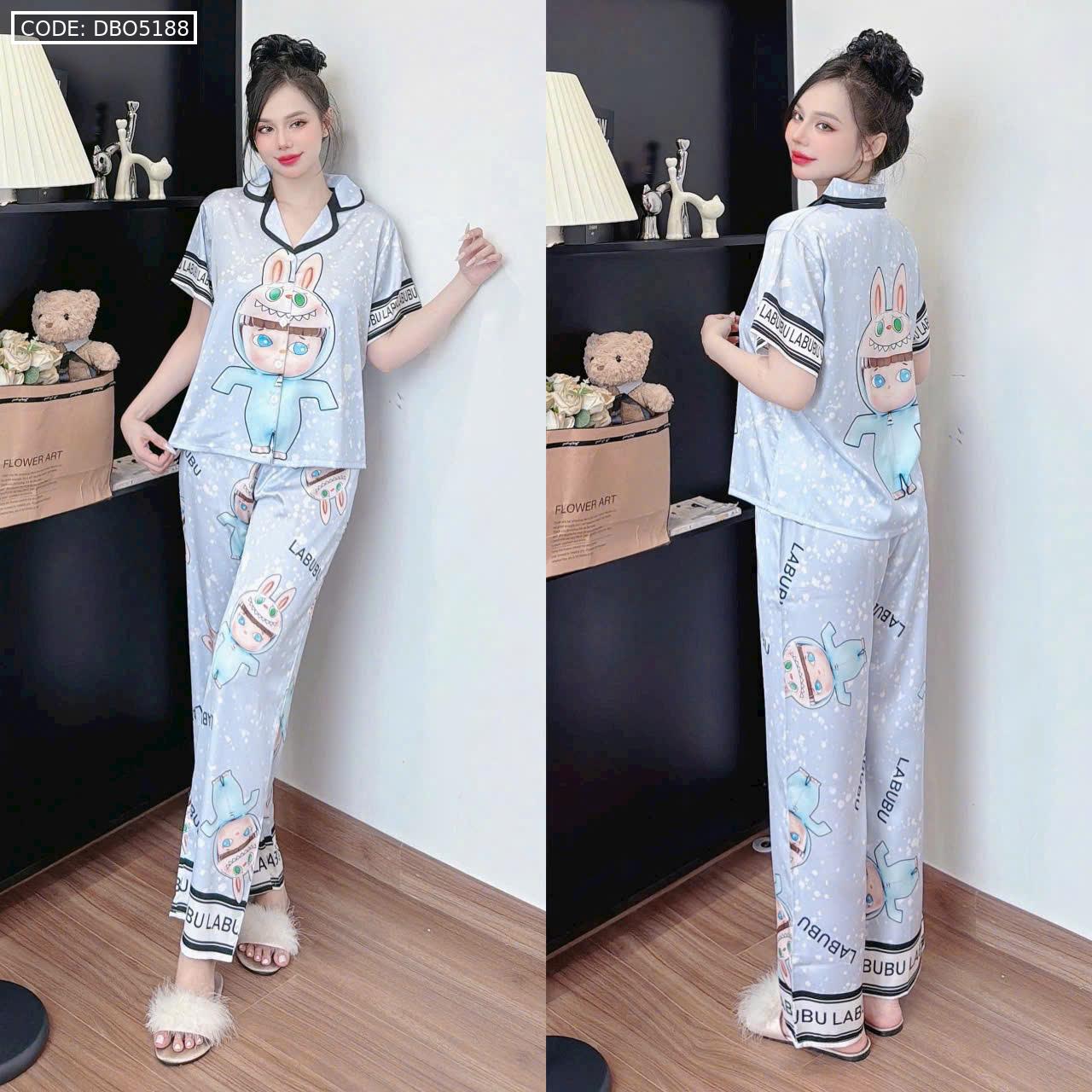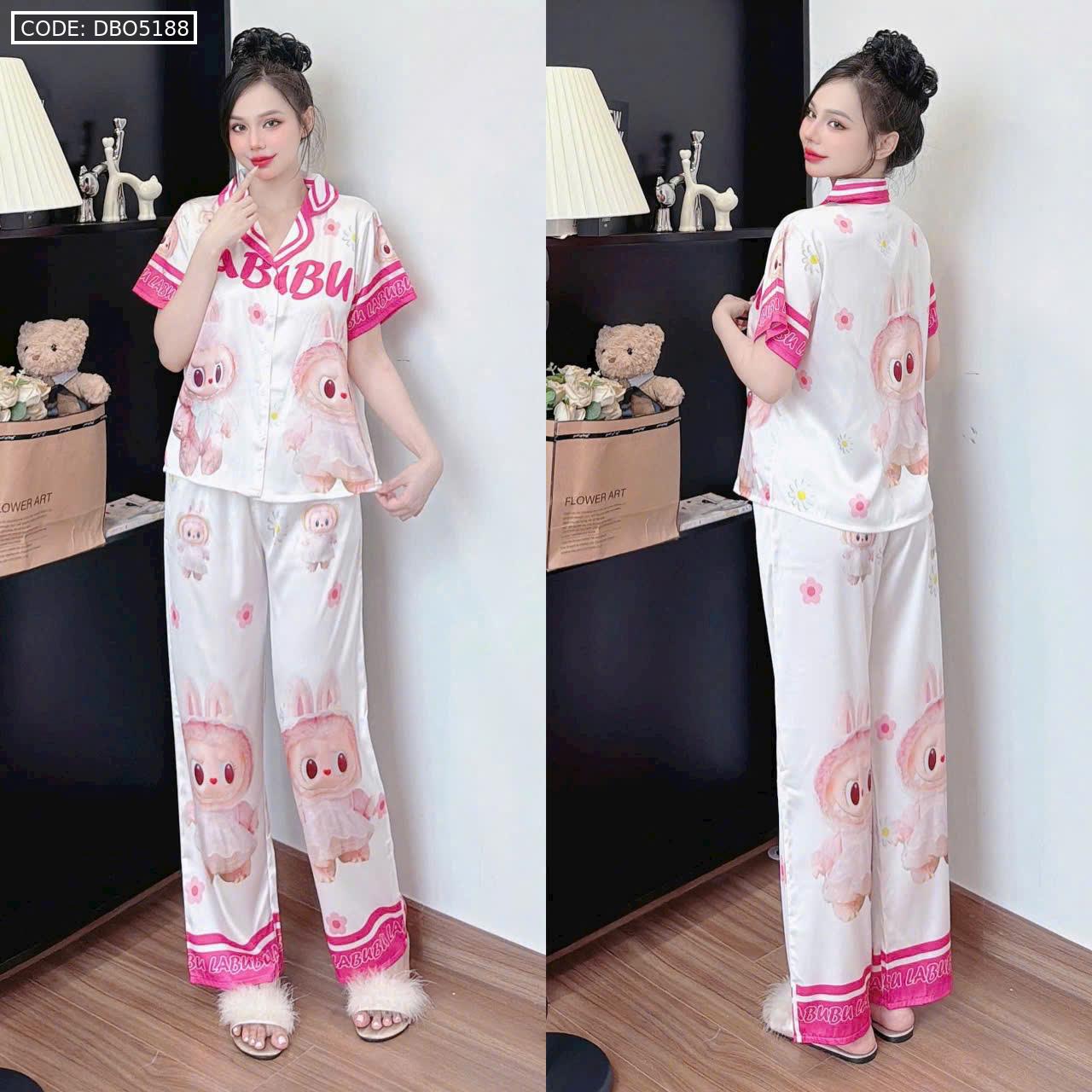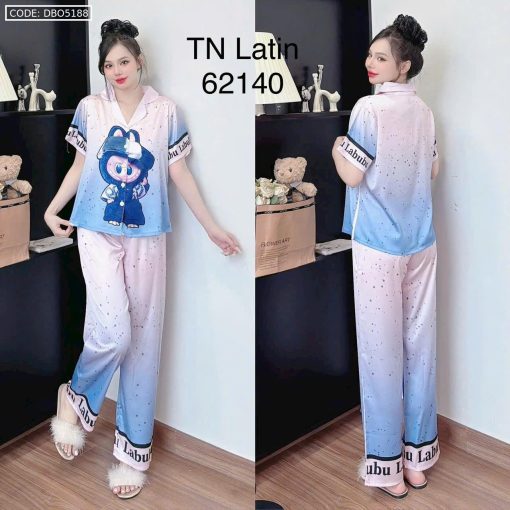 Kho sỉ đồ bộ pijama latin quần dài áo tay ngắn in hình Labubu