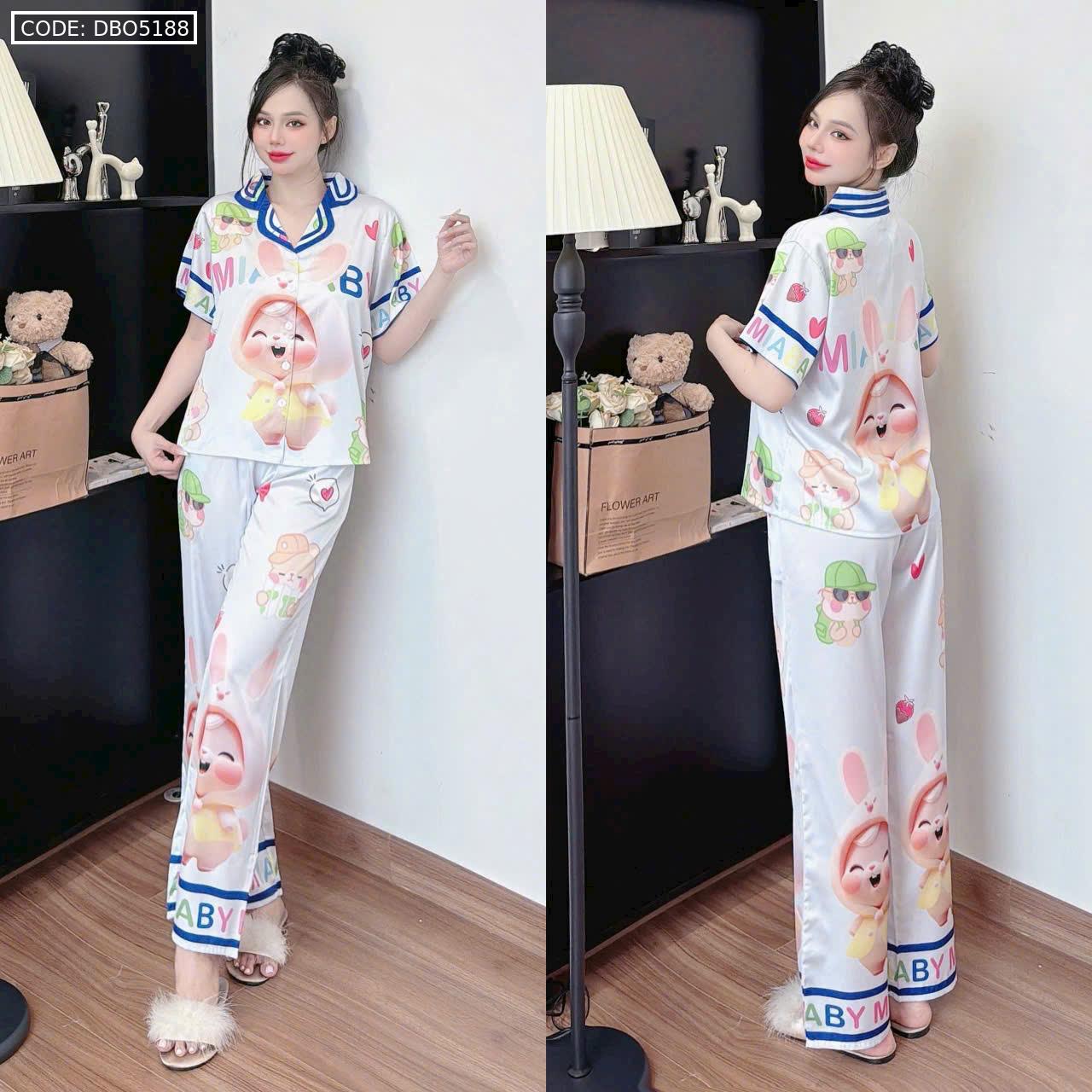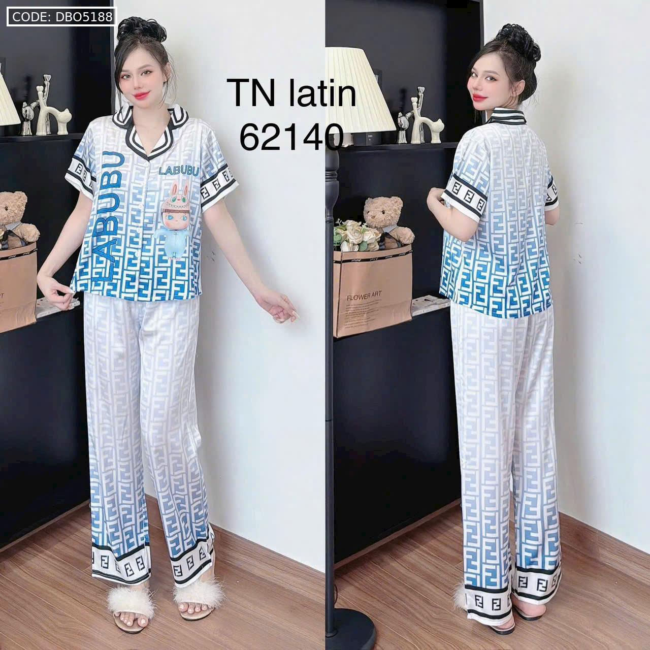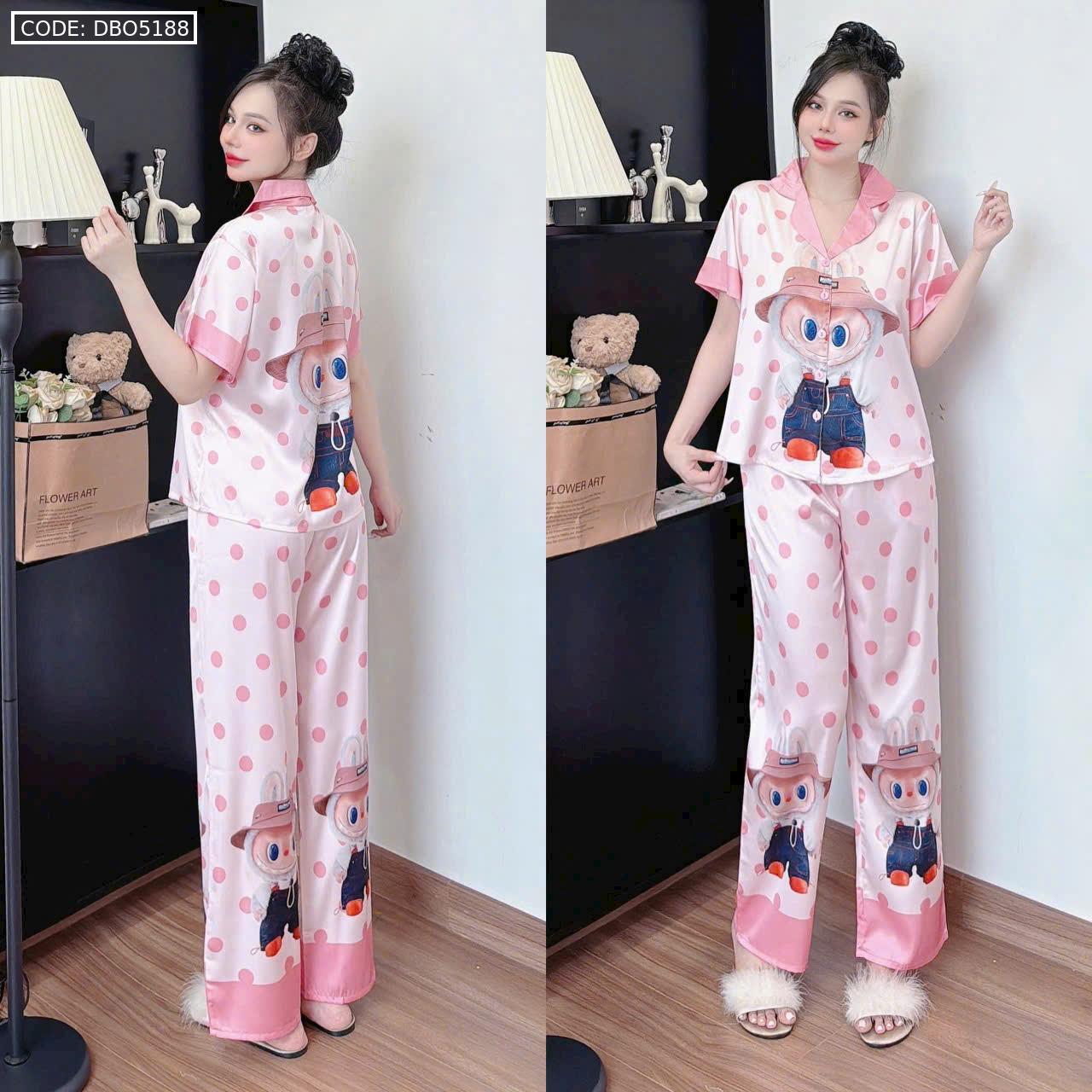 Kho sỉ đồ bộ pijama latin quần dài áo tay ngắn in hình Labubu