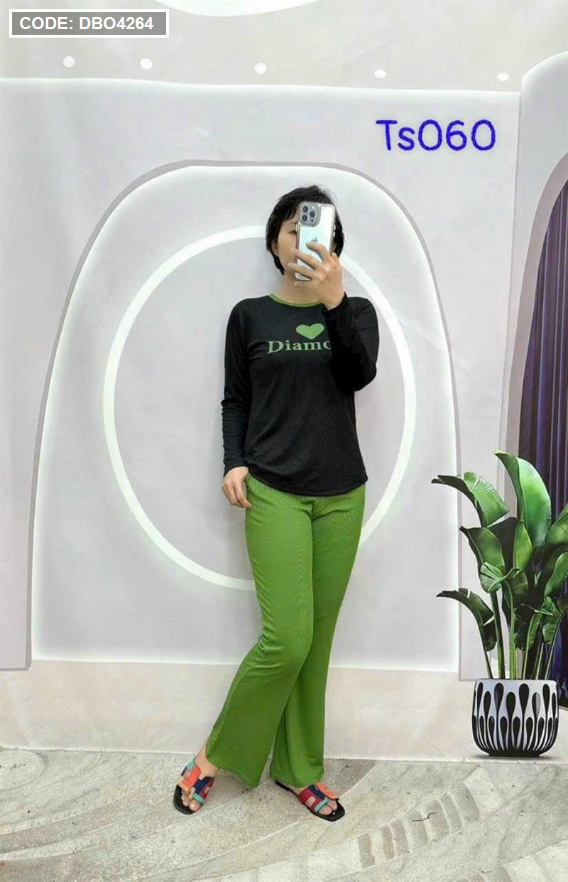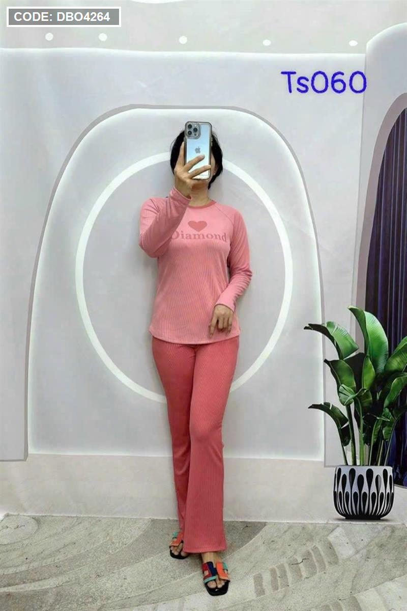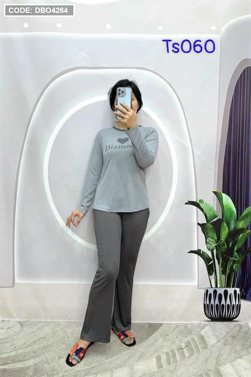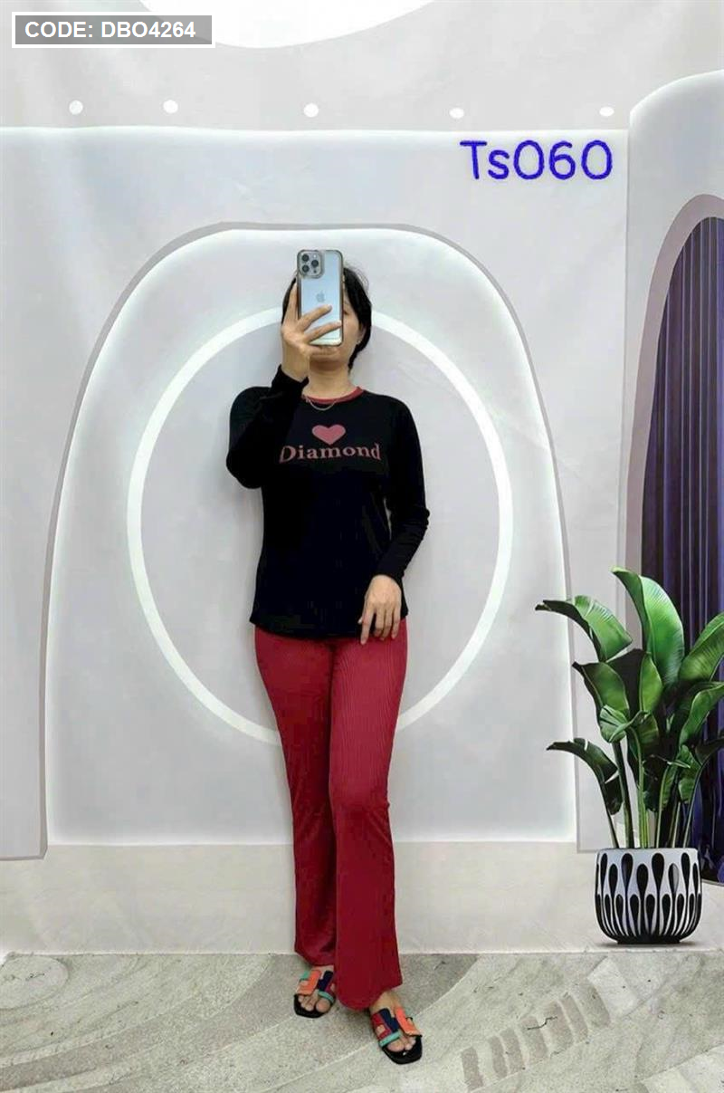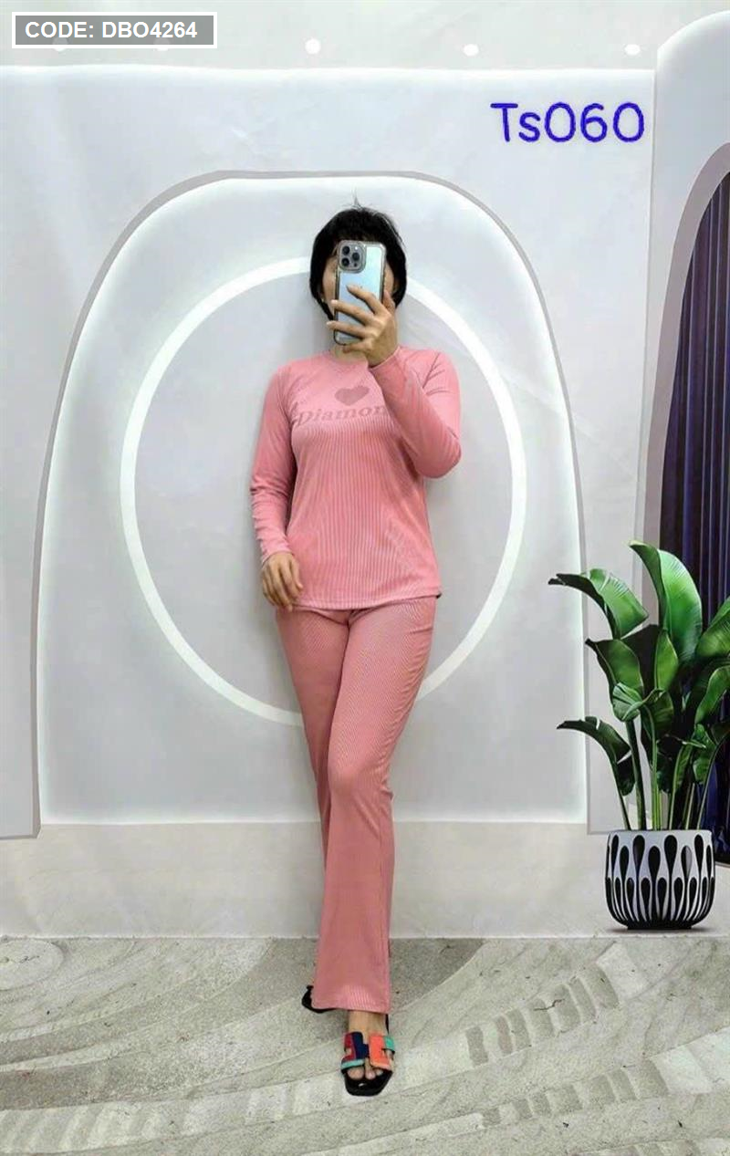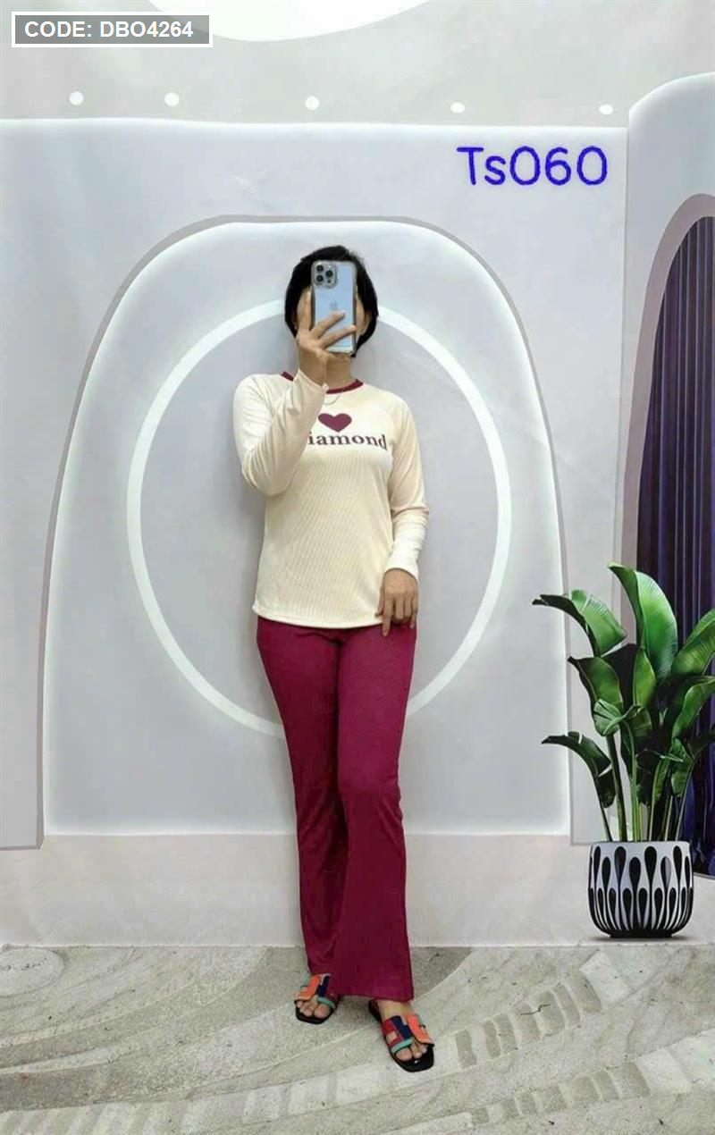 Kho sỉ đồ bộ quần dài áo tay dài in hình trái tim trước ngực