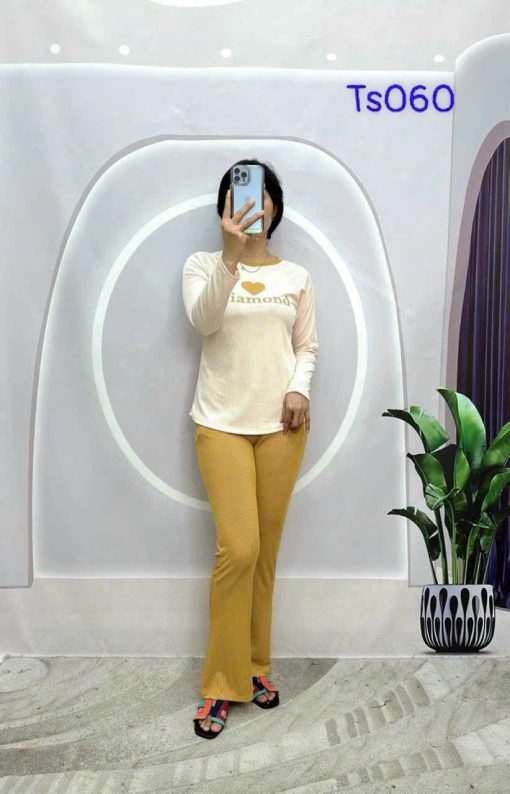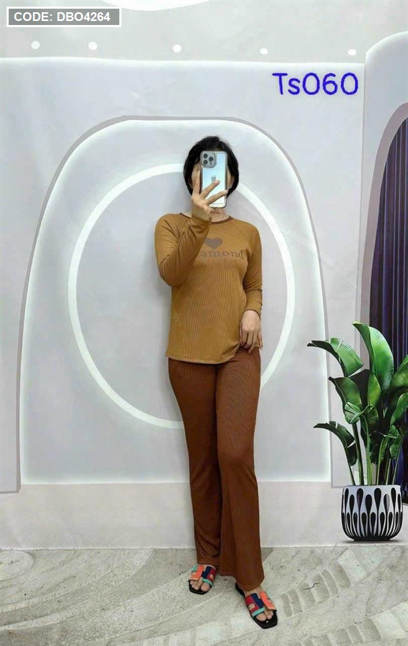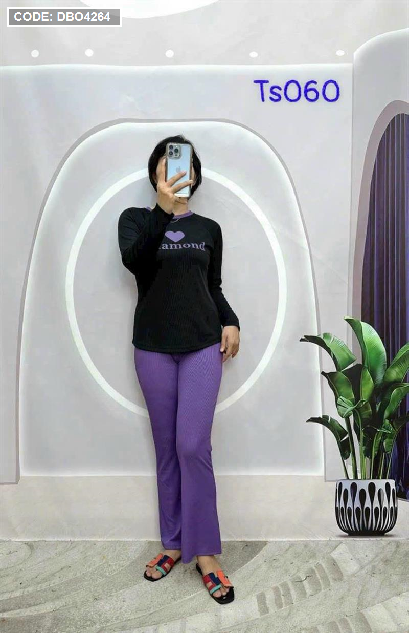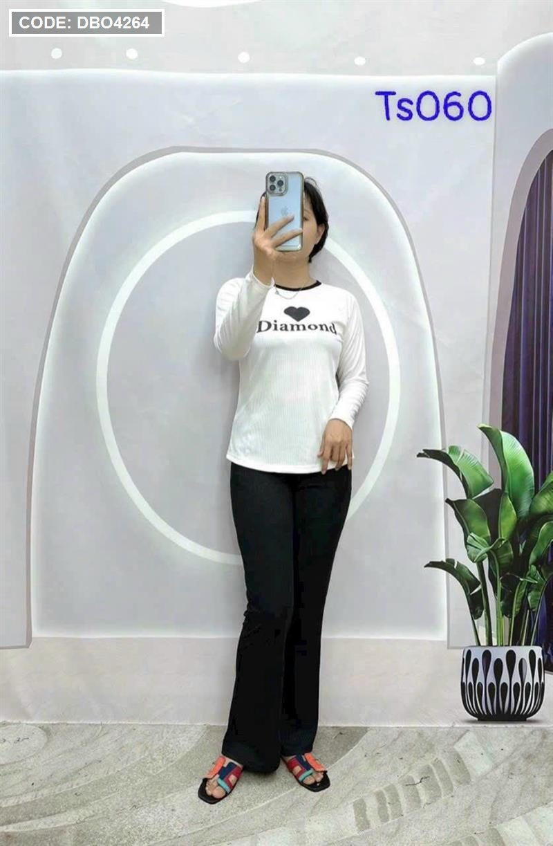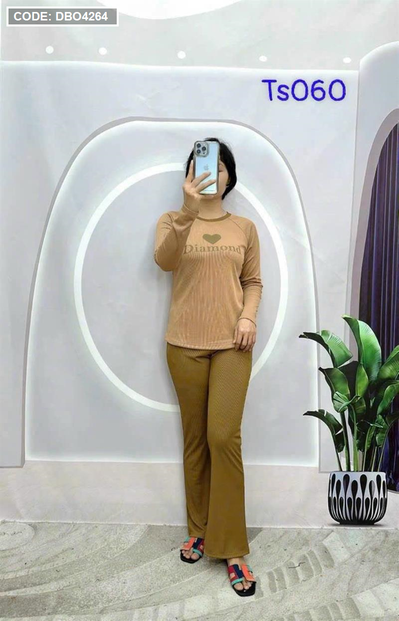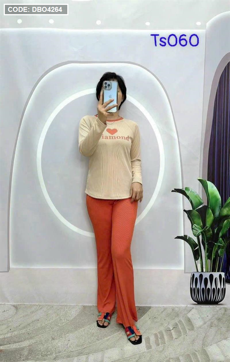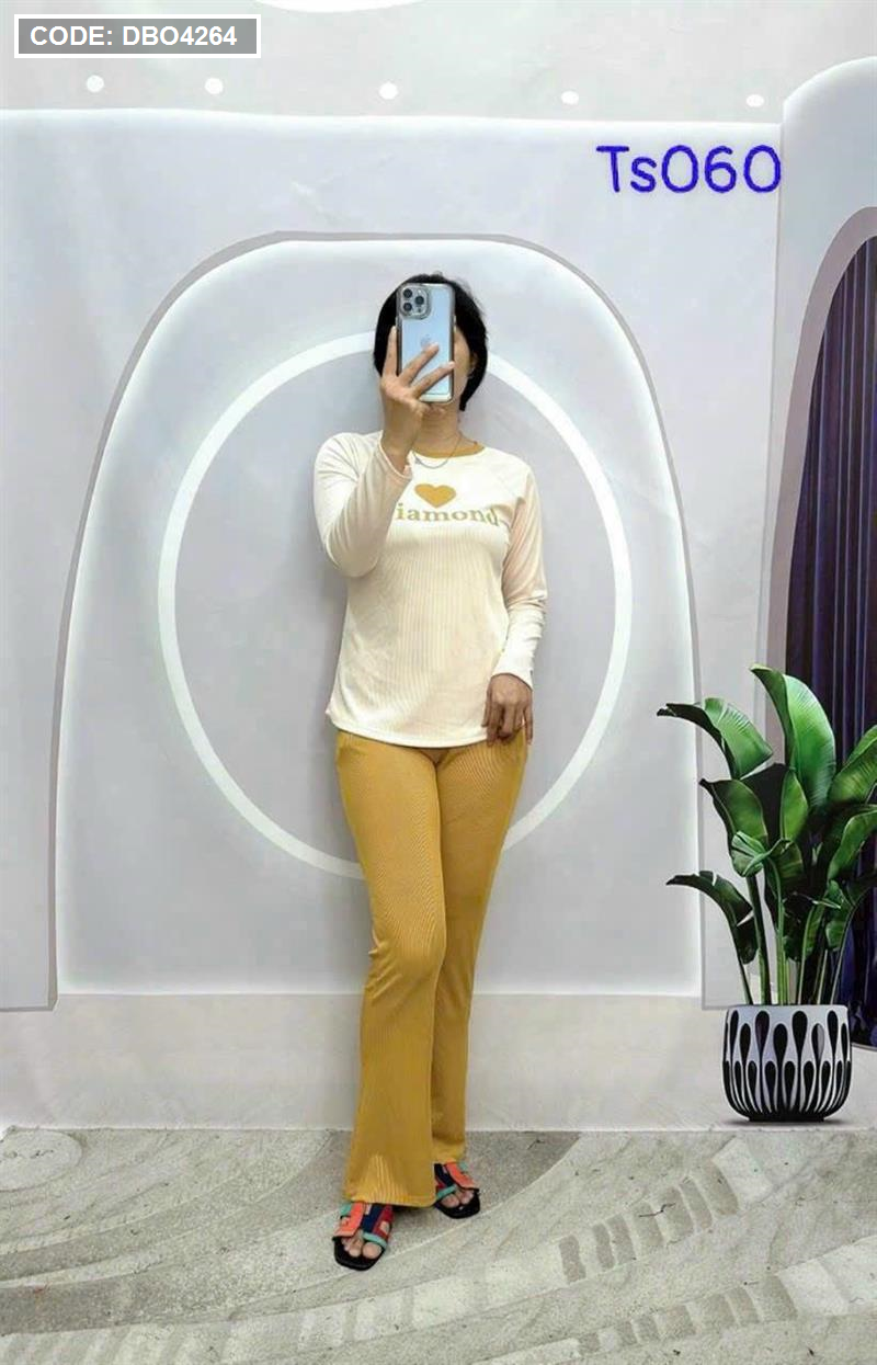 Kho sỉ đồ bộ quần dài áo tay dài in hình trái tim trước ngực