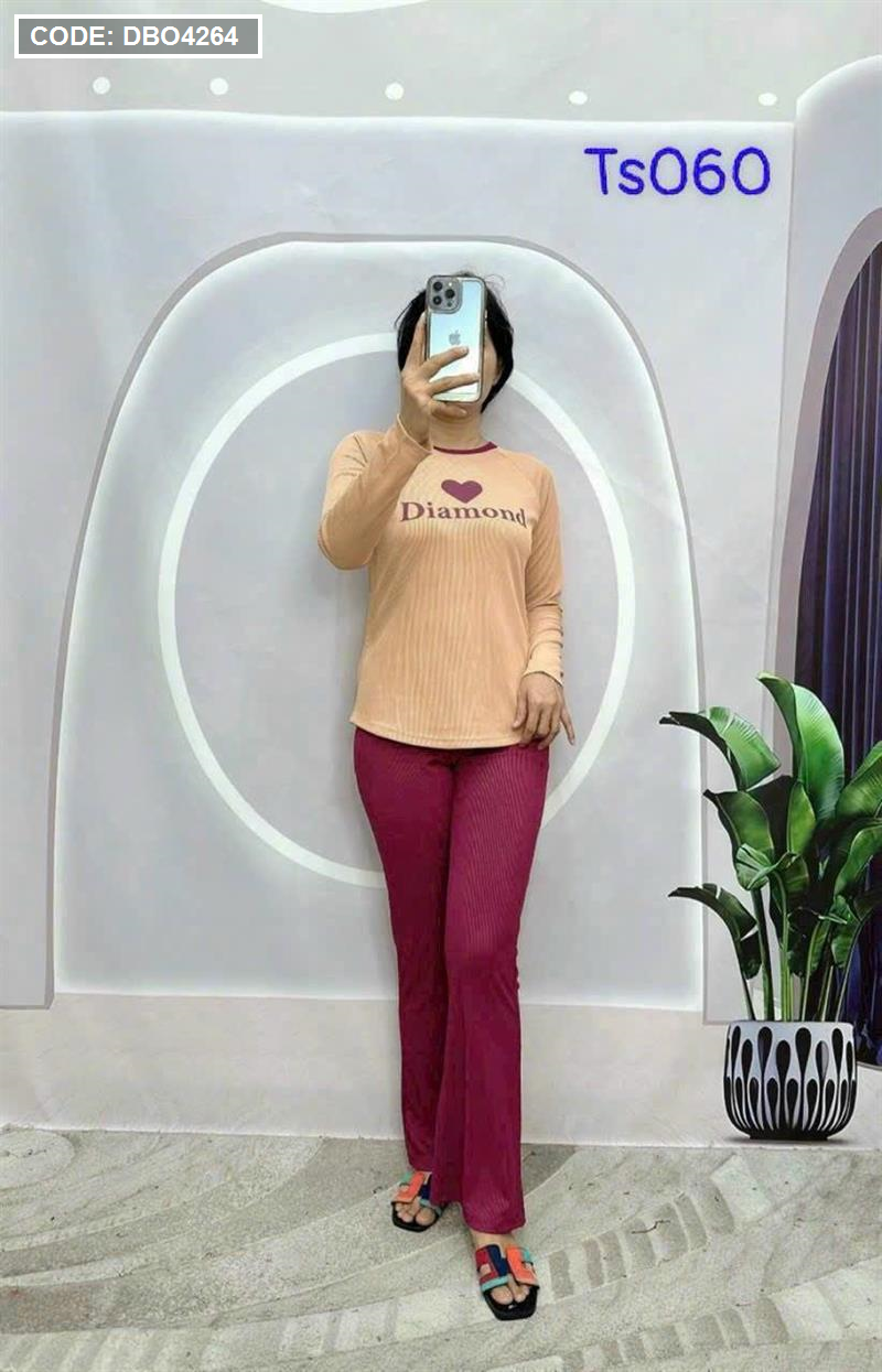 Đồ bộ quần dài áo tay dài in hình trái tim trước ngực