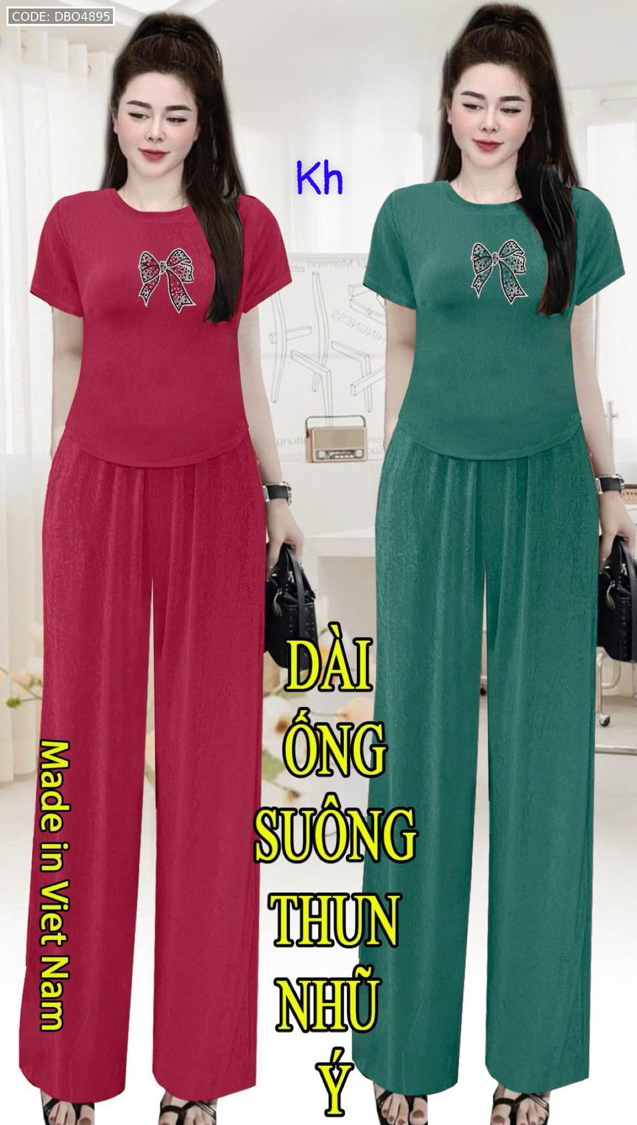 Kho sỉ đồ bộ quần dài áo tay ngắn in hình nơ