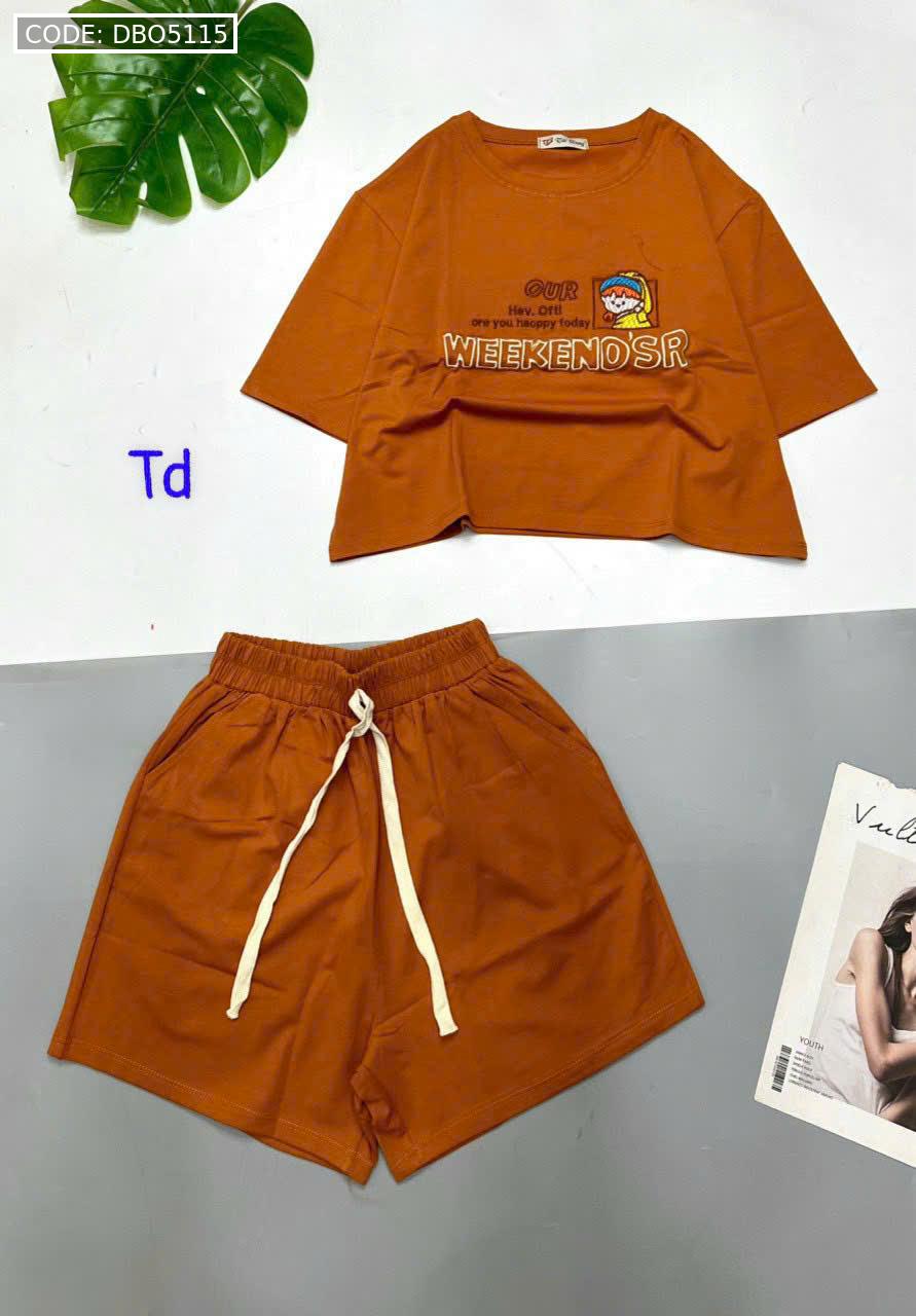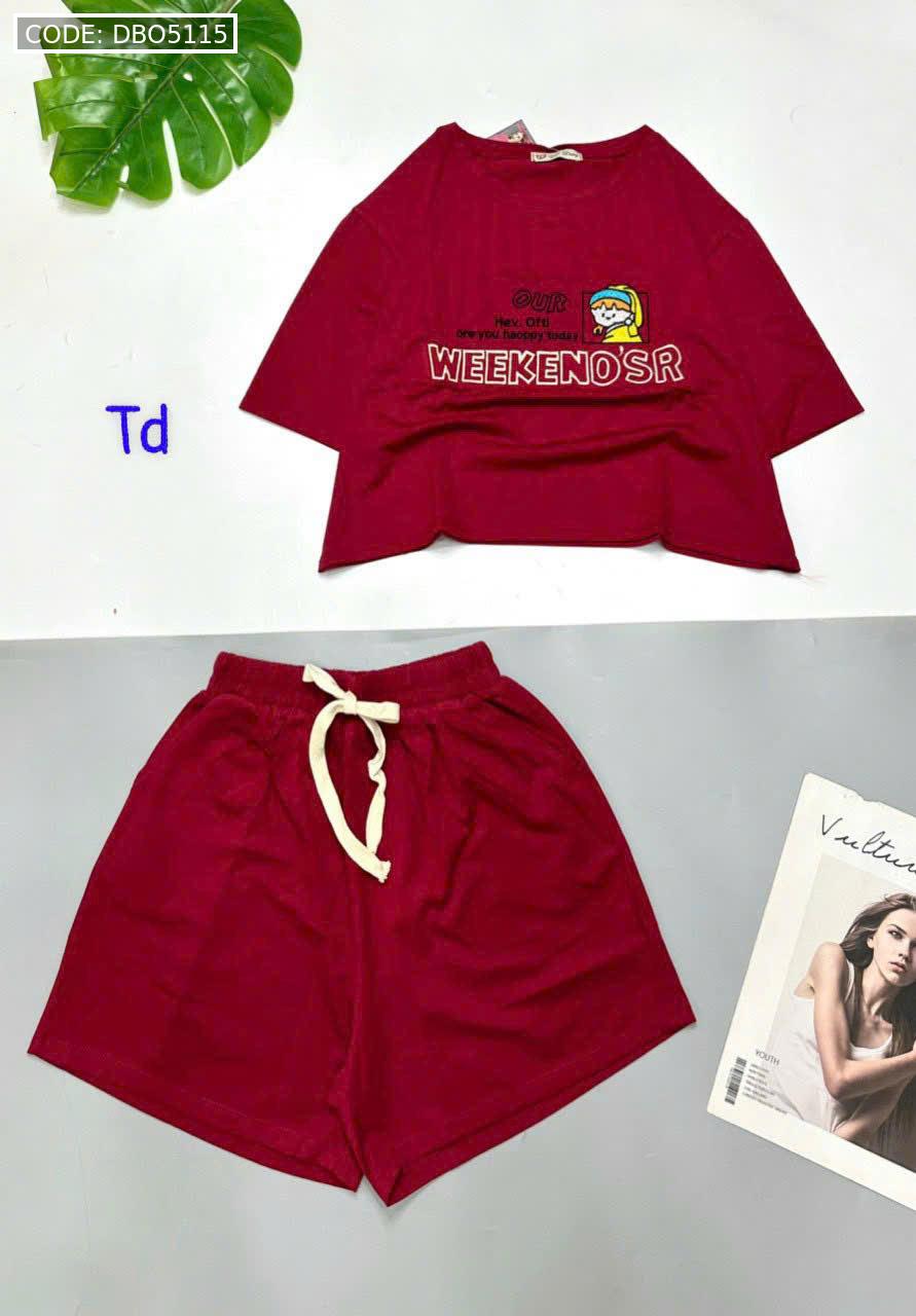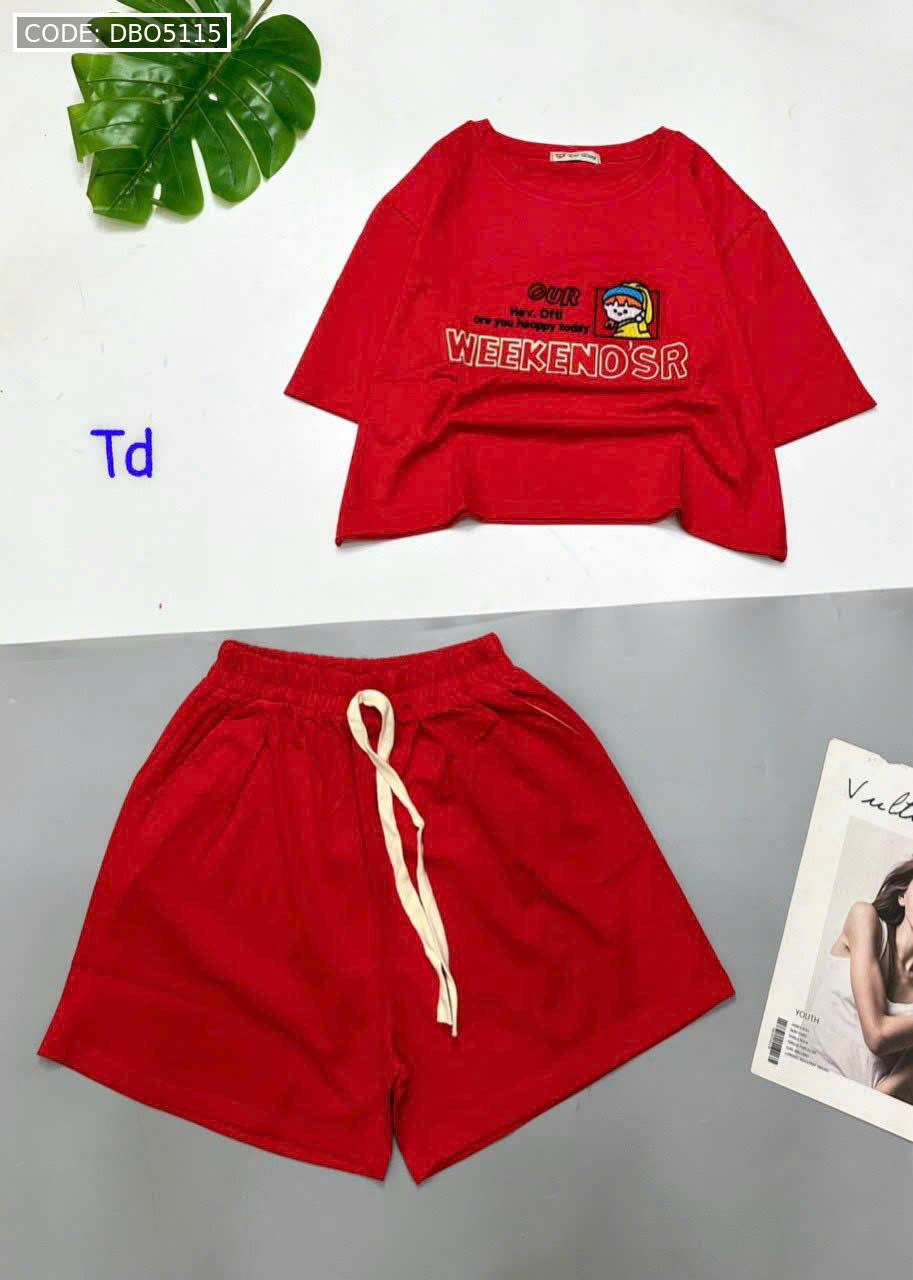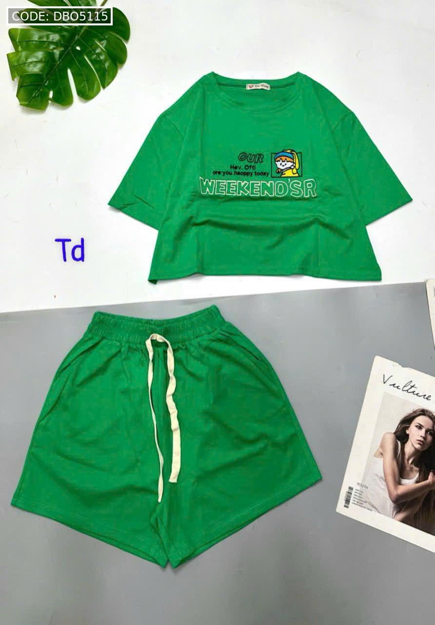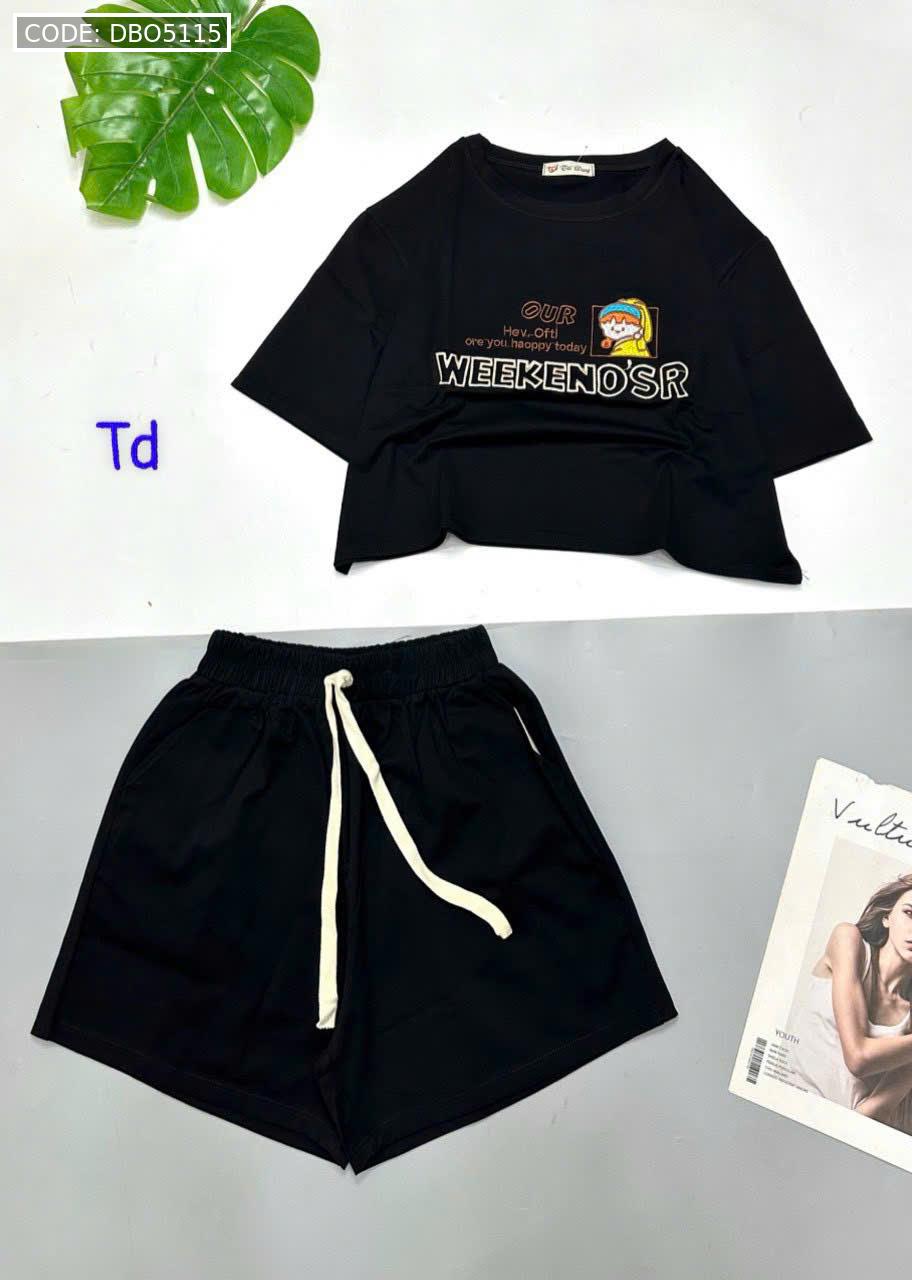 Kho sỉ đồ bộ quần đùi áo crop top tay ngắn in chữ dây quần cột