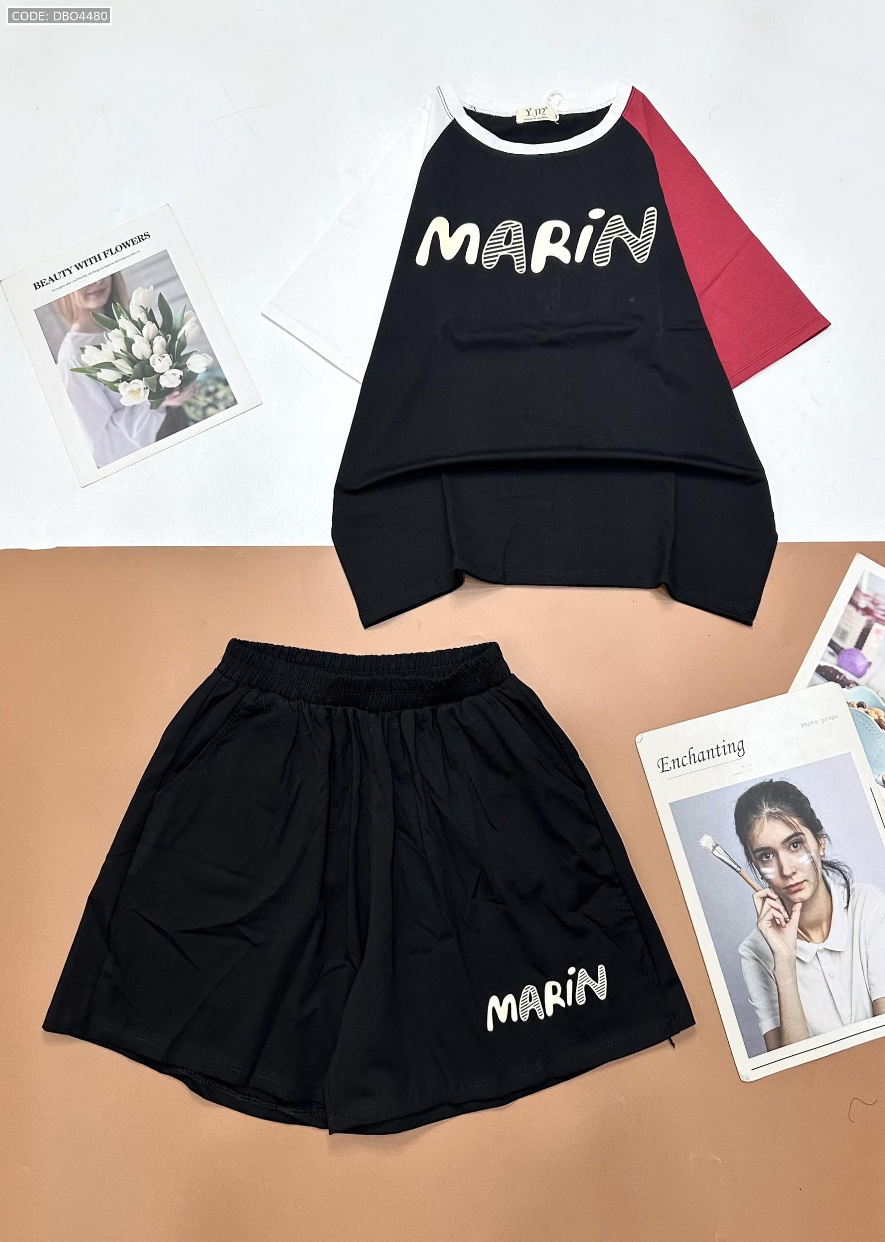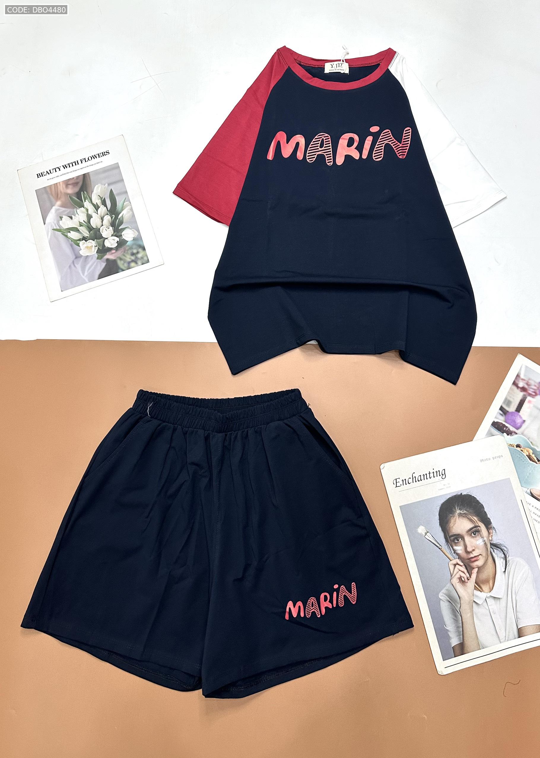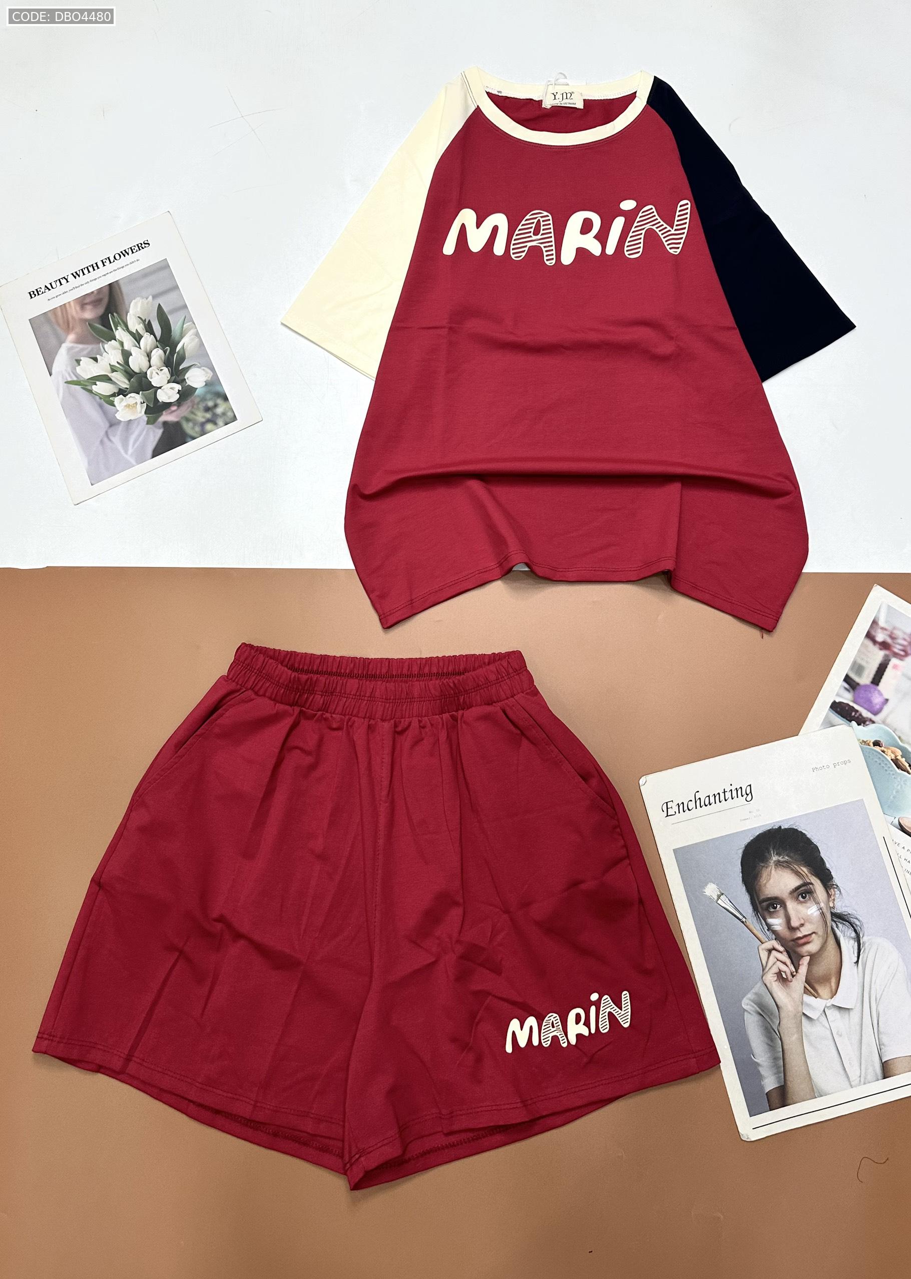 Kho sỉ đồ bộ quần đùi áo tay ngắn in chữ MARIN