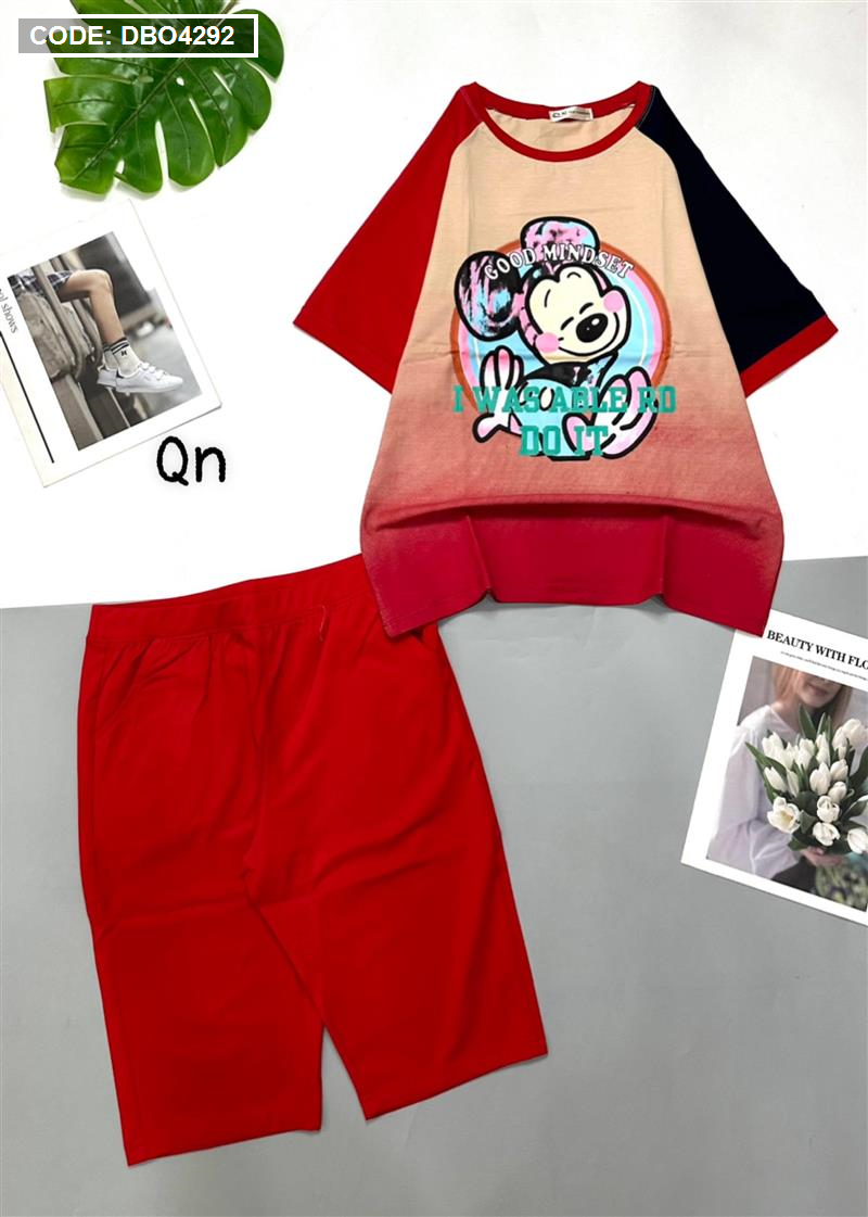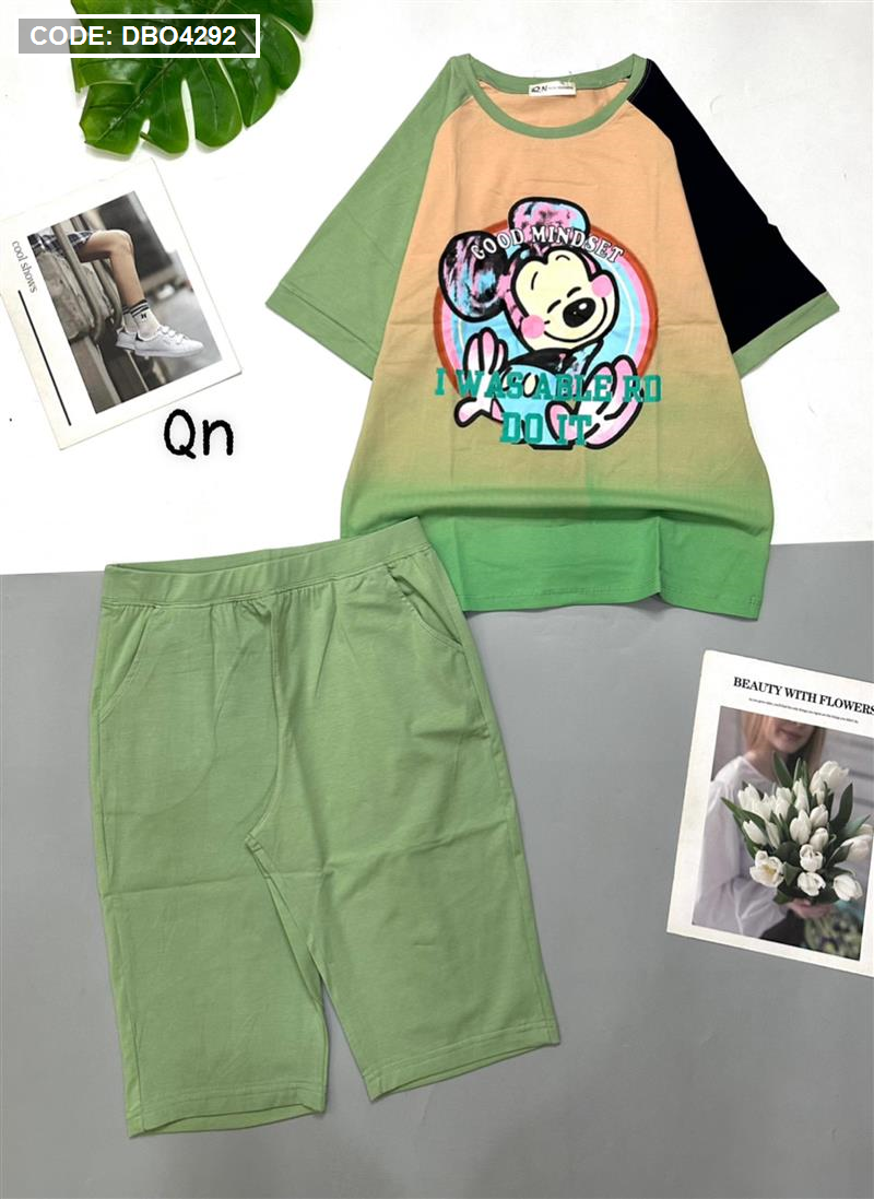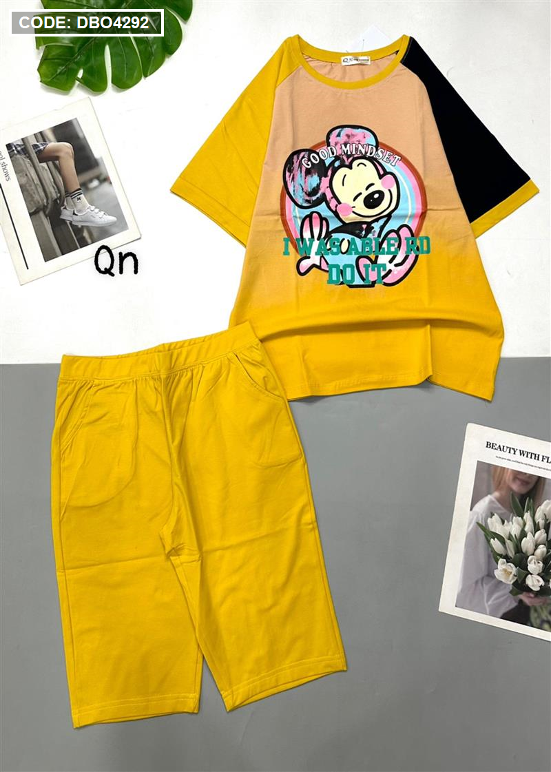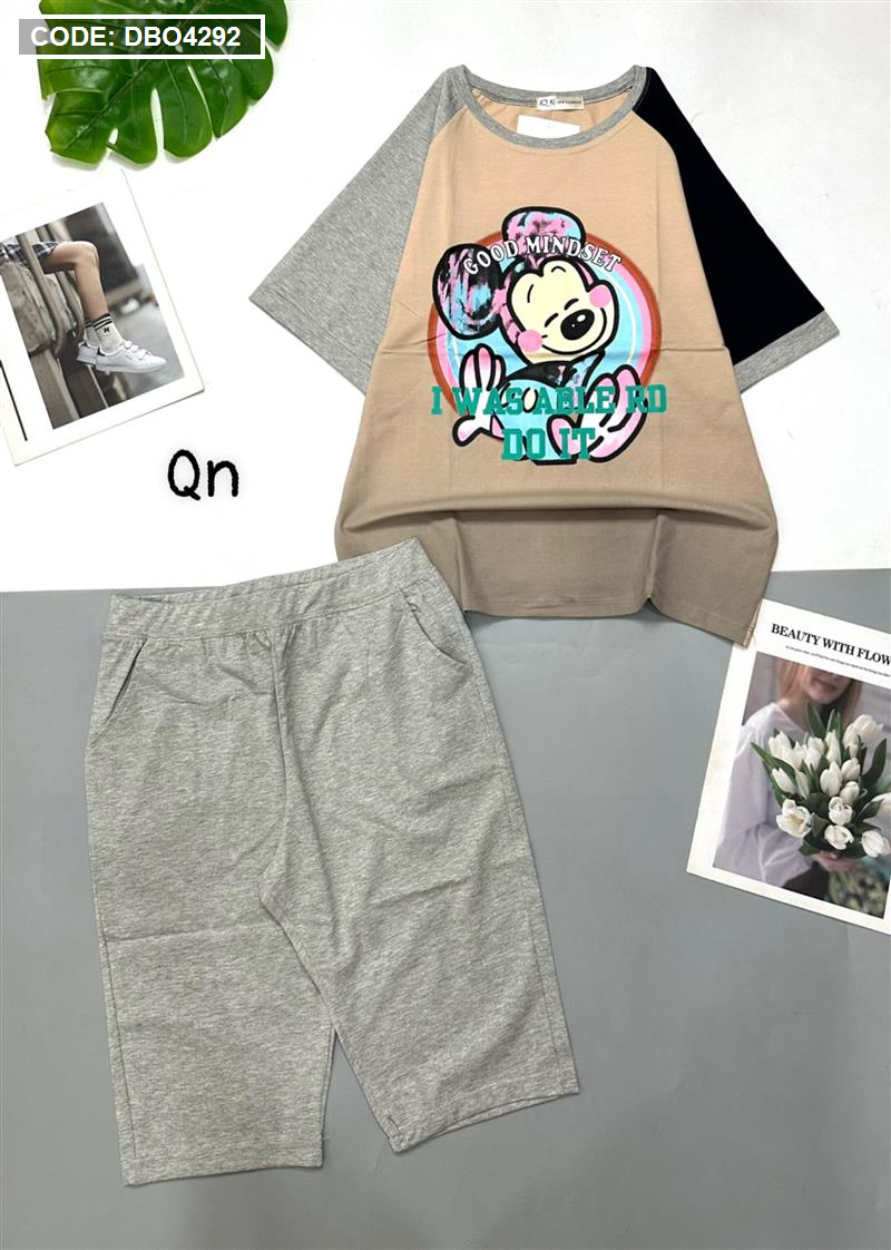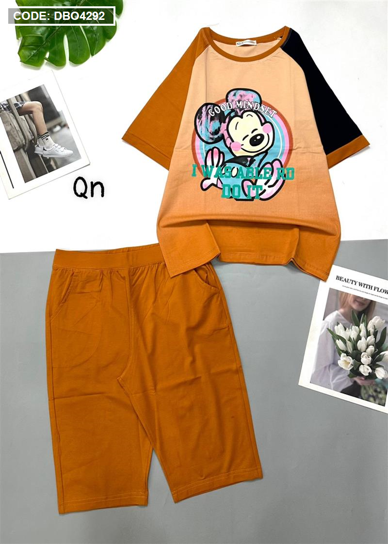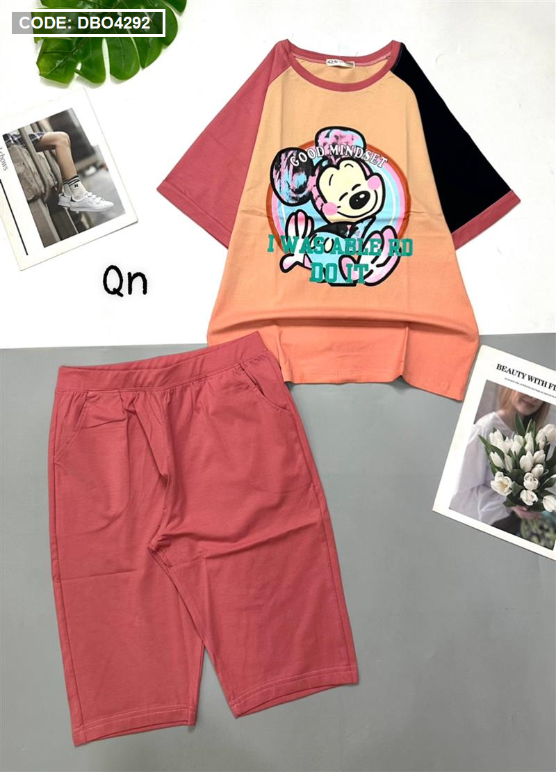 Kho sỉ đồ bộ quần lửng áo tay ngắn cổ tròn in hình mickey