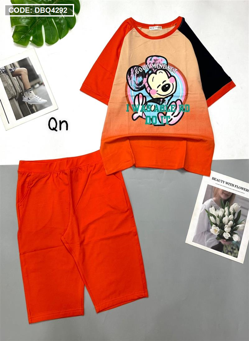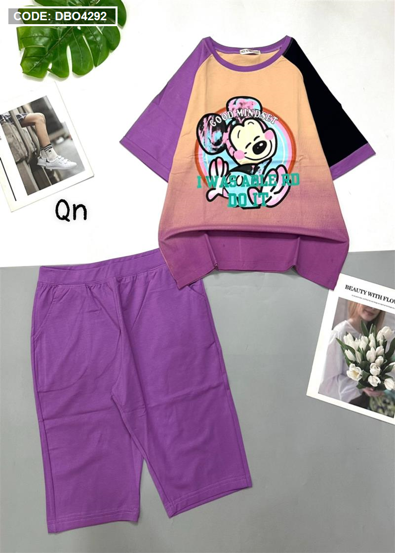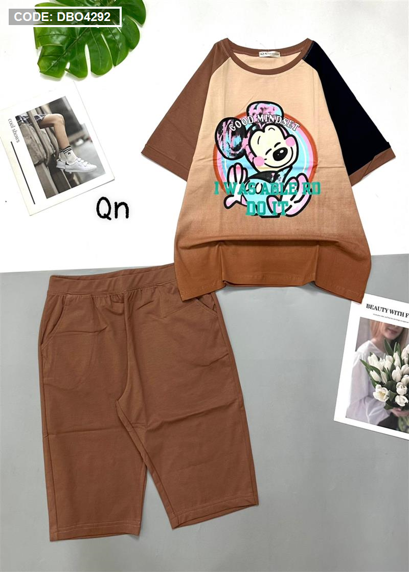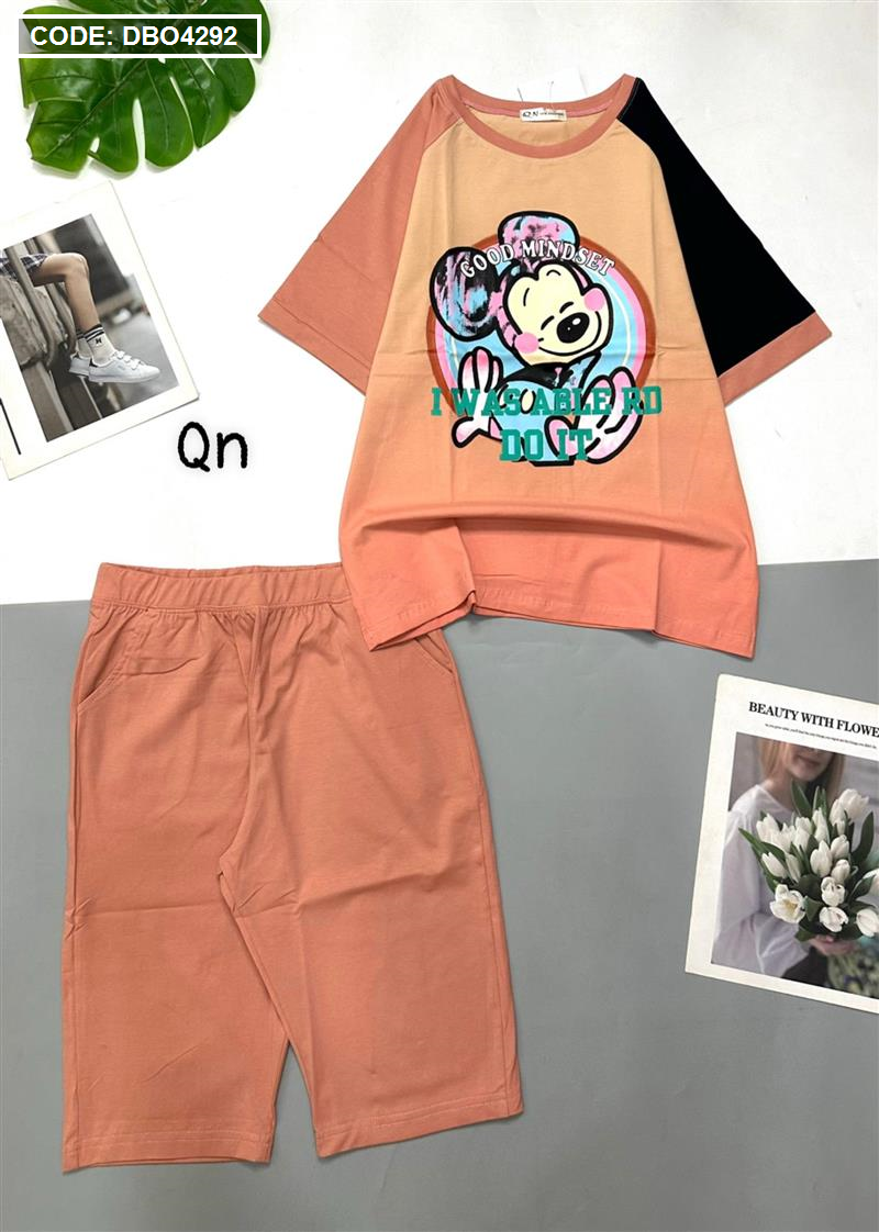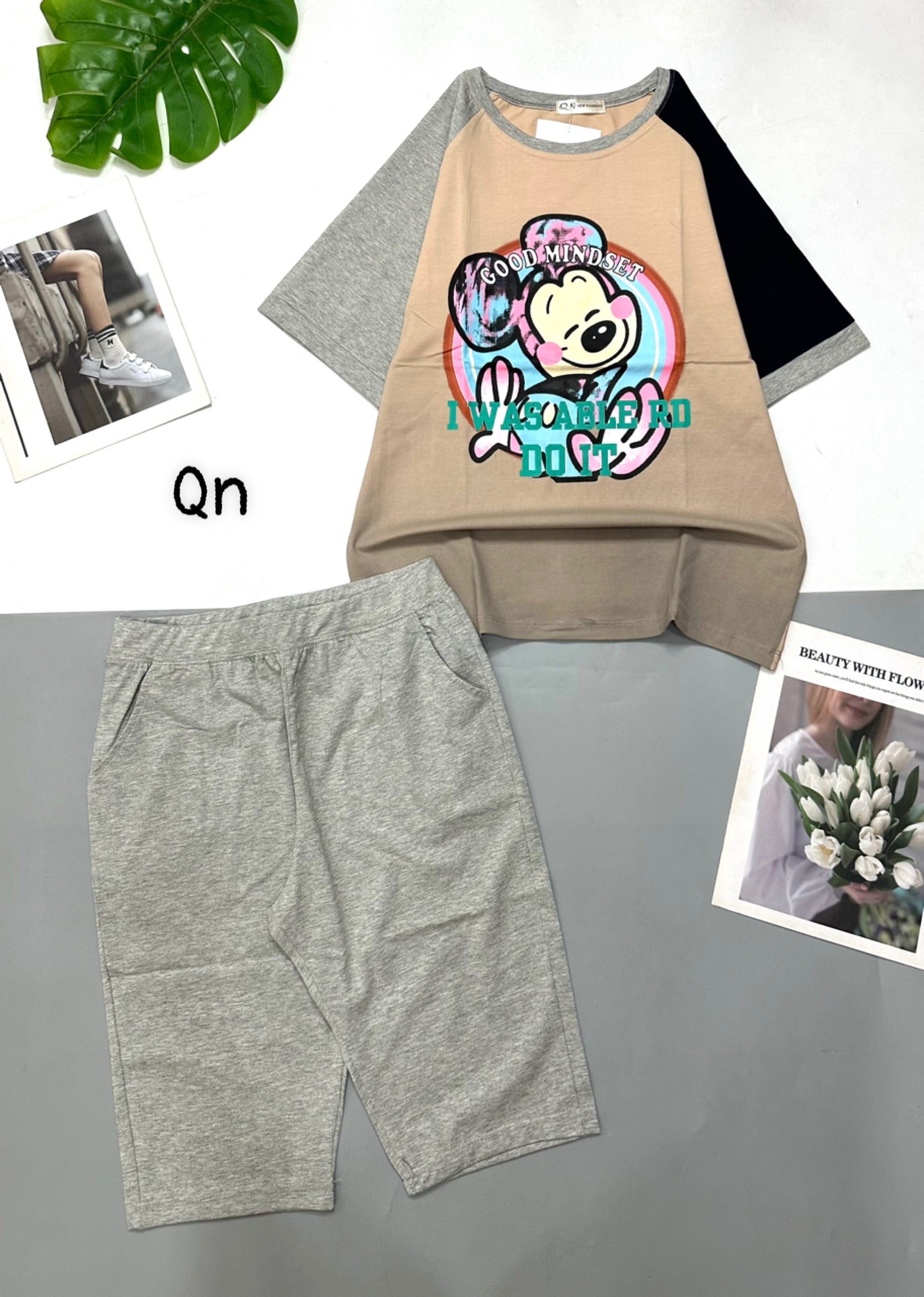 Kho sỉ đồ bộ quần lửng áo tay ngắn cổ tròn in hình mickey