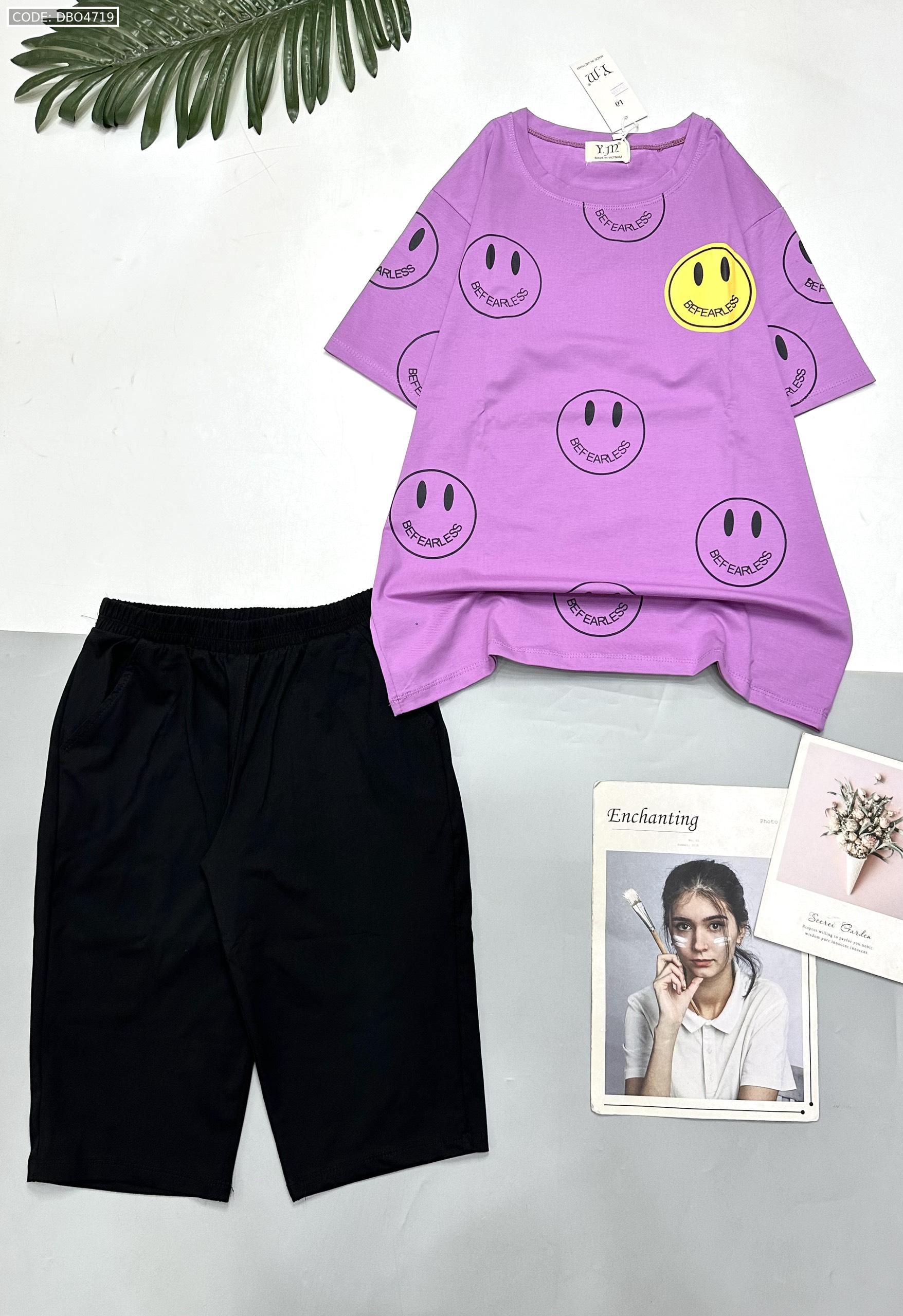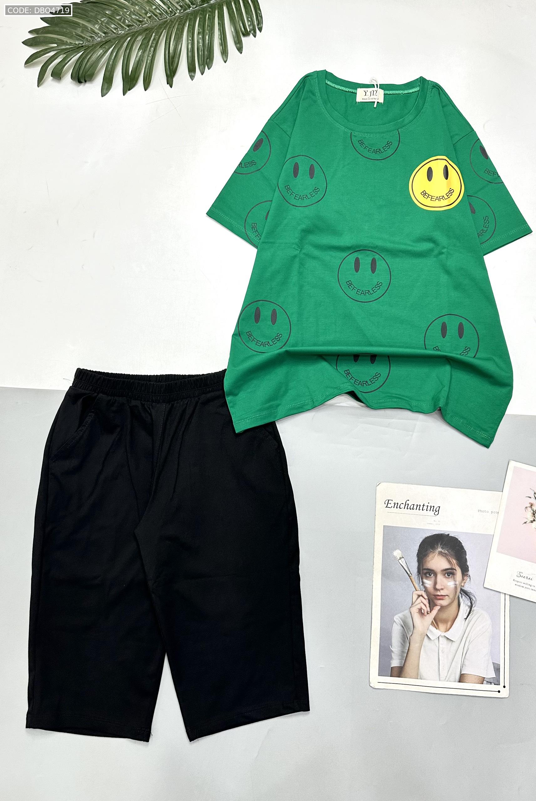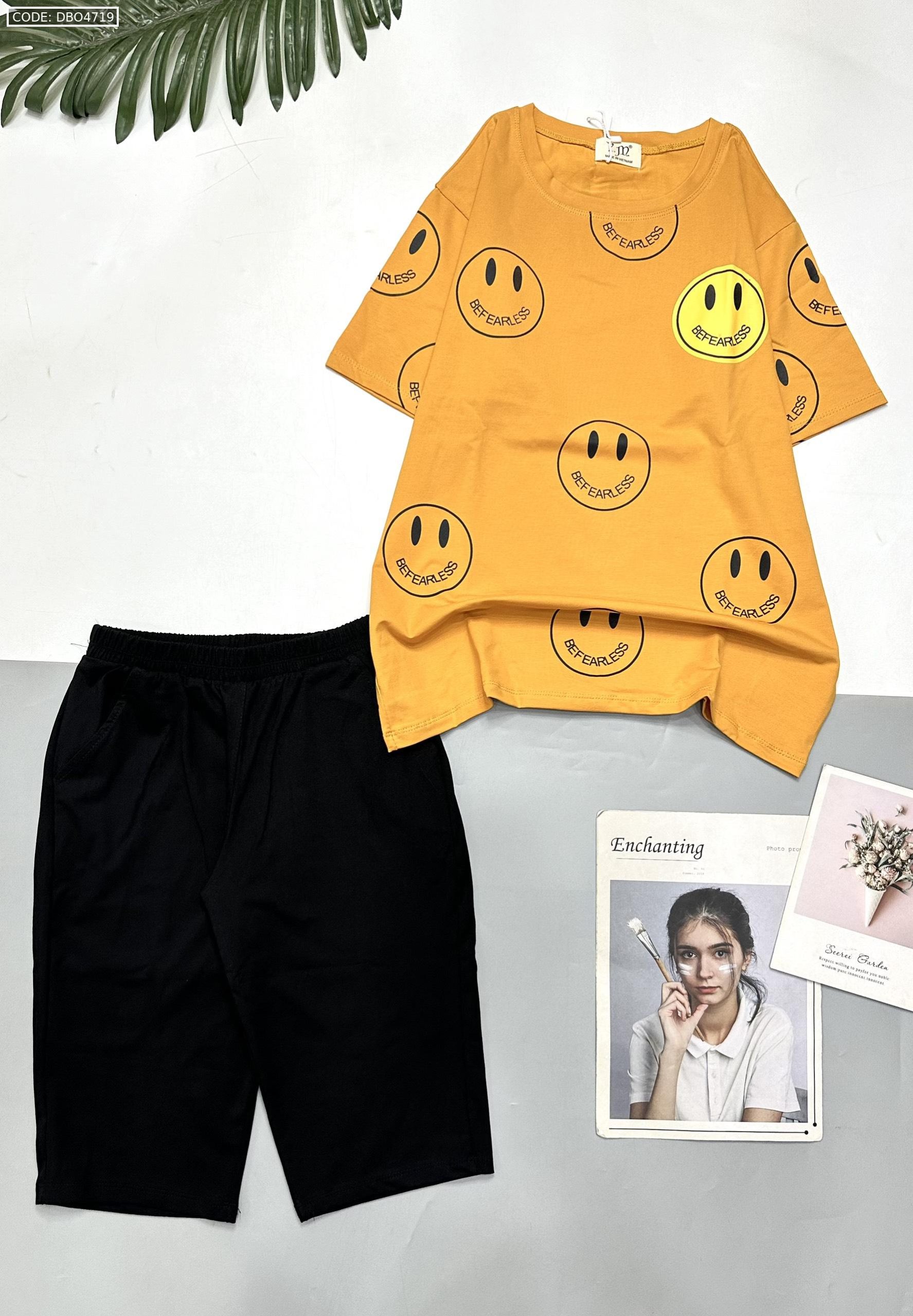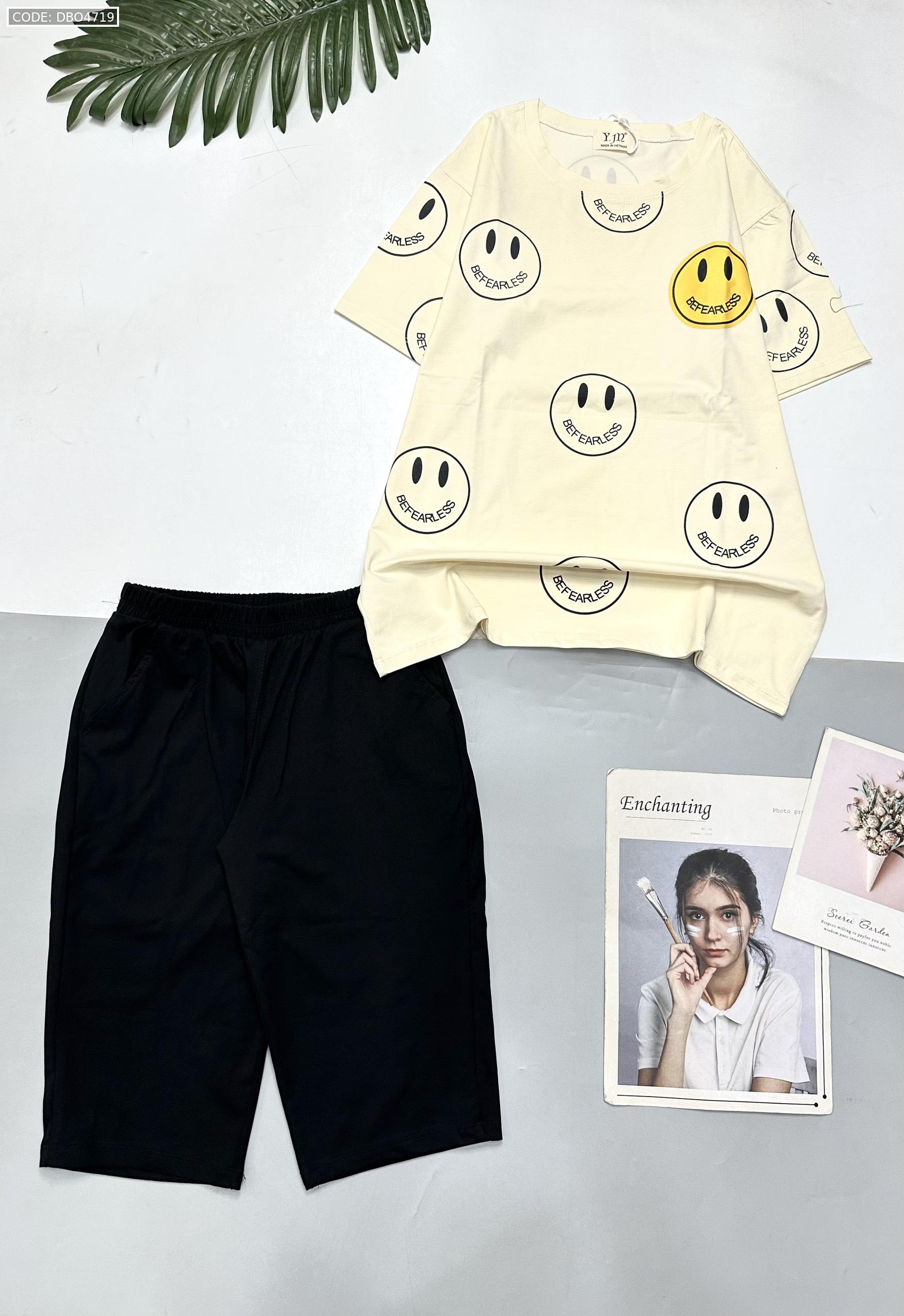 Kho sỉ đồ bộ quần lửng đen áo tay ngắn in nhiều mặt cười