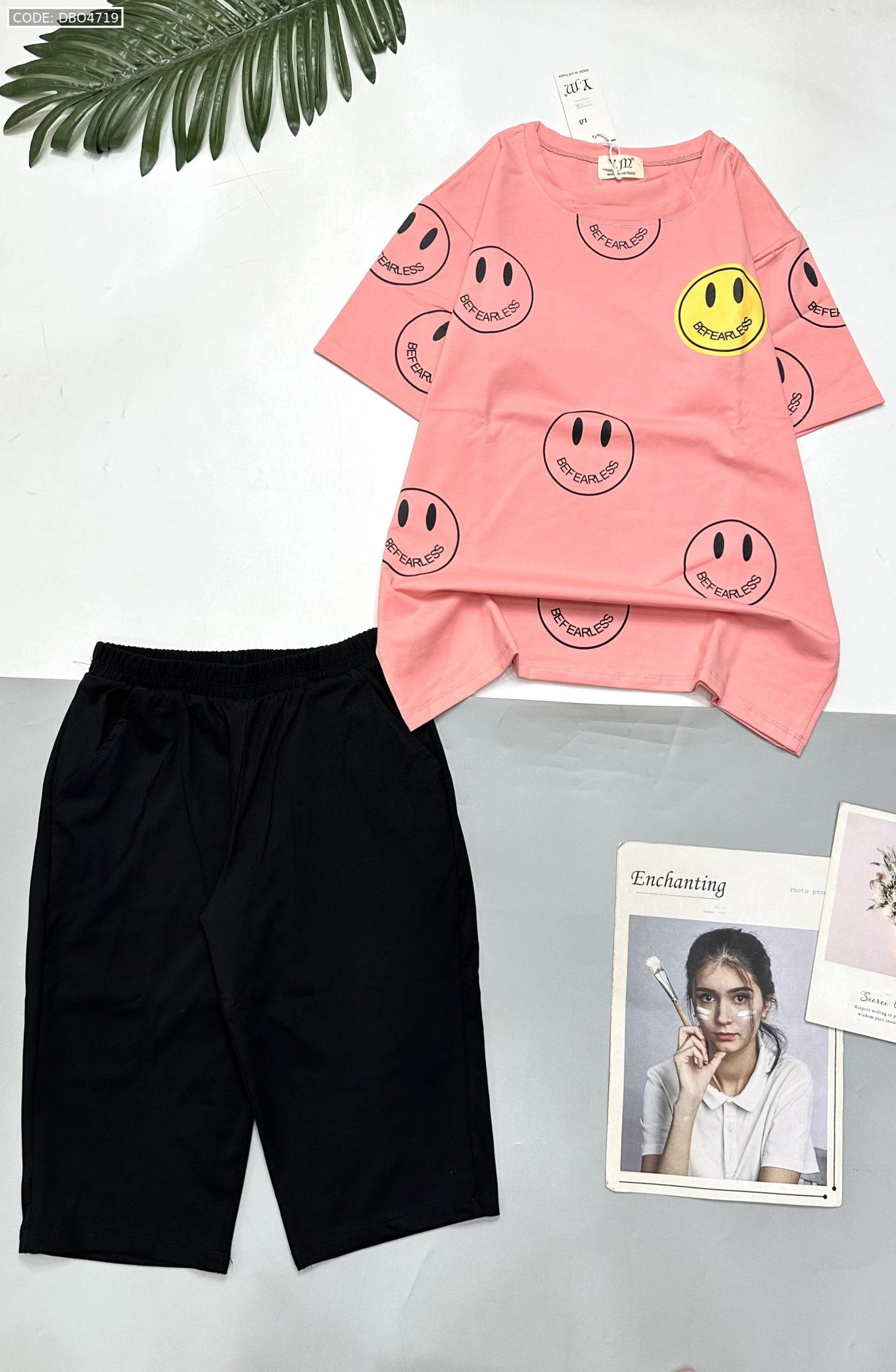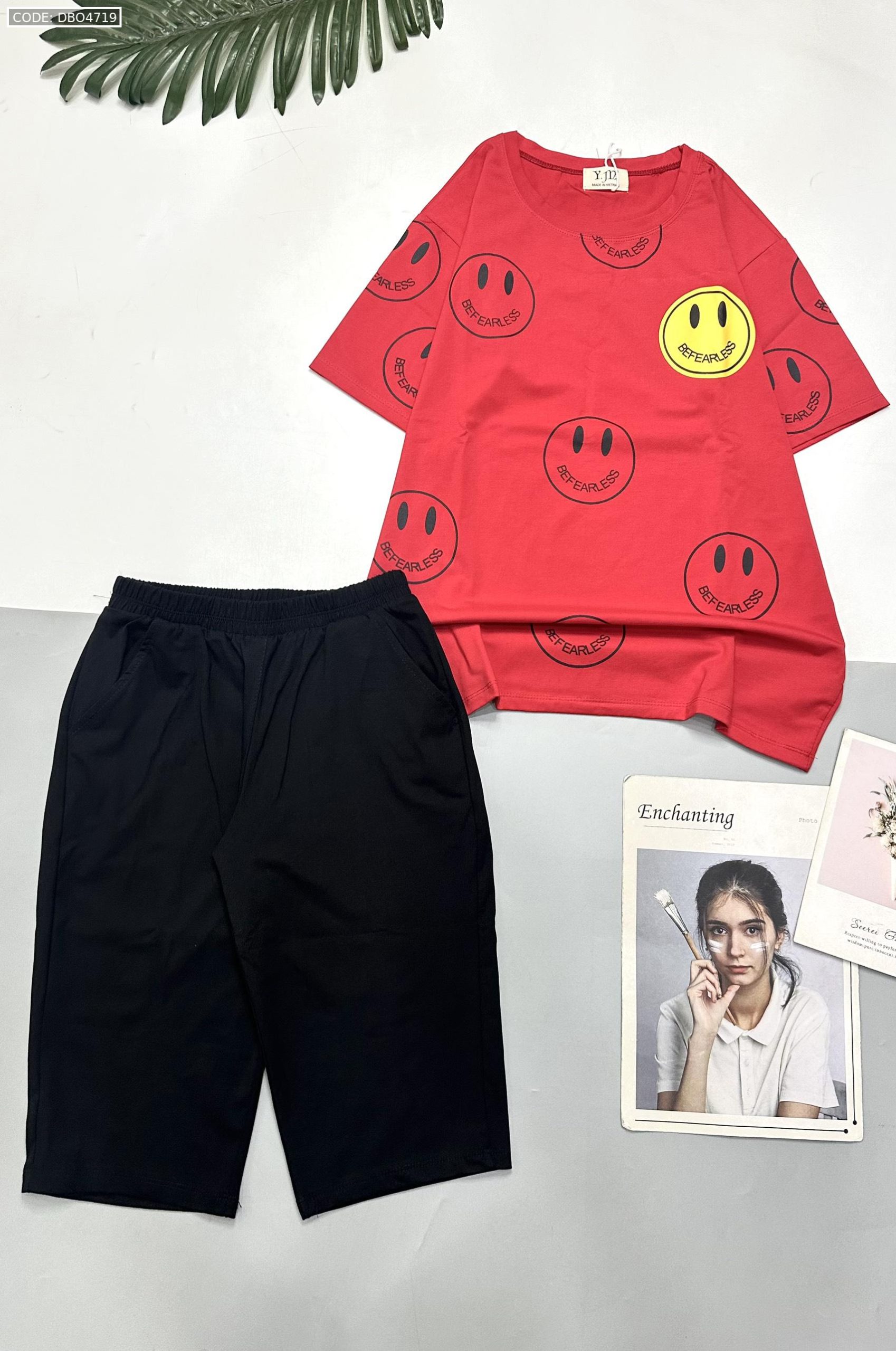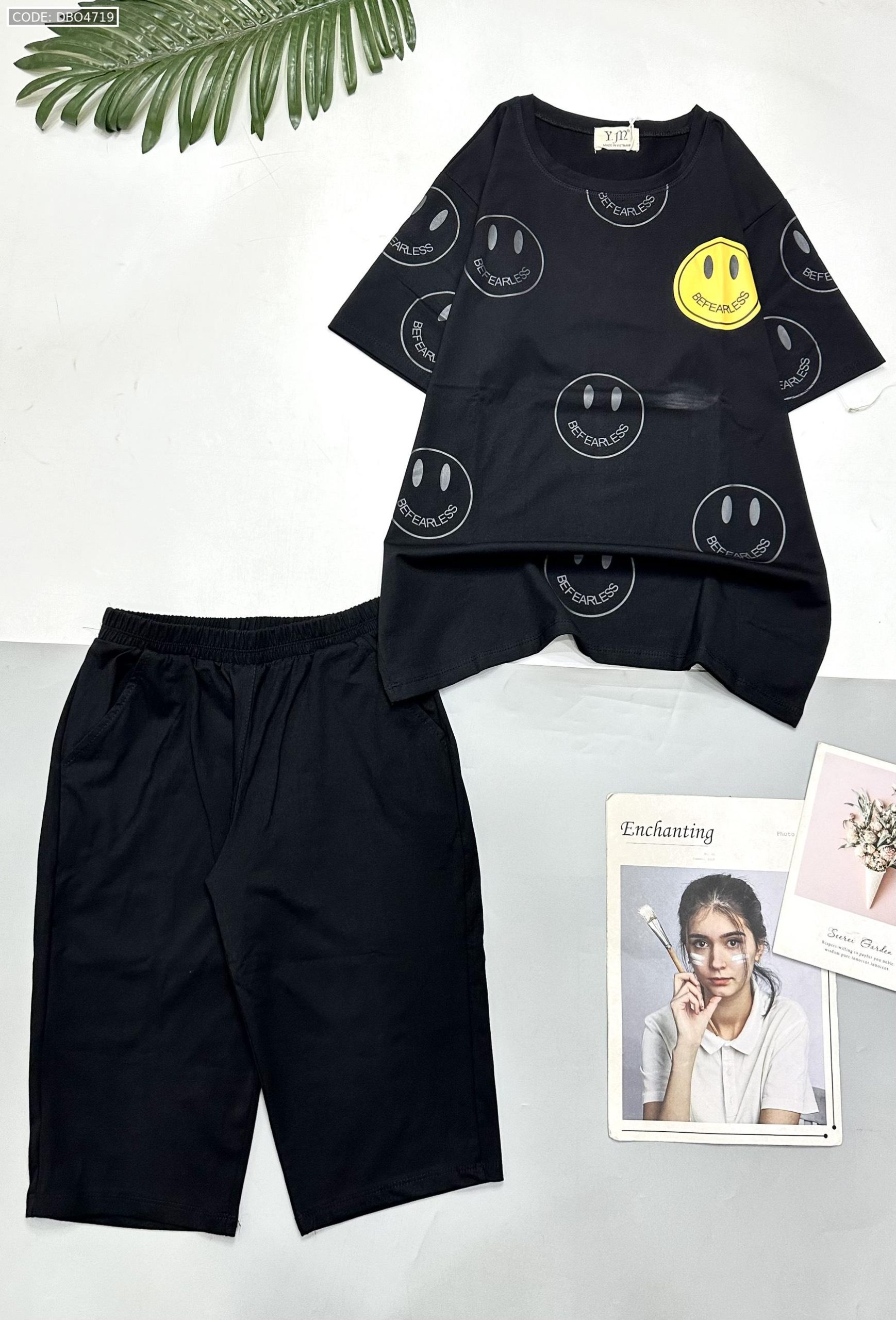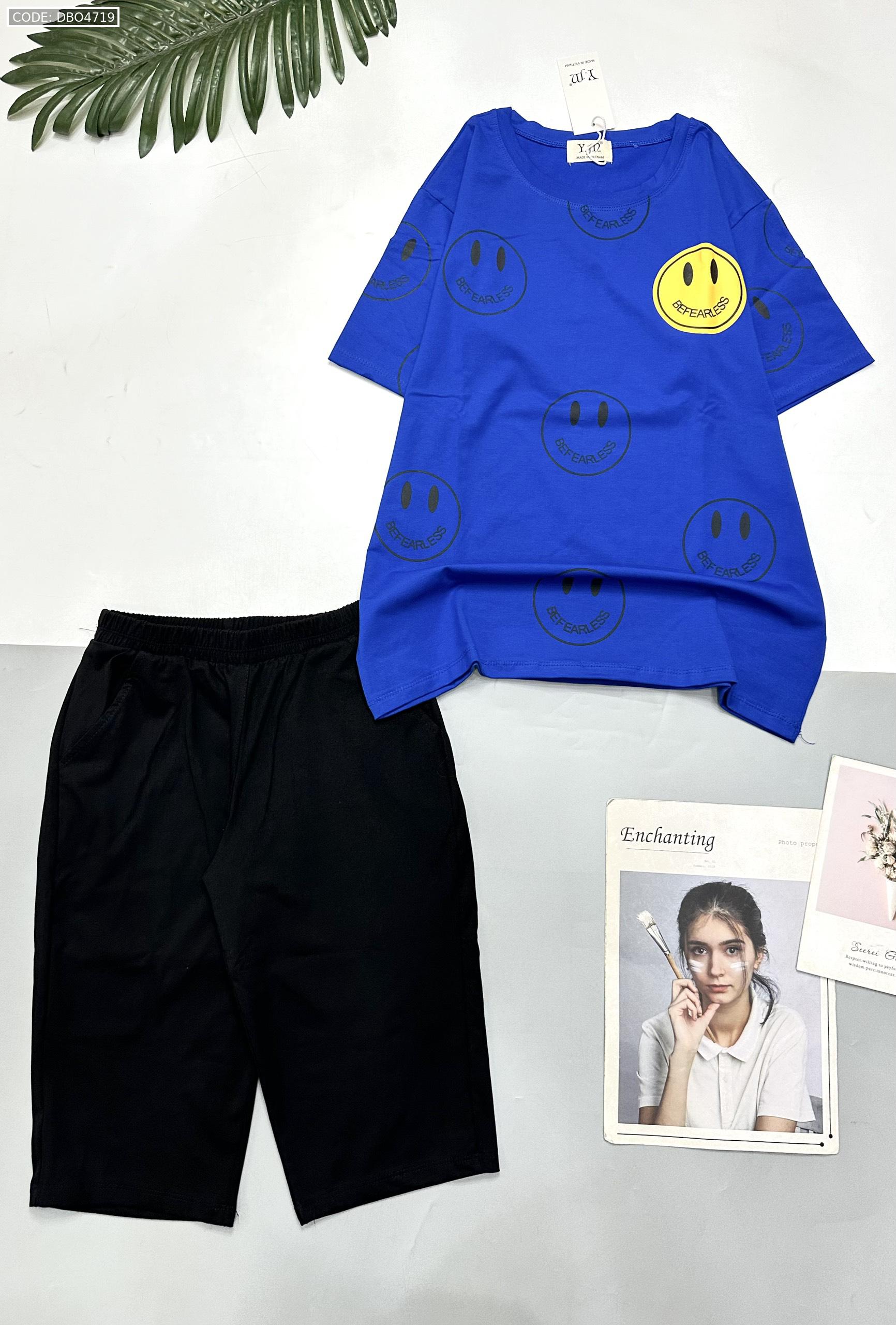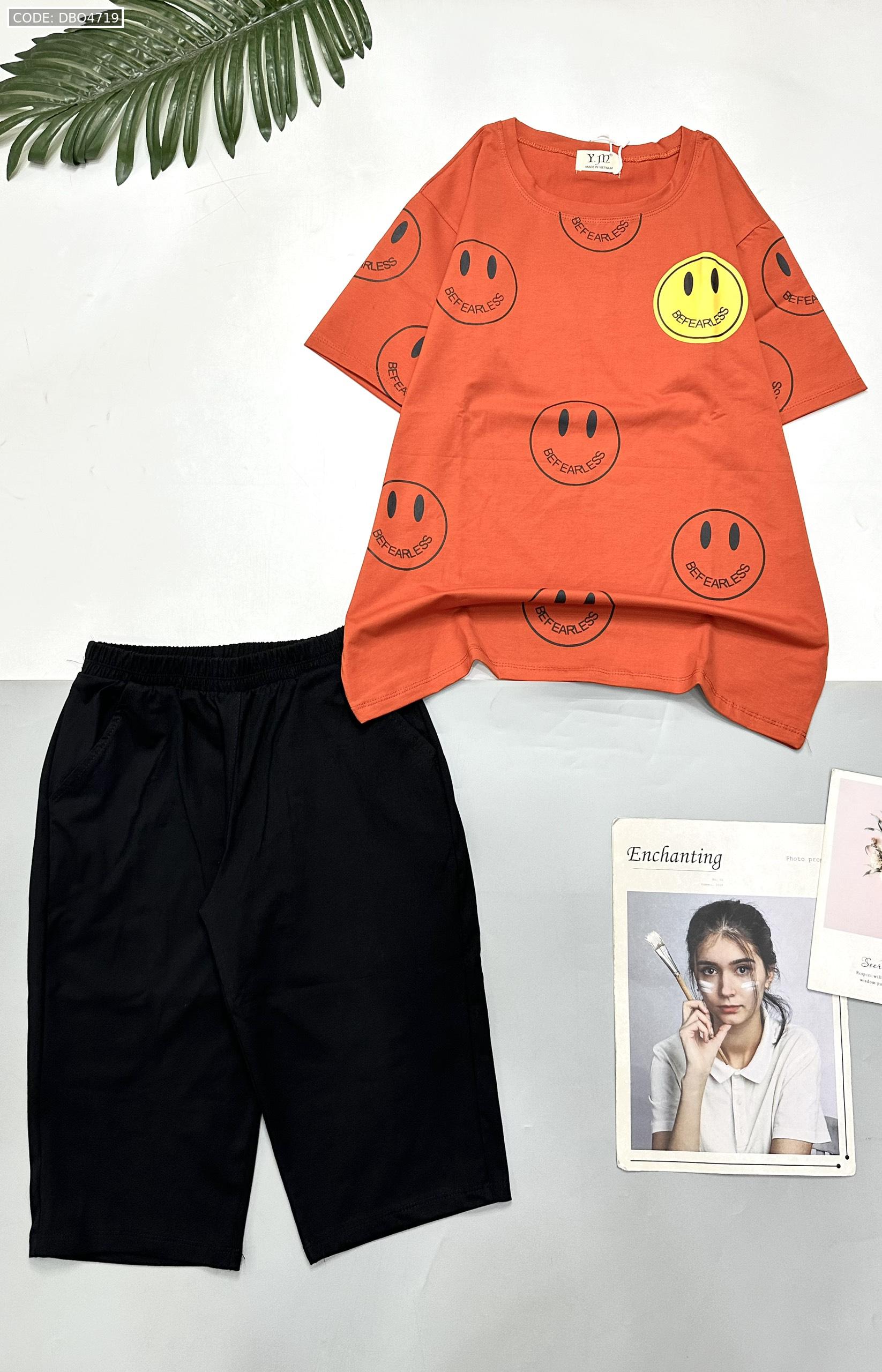 Kho sỉ đồ bộ quần lửng đen áo tay ngắn in nhiều mặt cười