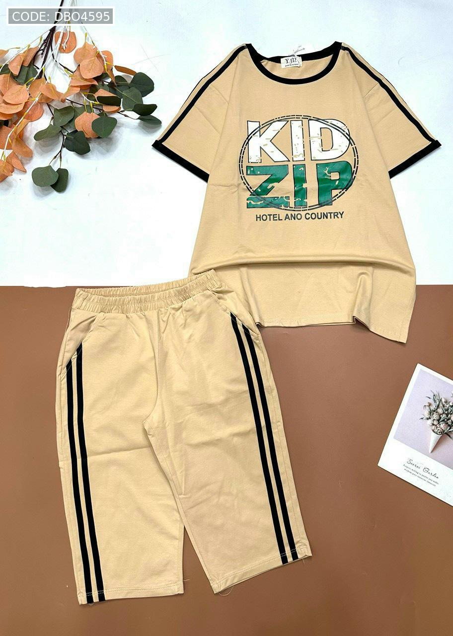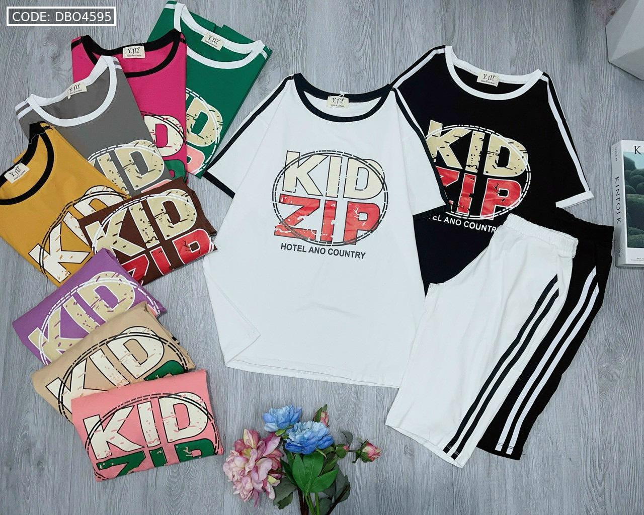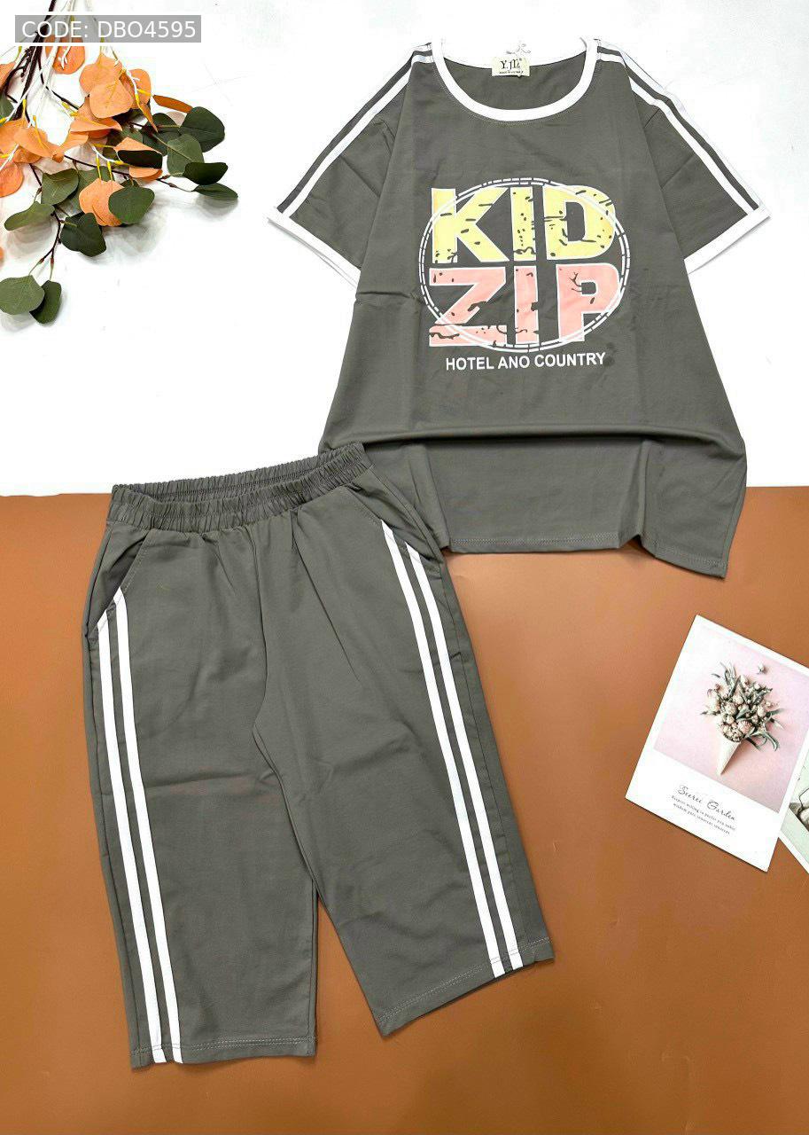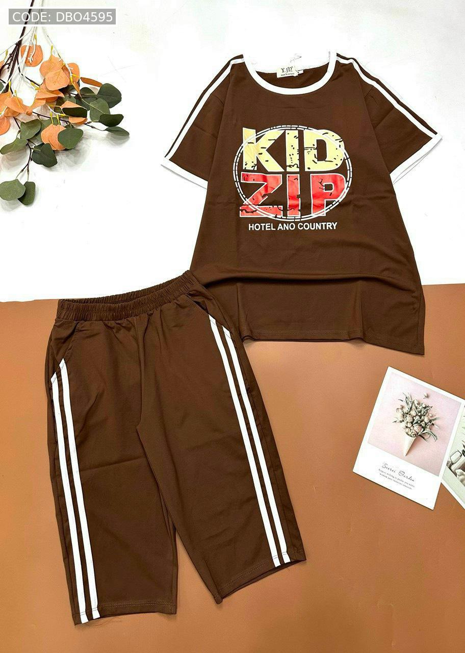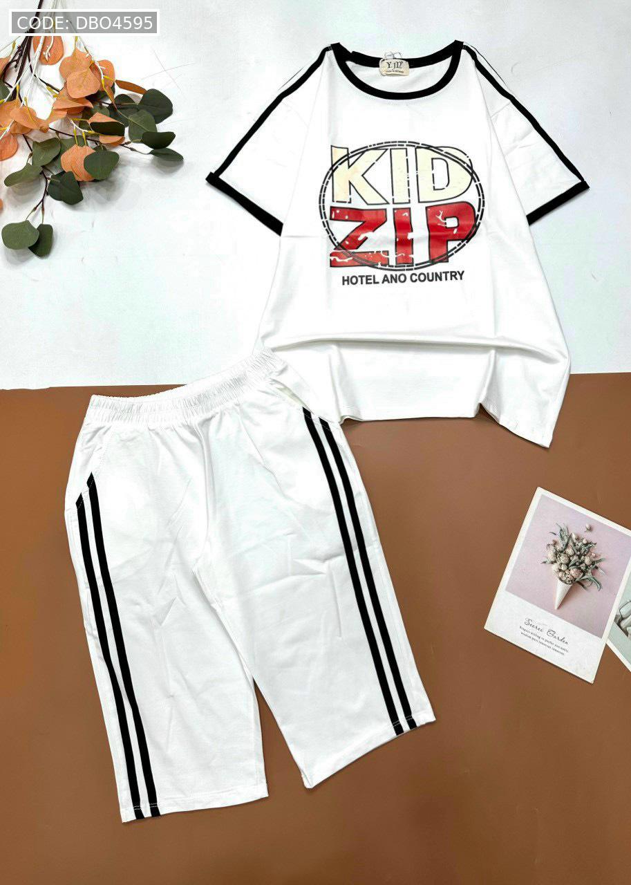 Kho sỉ đồ bộ quần lửng hai sọc áo tay ngắn in chữ KIDZIP