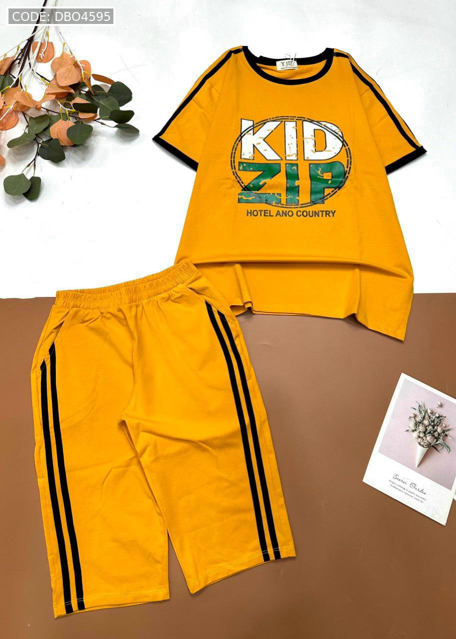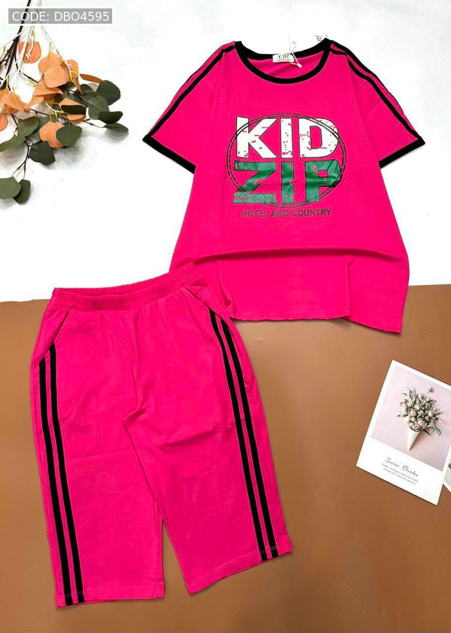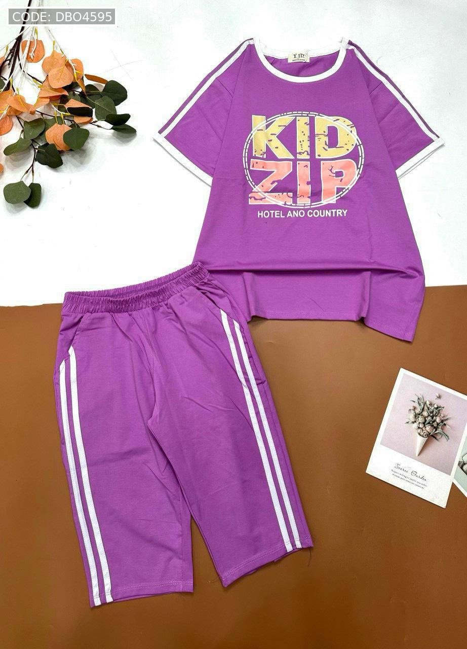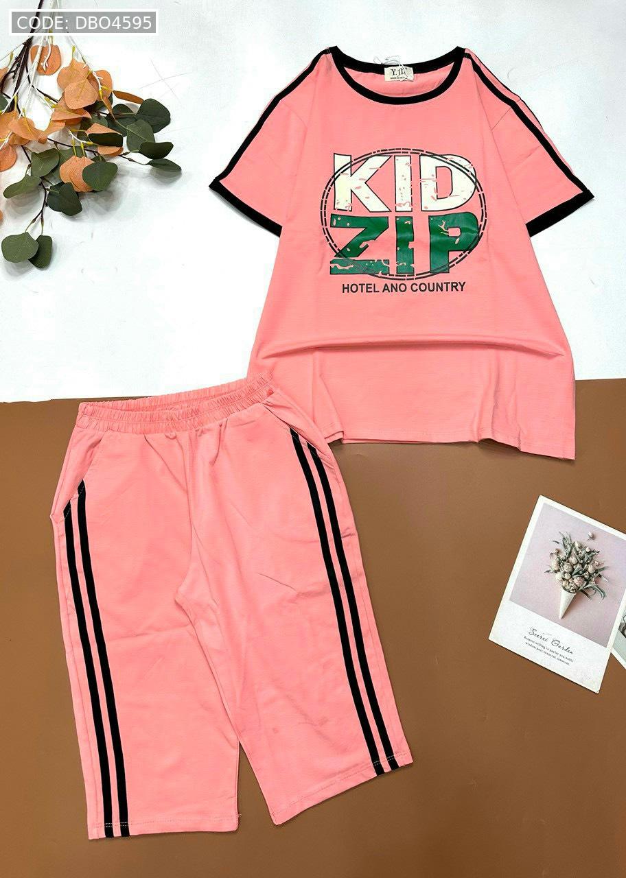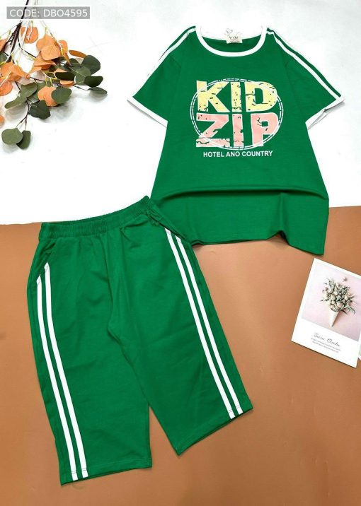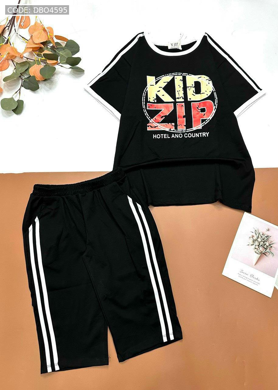 Kho sỉ đồ bộ quần lửng hai sọc áo tay ngắn in chữ KIDZIP