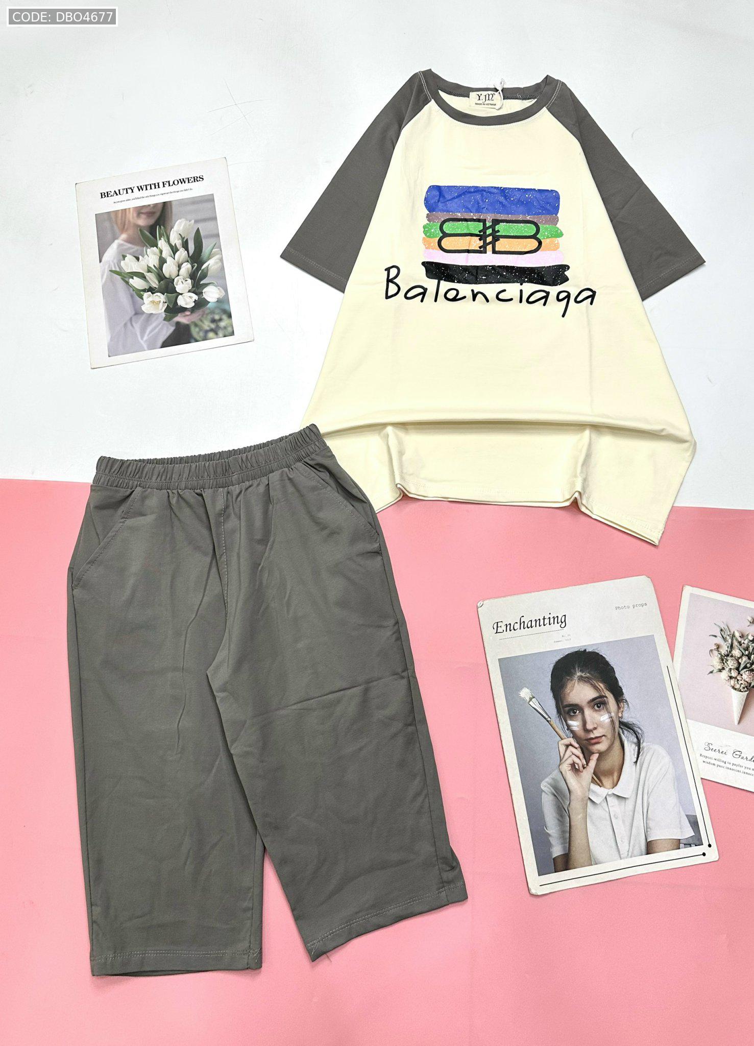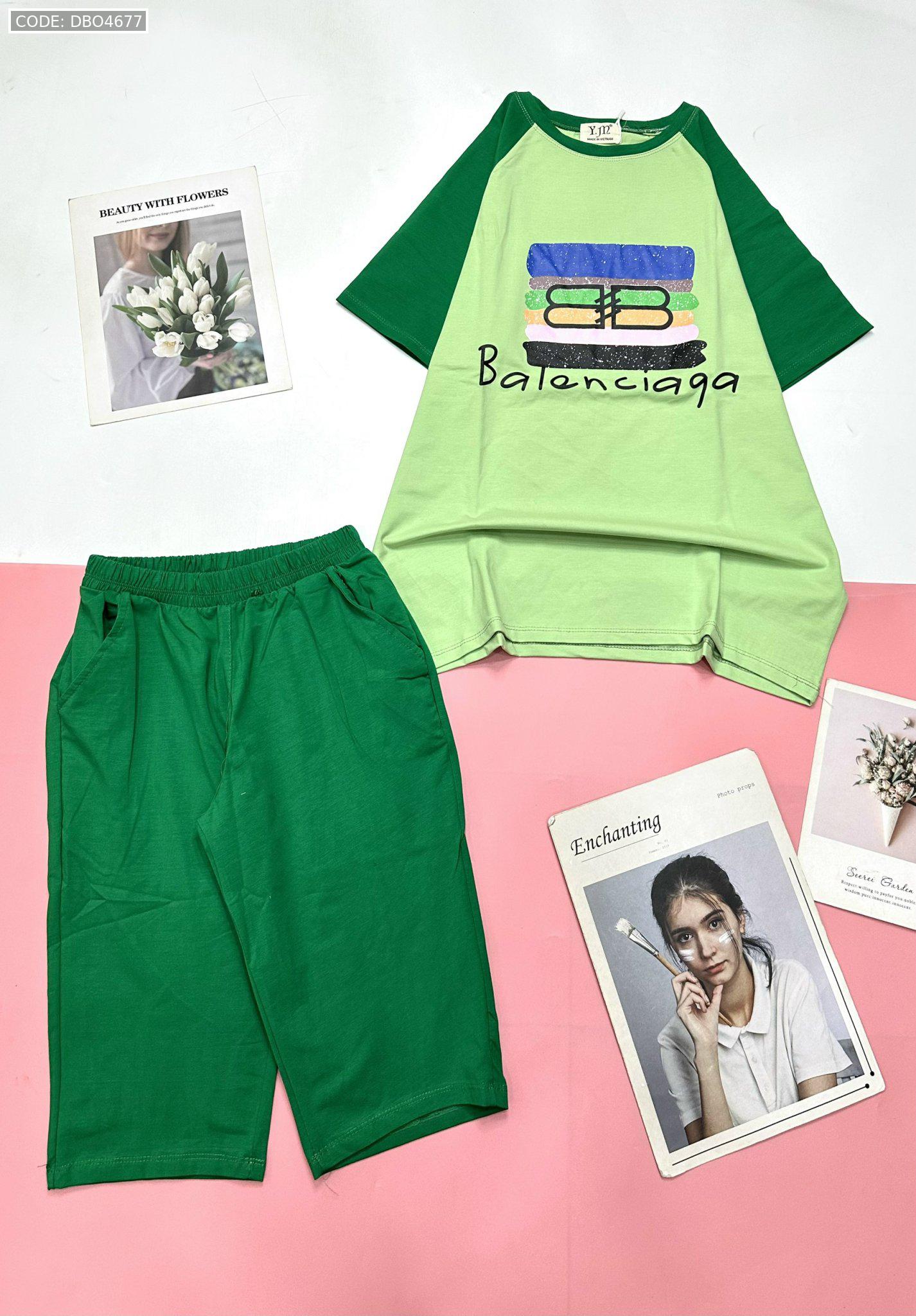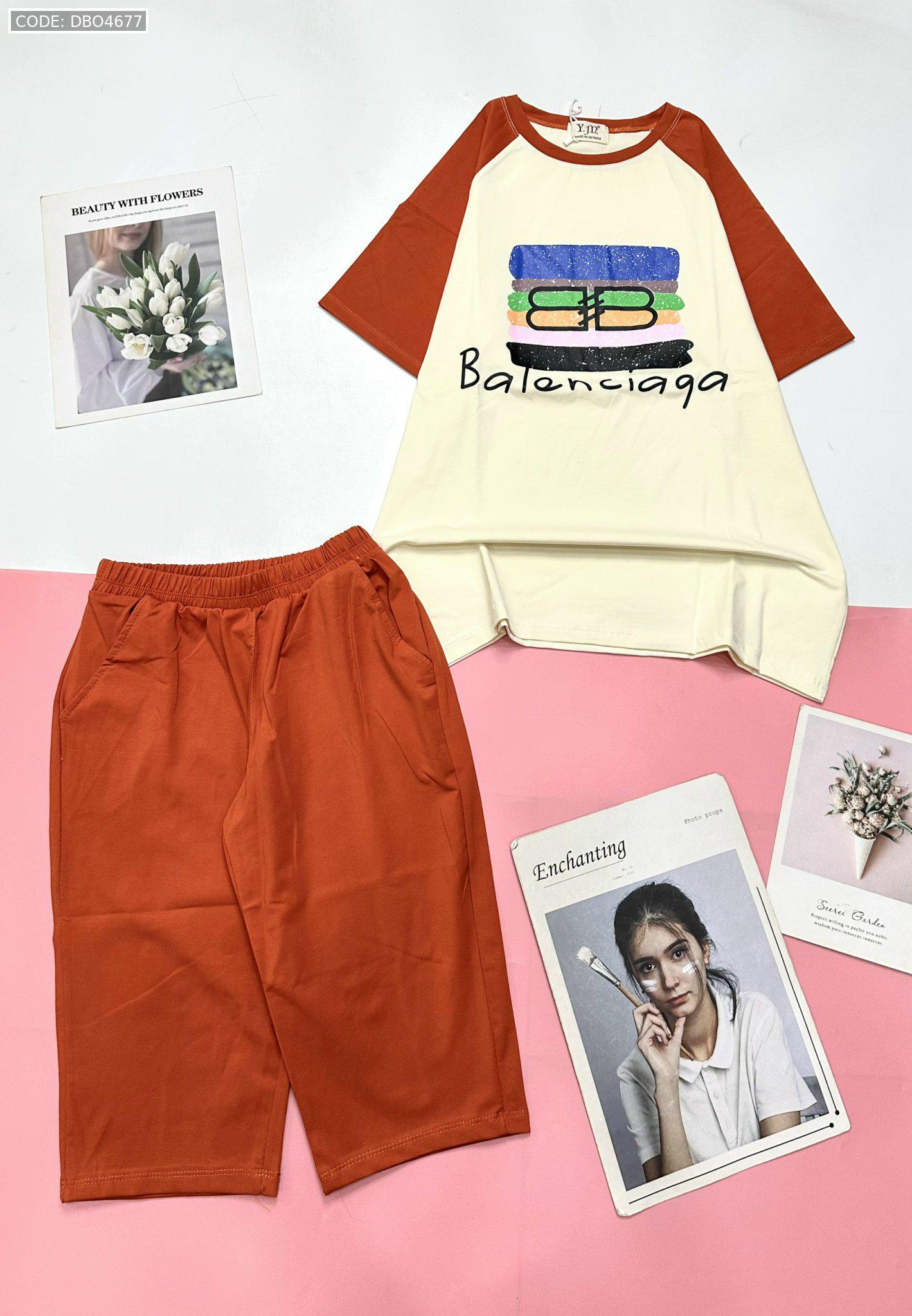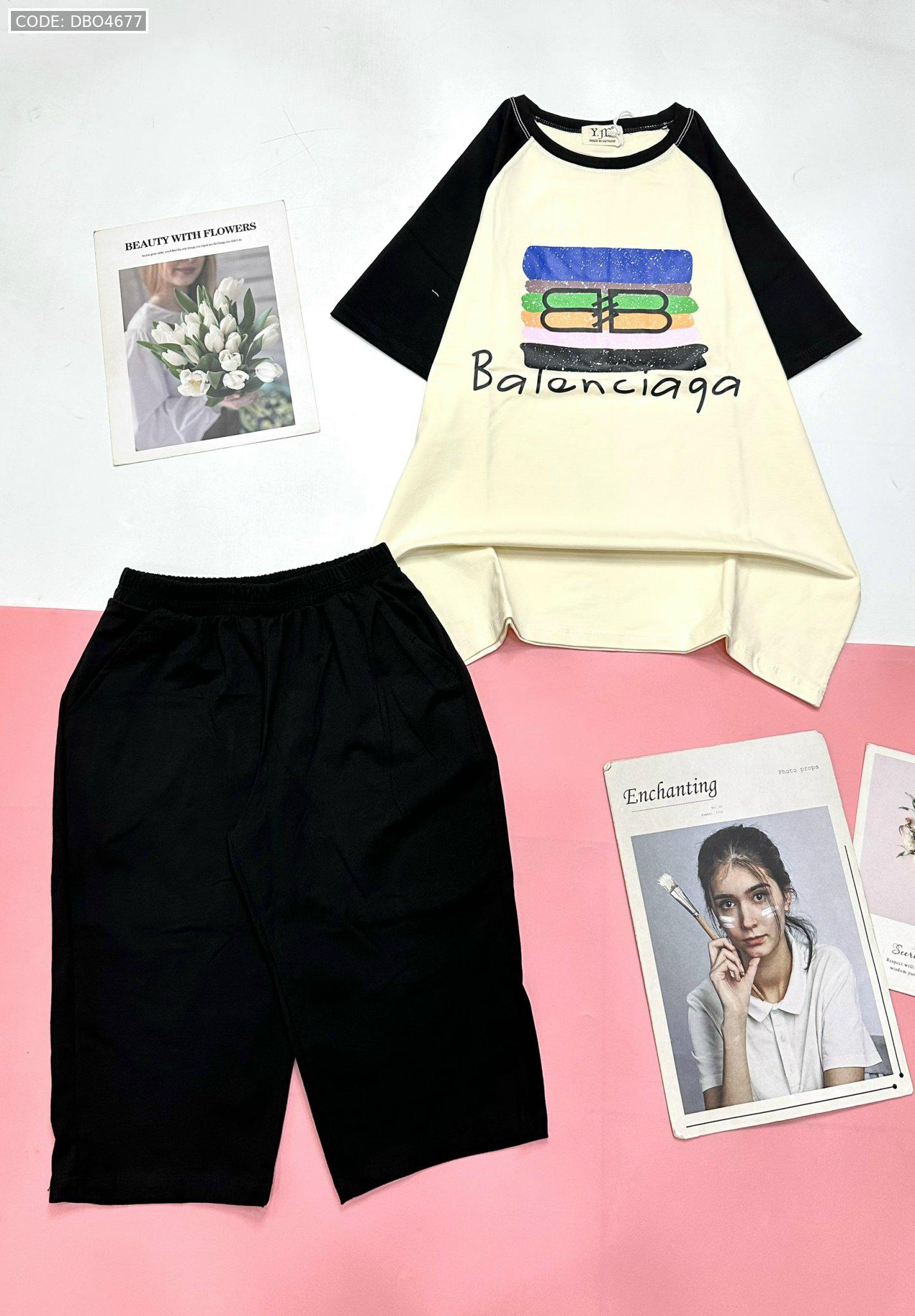 Kho sỉ đồ bộ quần lửng màu của tay áo tay ngắn in chữ BALENCIAGA