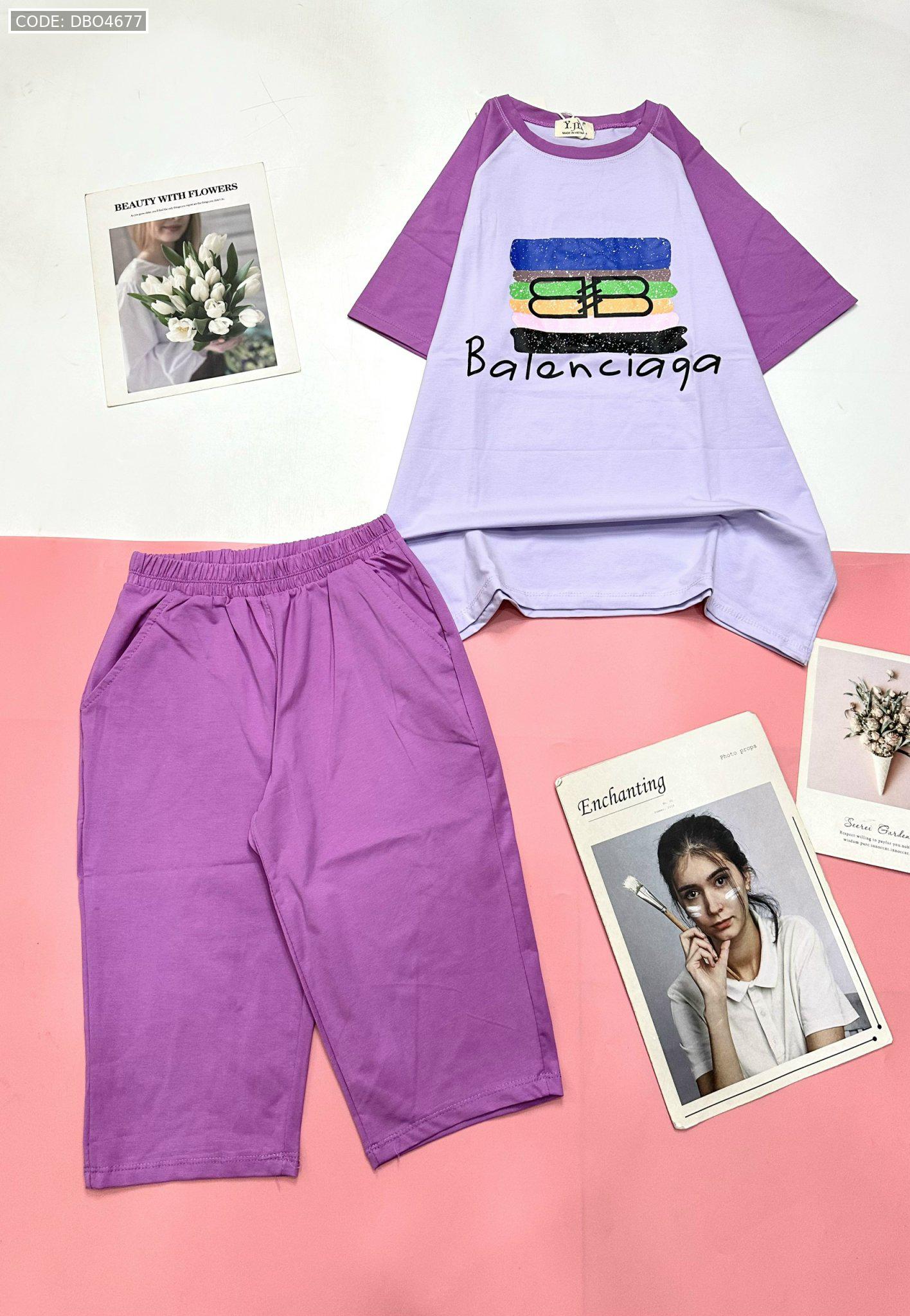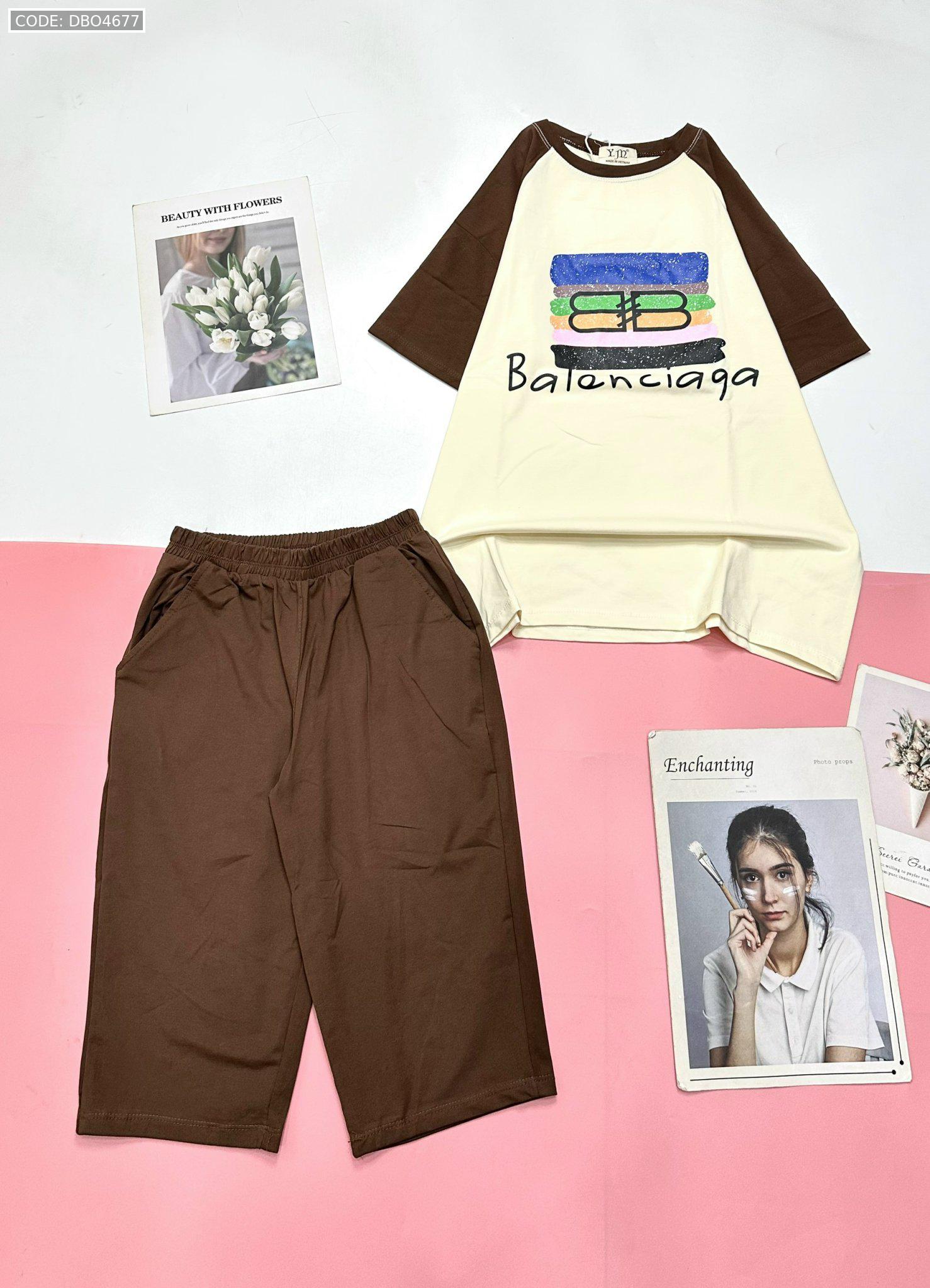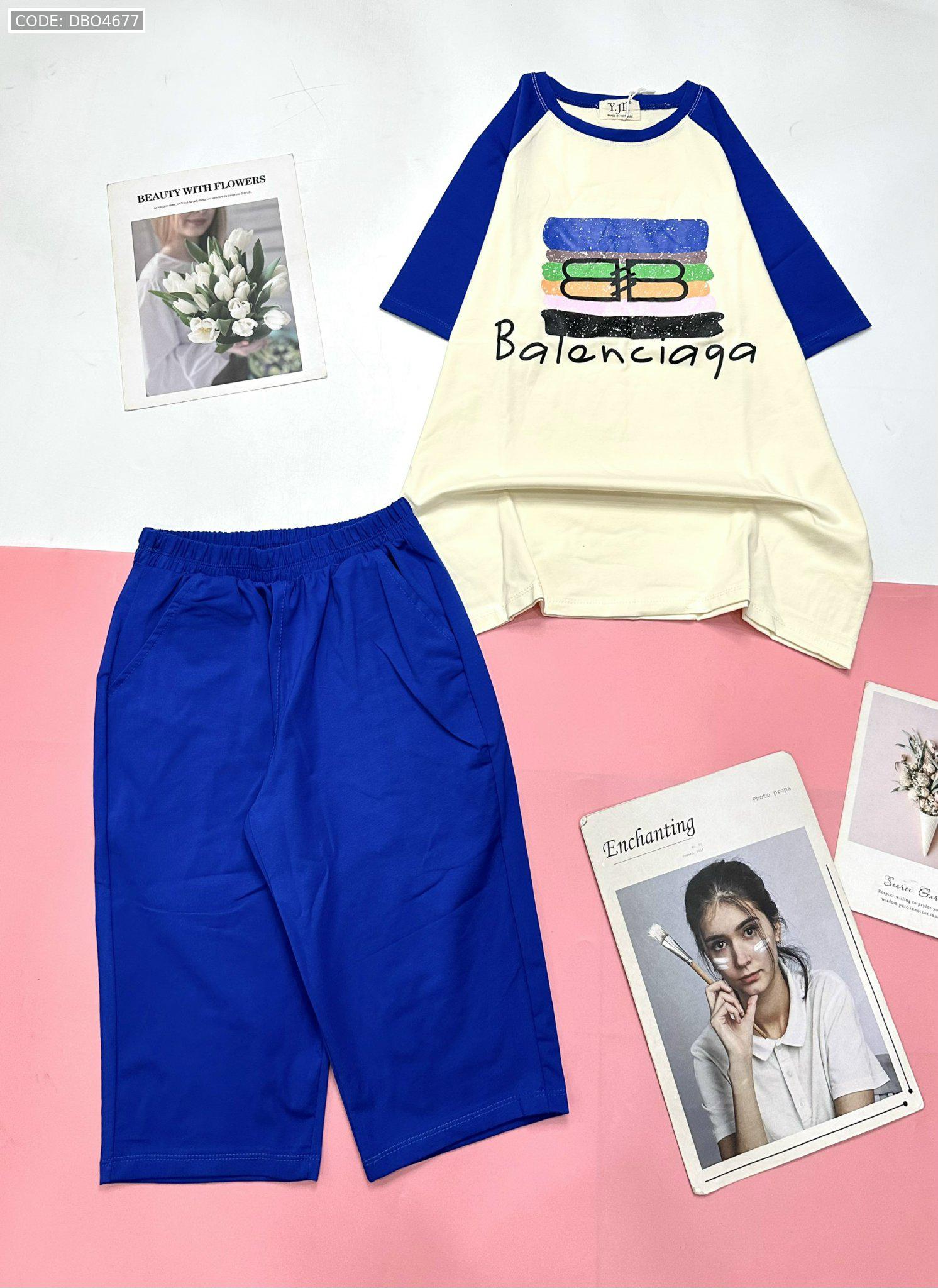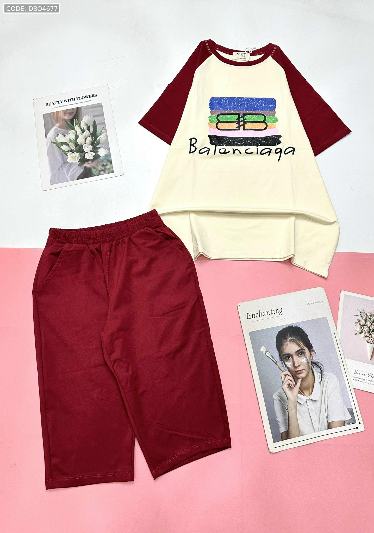 Kho sỉ đồ bộ quần lửng màu của tay áo tay ngắn in chữ BALENCIAGA