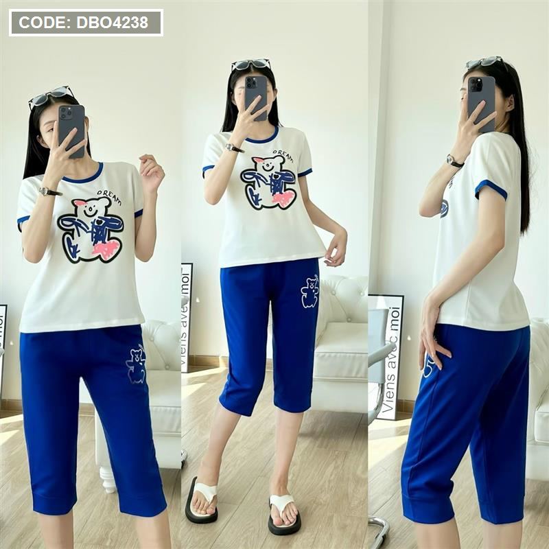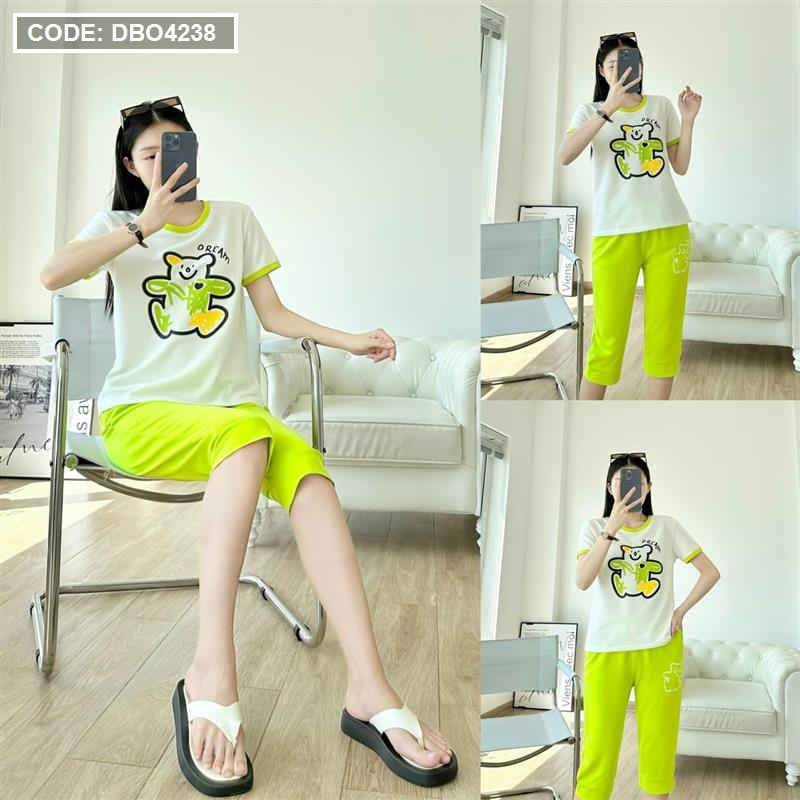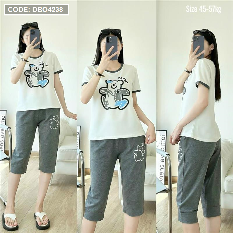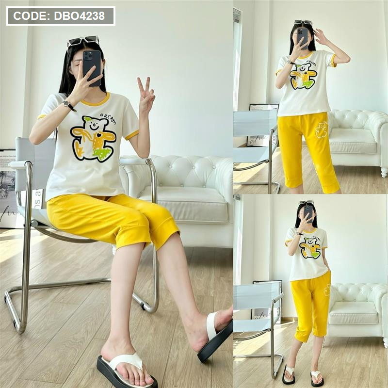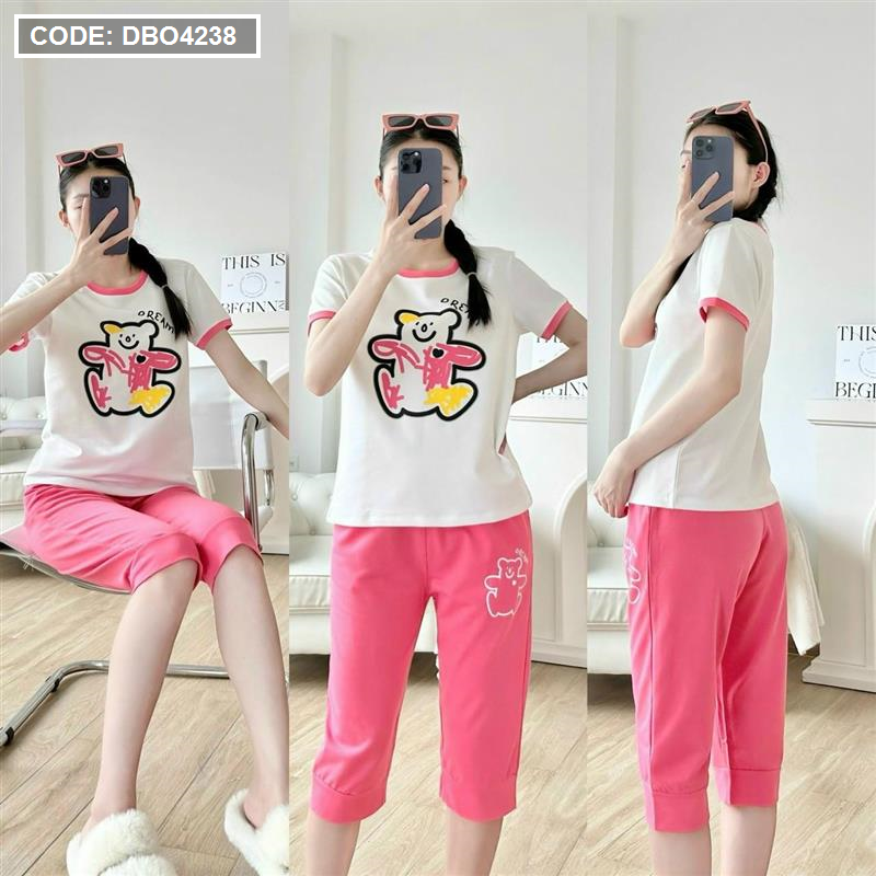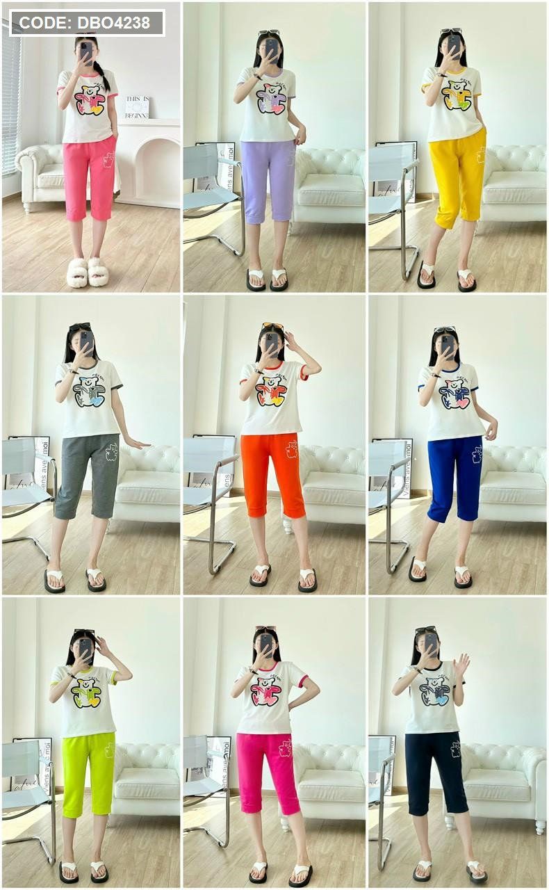 Đồ bộ quần ngố áo tay ngắn in hình gấu màu