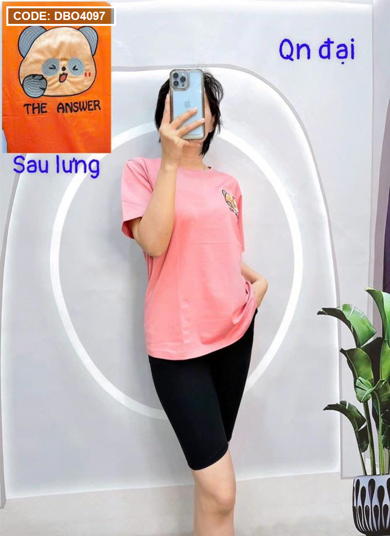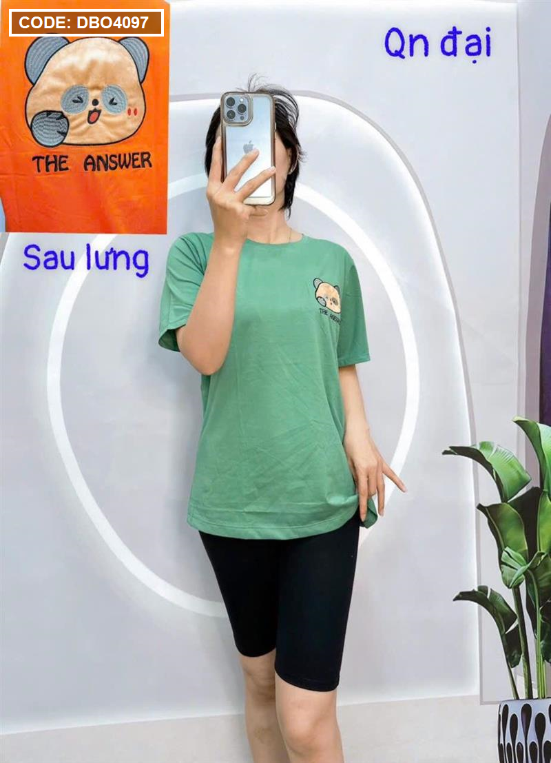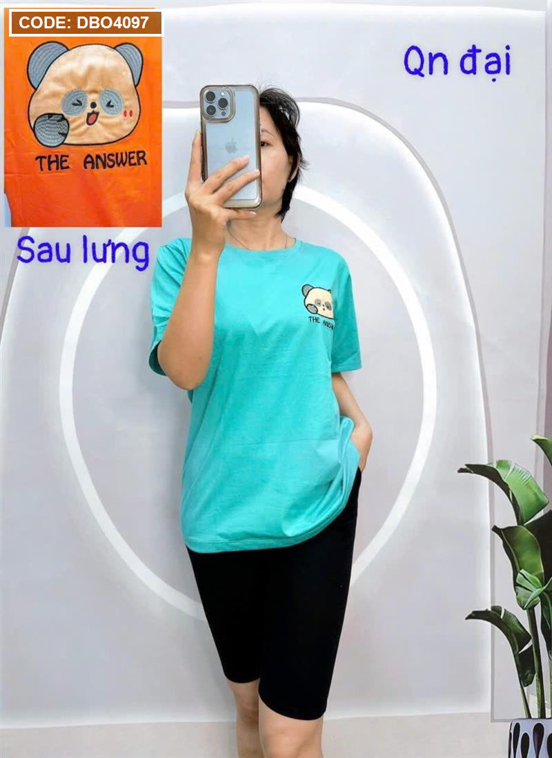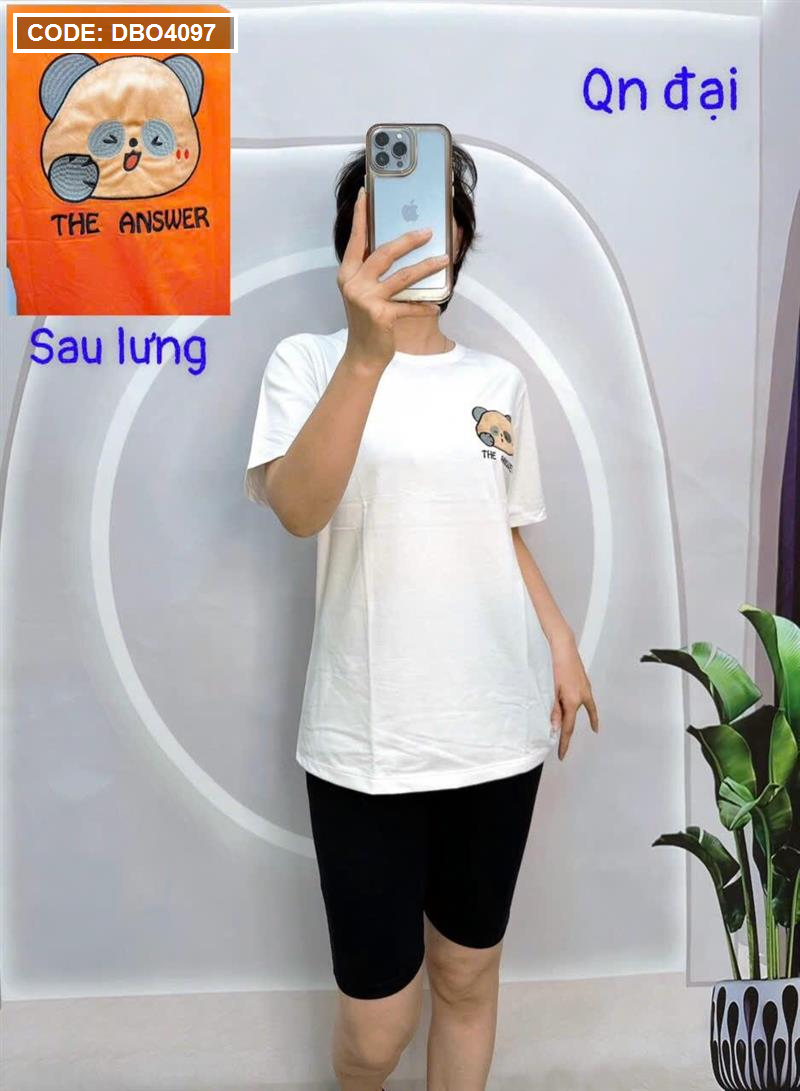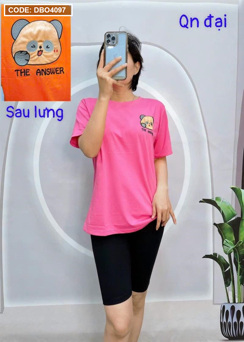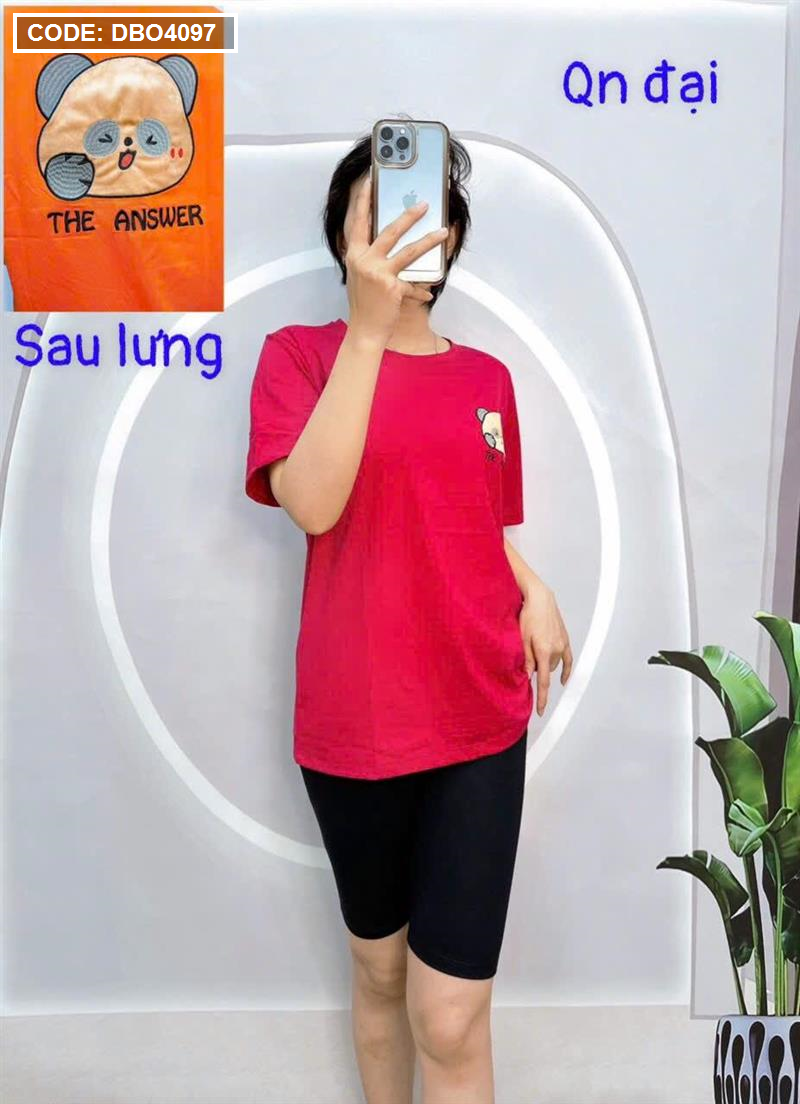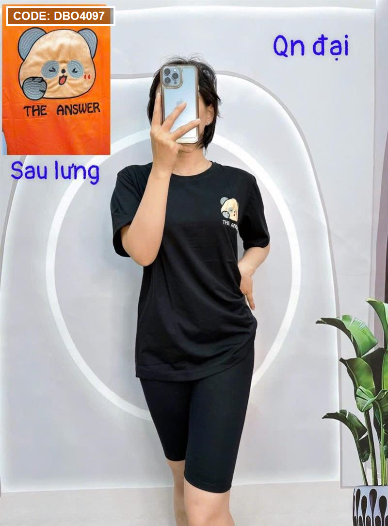 Đồ bộ quần ngố đen áo tay ngắn cổ tròn in hình form rộng