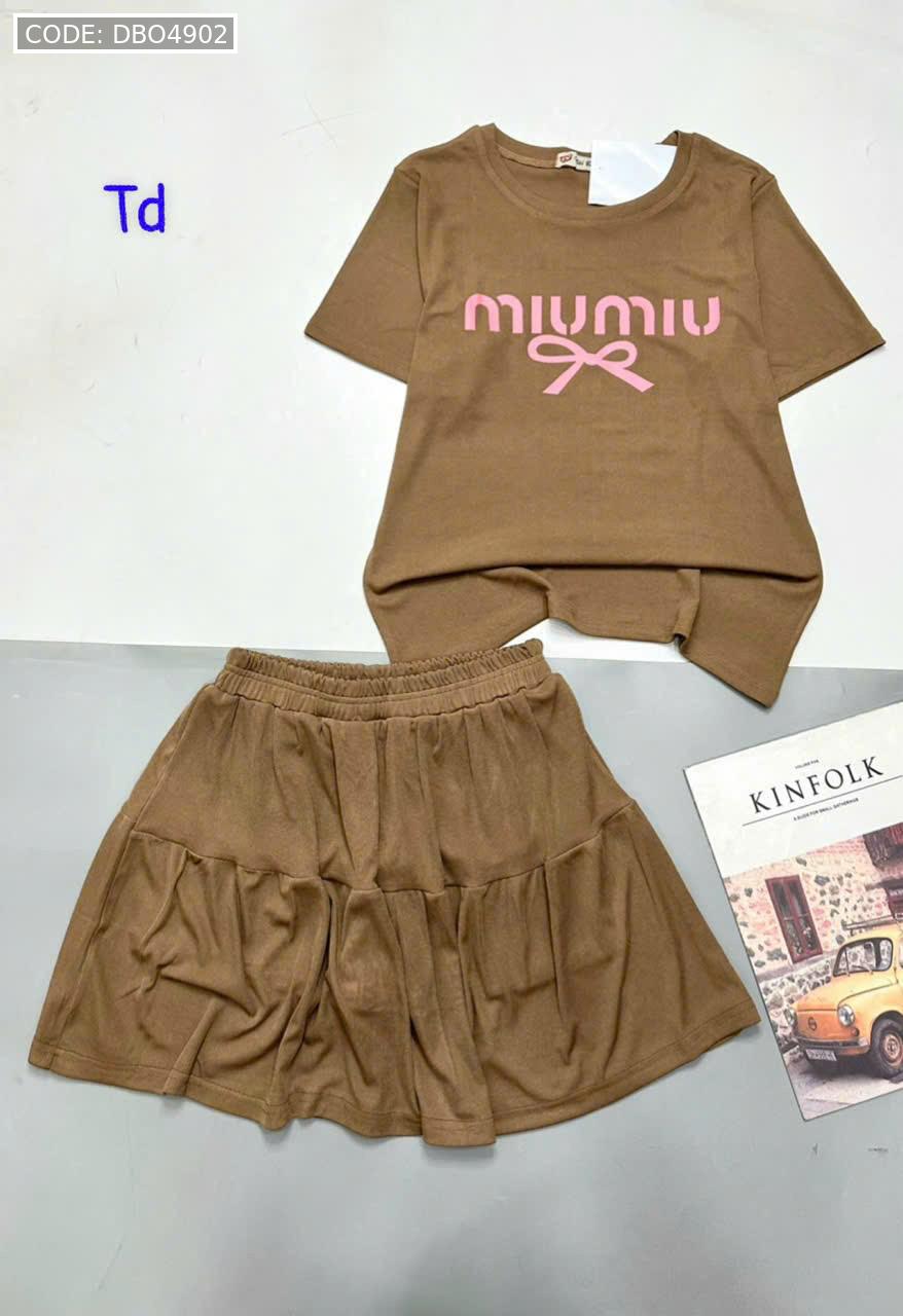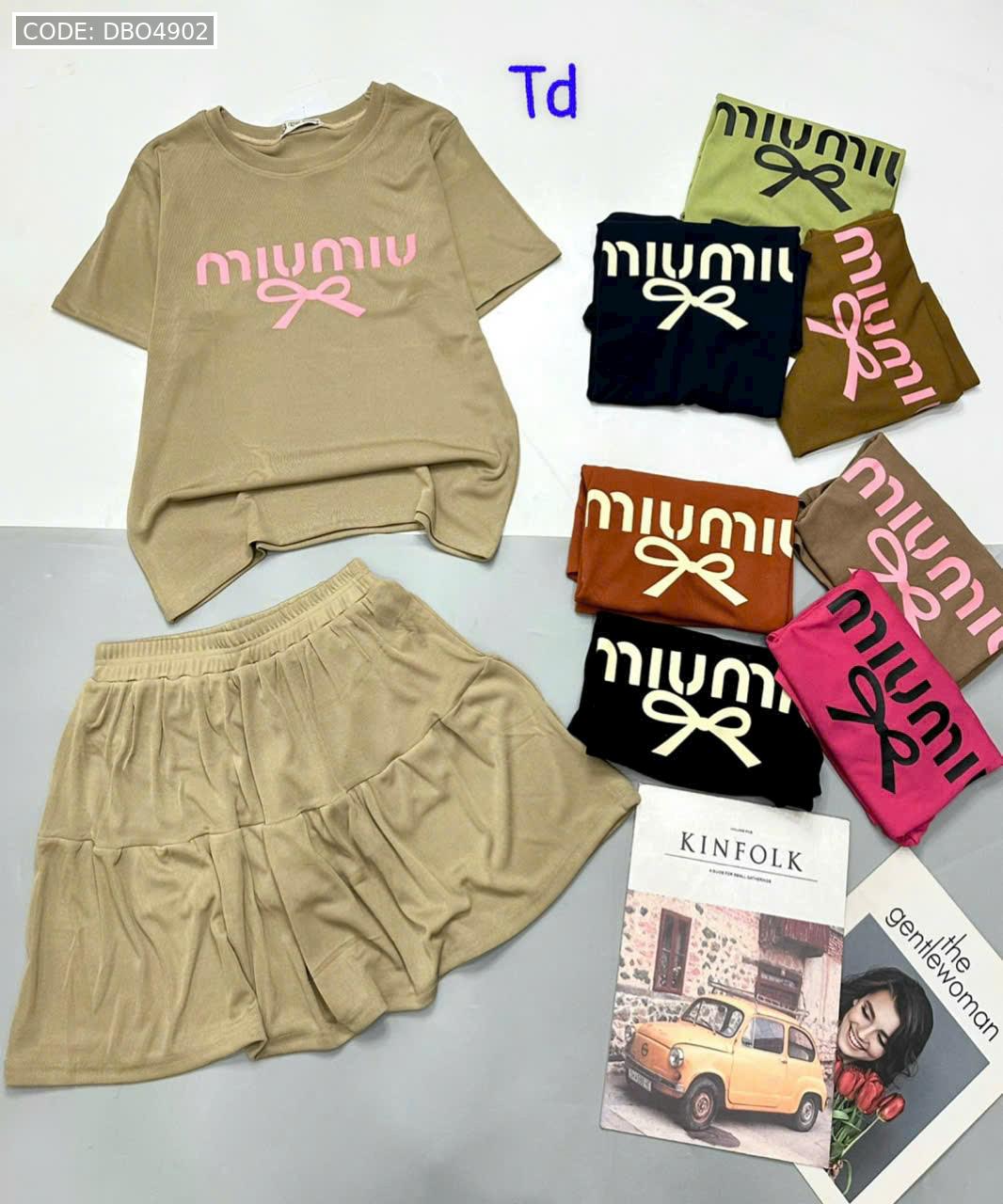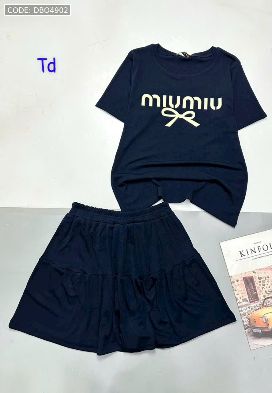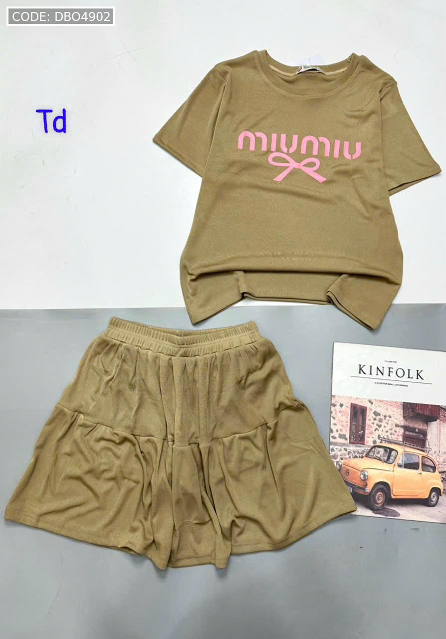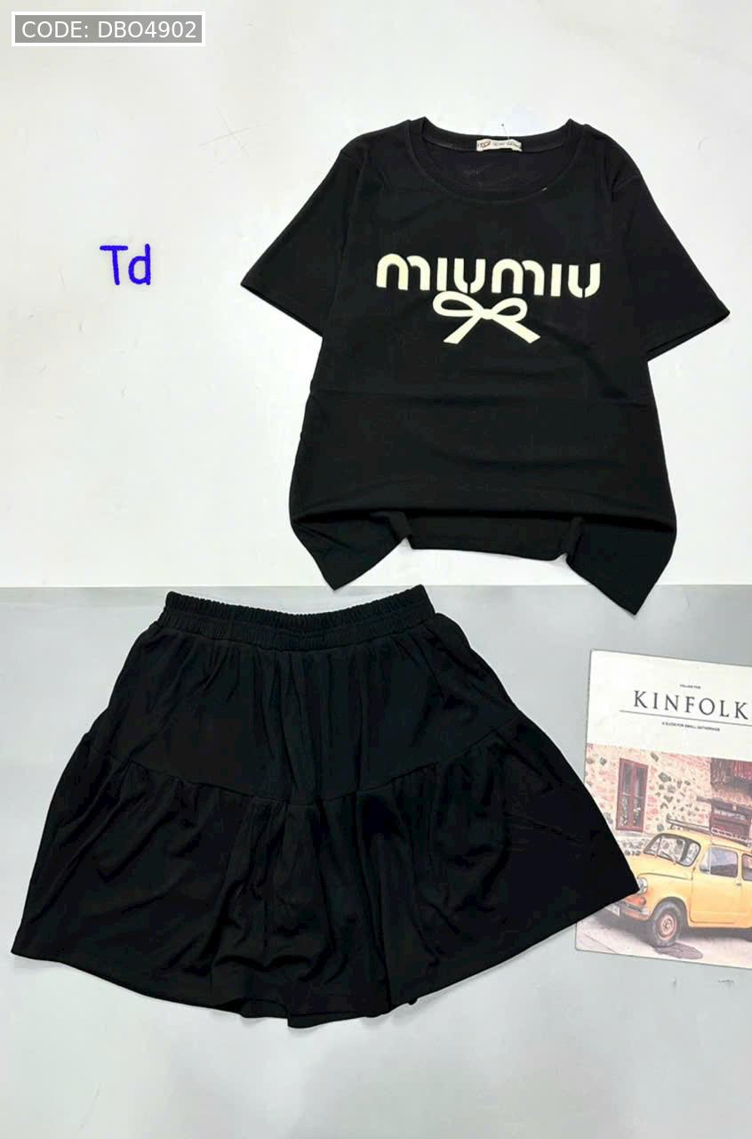 Kho sỉ đồ bộ quần váy áo tay ngắn in chữ miu miu