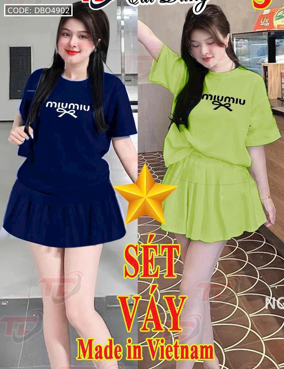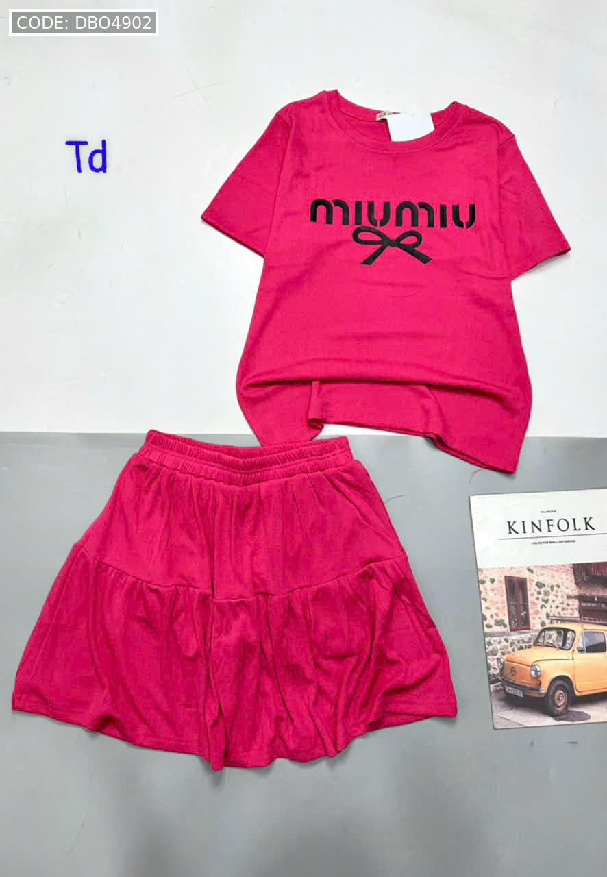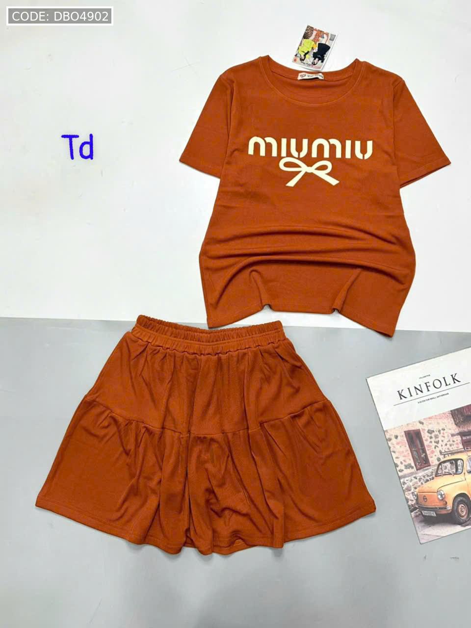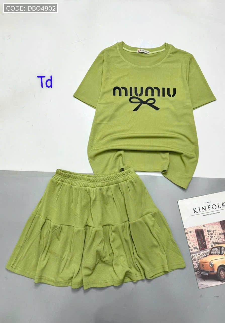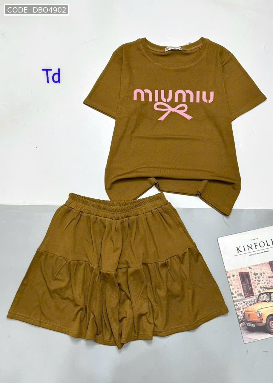 Kho sỉ đồ bộ quần váy áo tay ngắn in chữ miu miu
