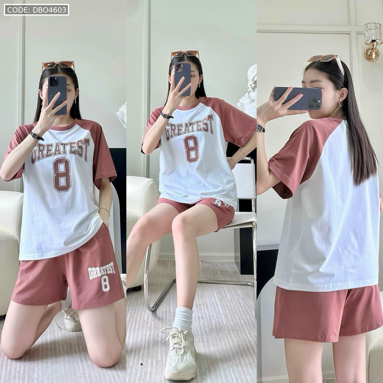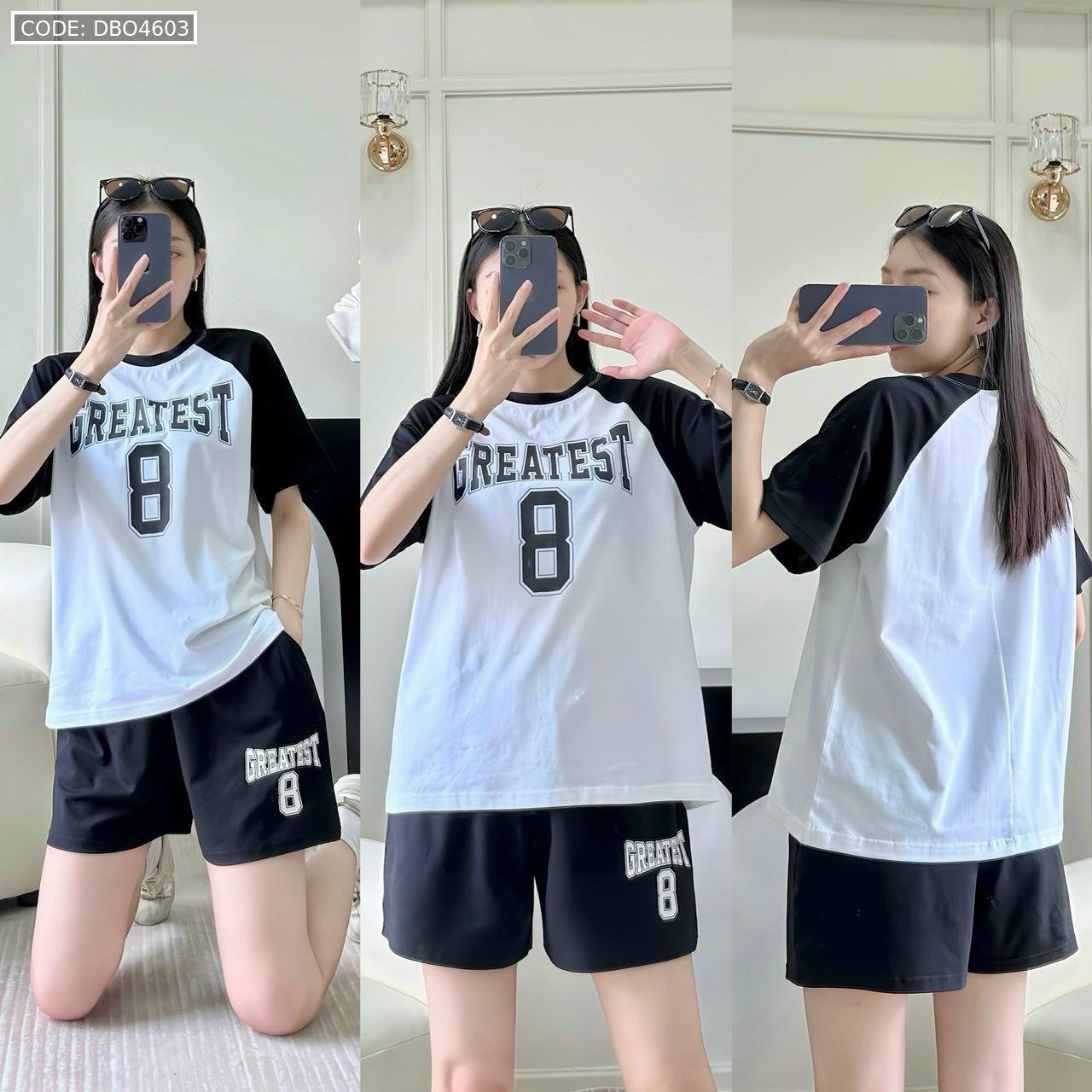 Kho sỉ đồ bộ thun nữ quần đùi áo tay ngắn in số 8