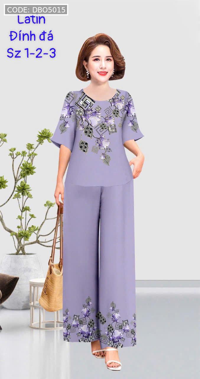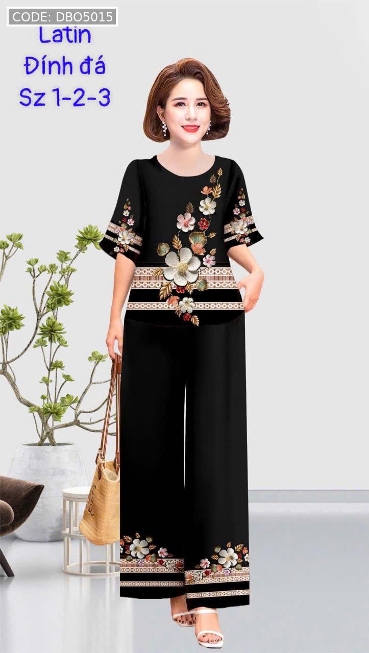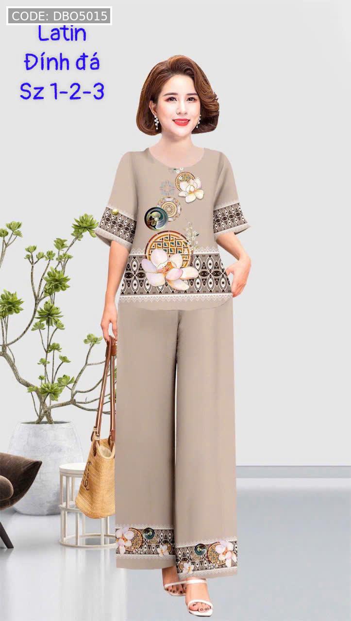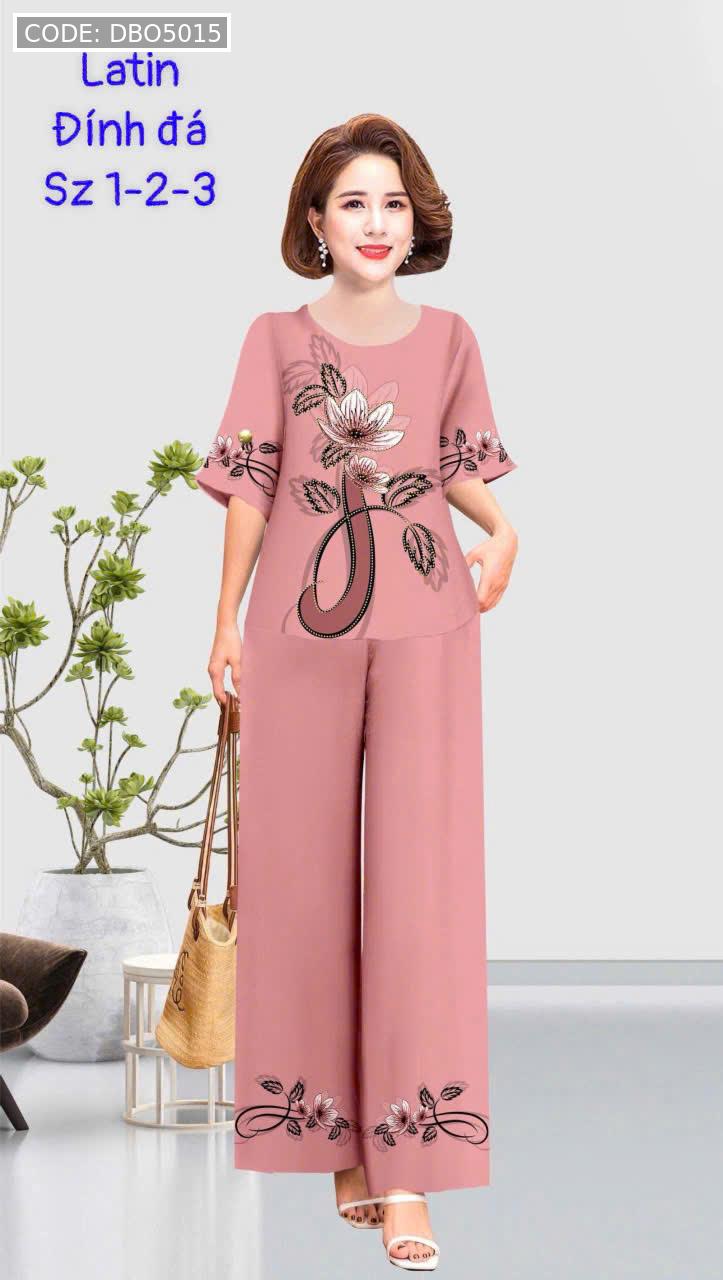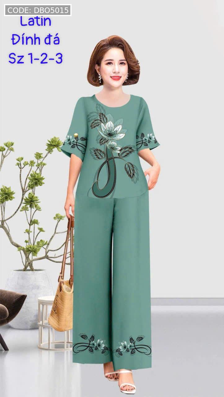 Kho sỉ đồ bộ trung niên đính đá la tin quần dài in bông có 3 size