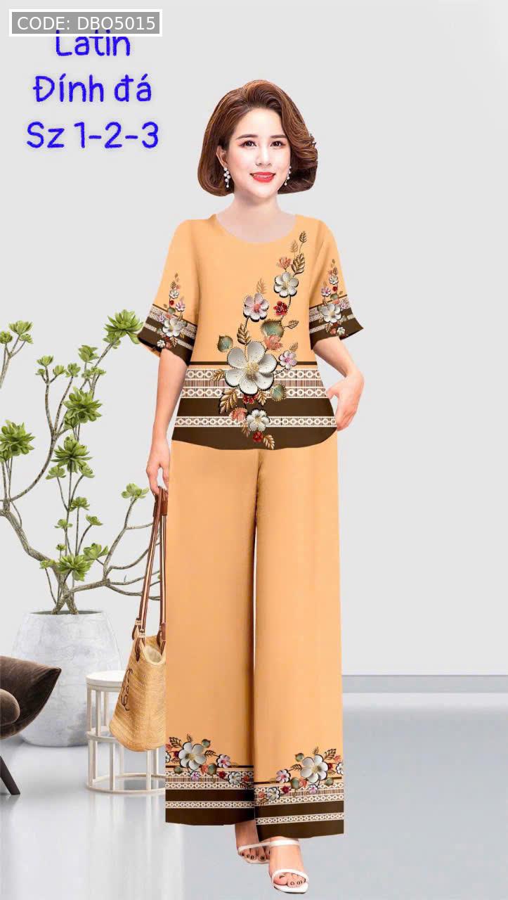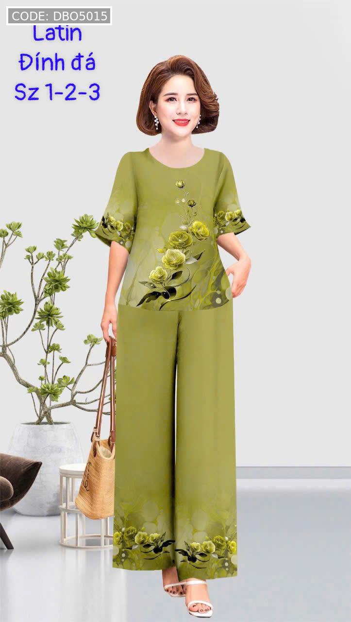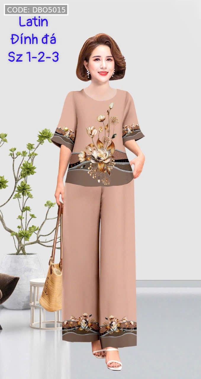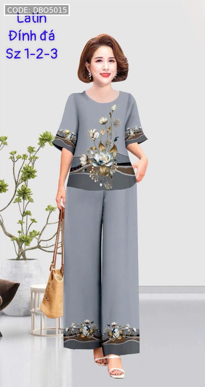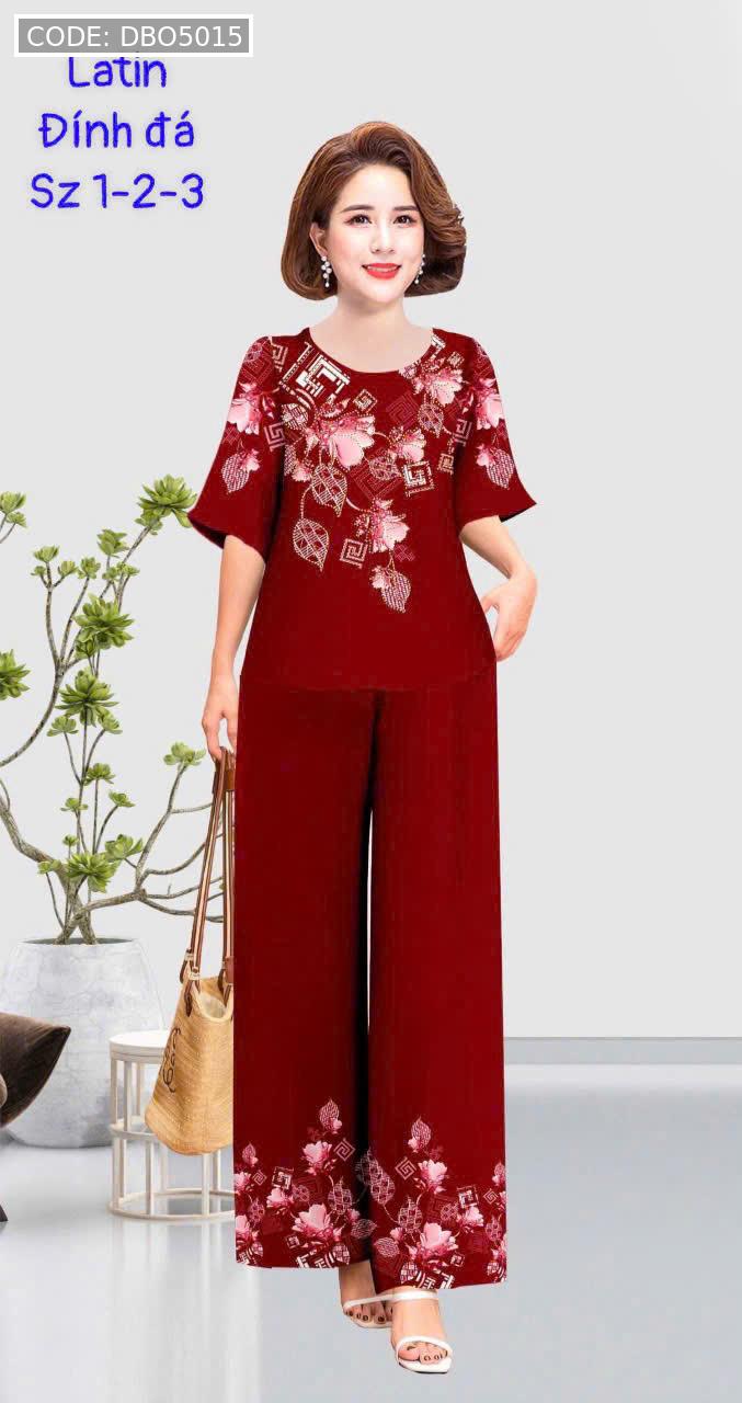 Kho sỉ đồ bộ trung niên đính đá la tin quần dài in bông có 3 size