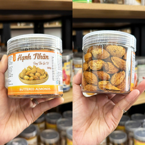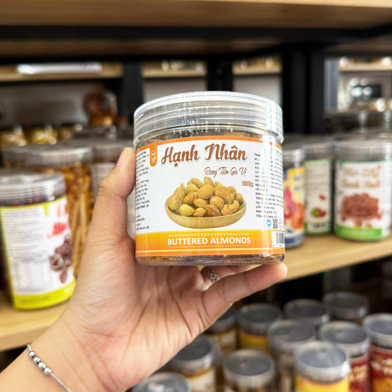 Kho sỉ hạnh Nhân Sấy Tẩm Gia Vị – Hạnh Nhân Rang Bơ Loại Vỏ Dày Mini Thơm Ngon 200g – Hũ Pet