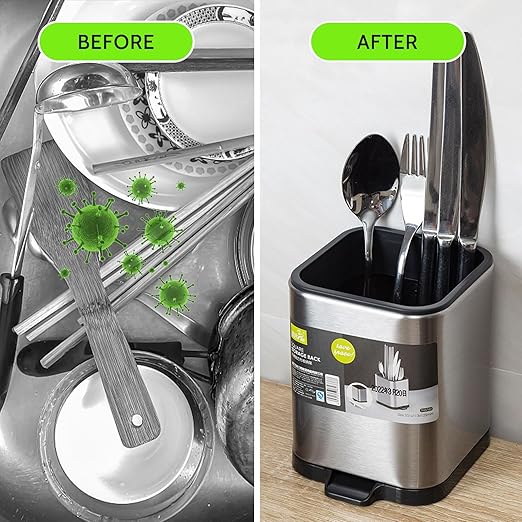 – Có khay hứng nước,thoát nước, không tồn đọng nước. Đảm bảo ống cắm dao kéo đũa muỗng luôn khô ráo,tránh ẩm mốc, đảm bảo an toàn sức khỏe.