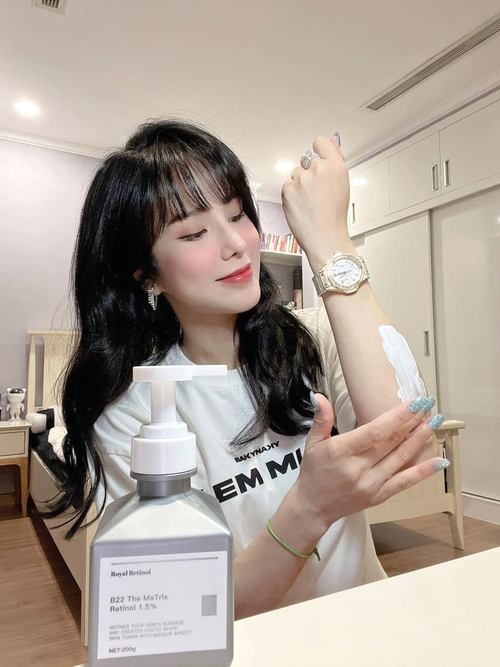 Sau bước làm sạch da lau khô, thoa 1 lượng mỏng retinol lên da, ủ tầm 15-30p rửa lại với nước. Hoặc Có thể pha trộn sp theo tỉ lệ 1 lượng Retinol 30g với 1 hủ kem body 200-250g thoa đều sáng tối.