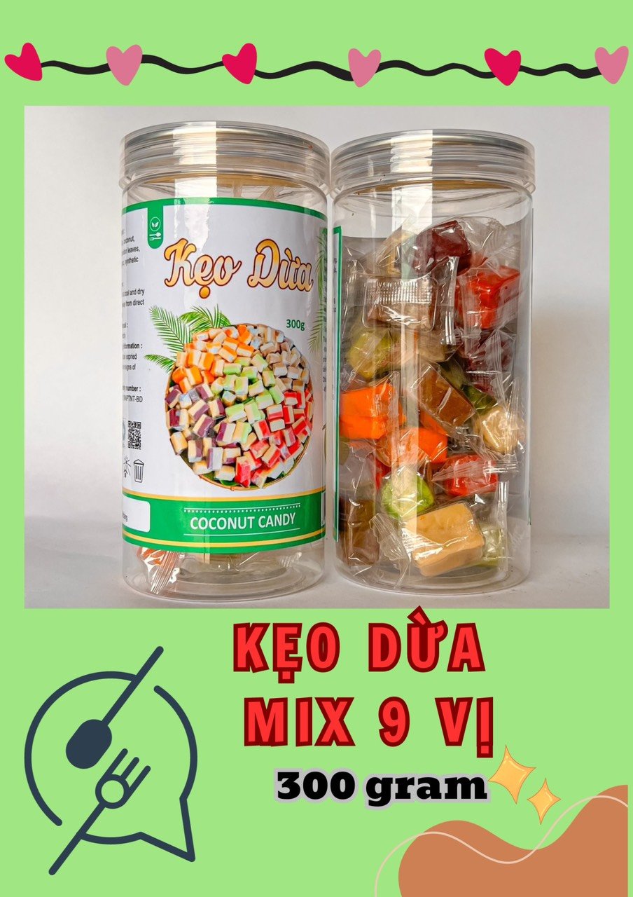 Kho sỉ kẹo Dừa Mix 9 Vị Thơm Ngon 300g Hộp